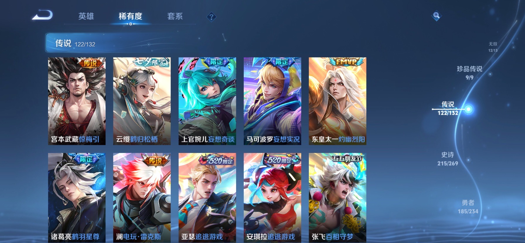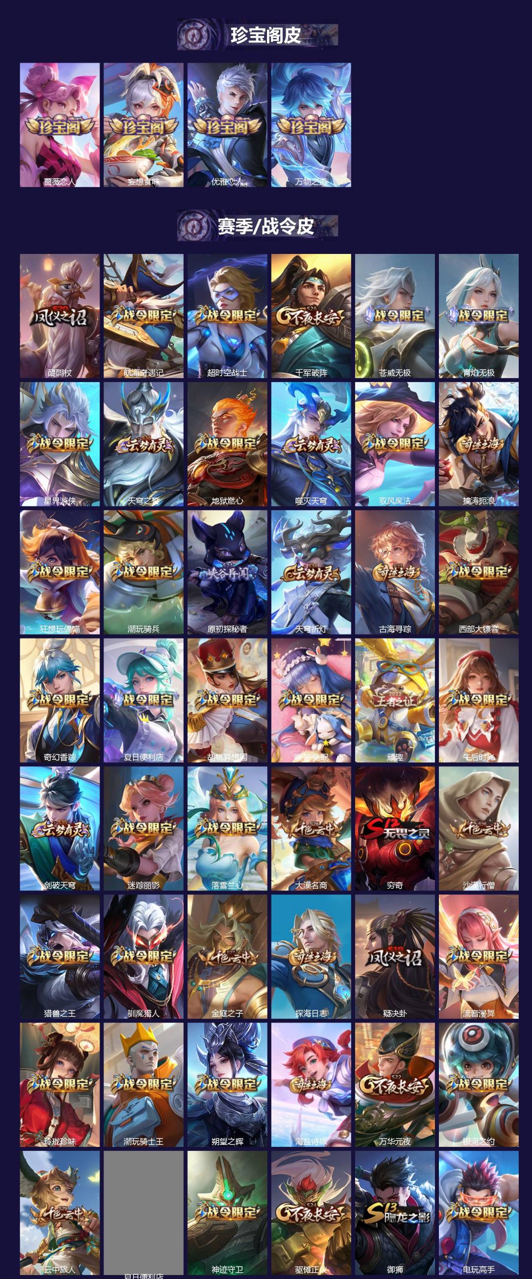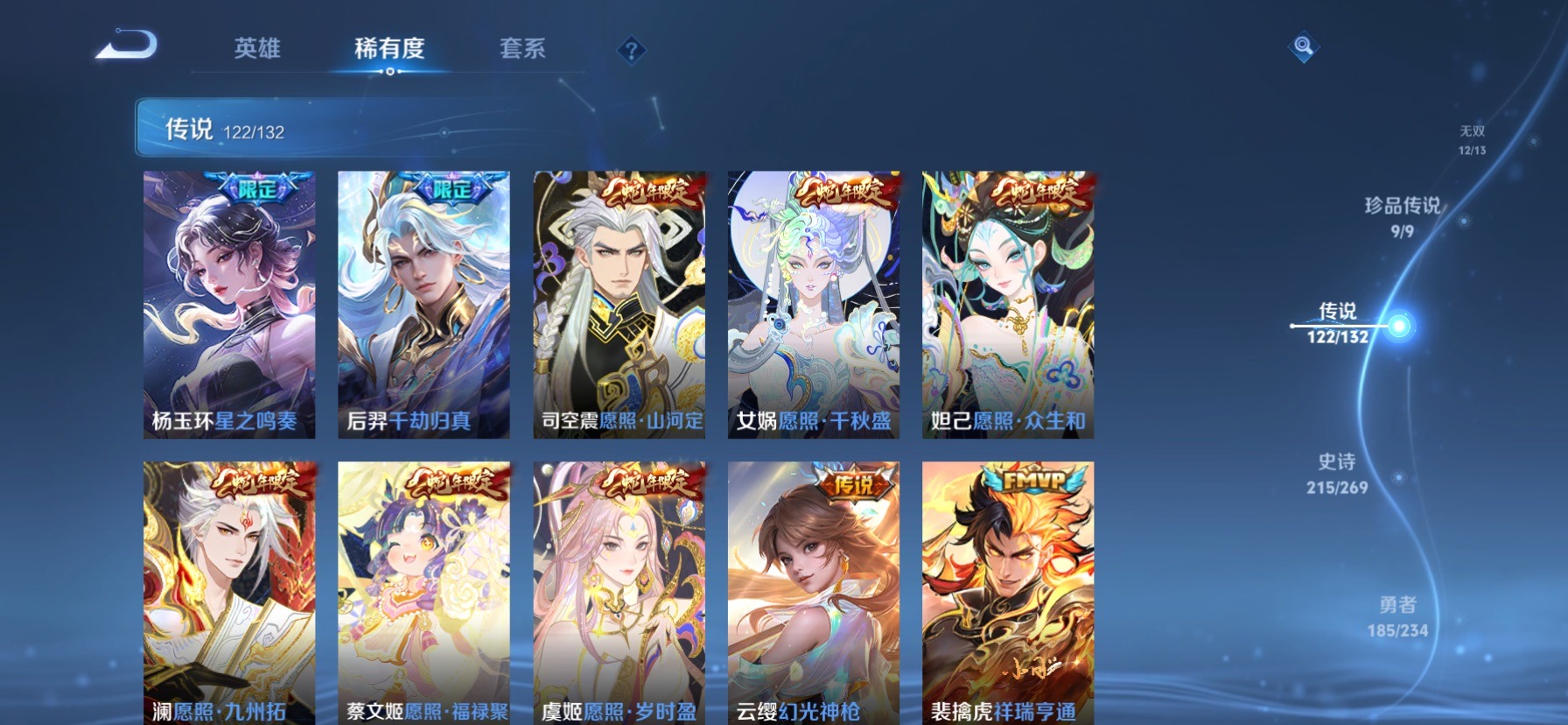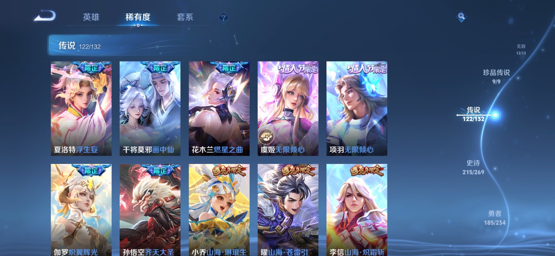 极品女号 无双贵族 7典藏 1珍品无双 12无双 9珍品传说 122传说 128英雄 631皮肤