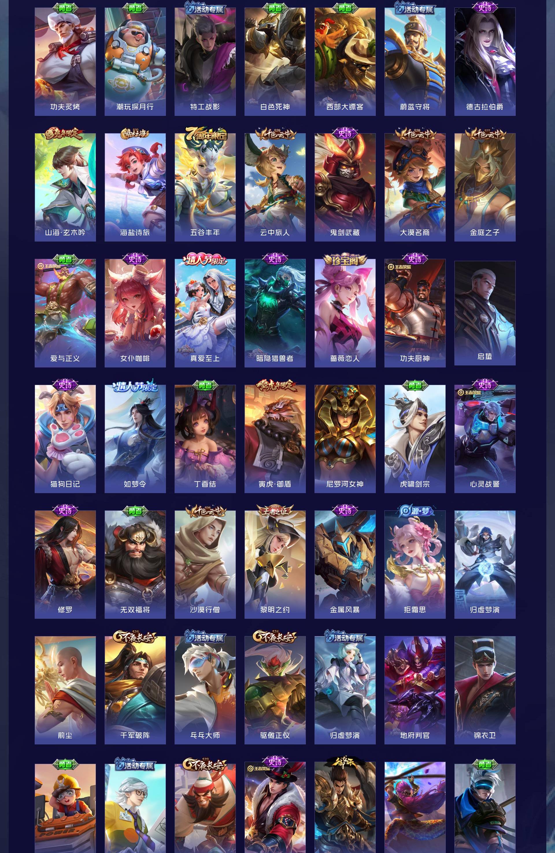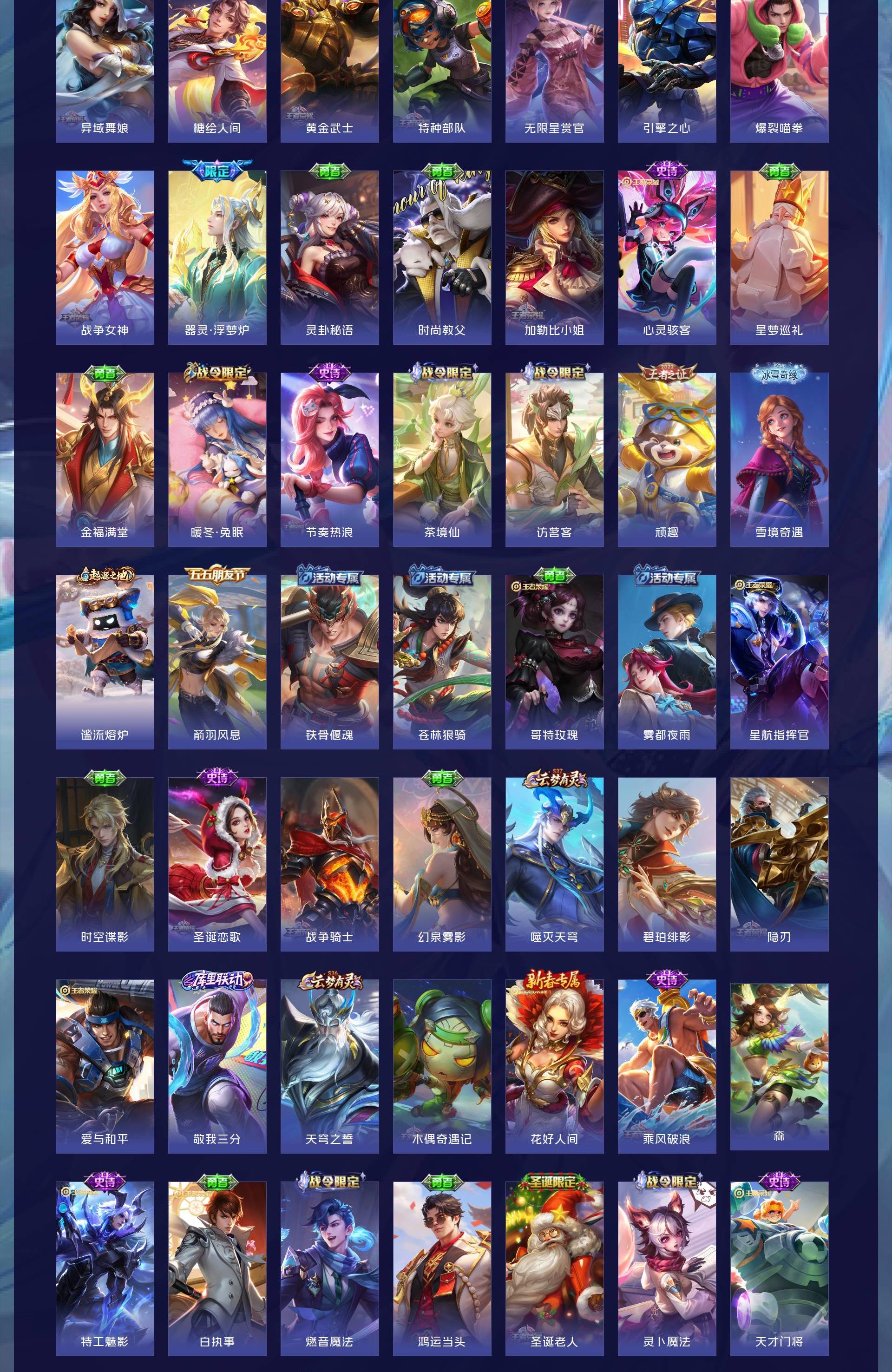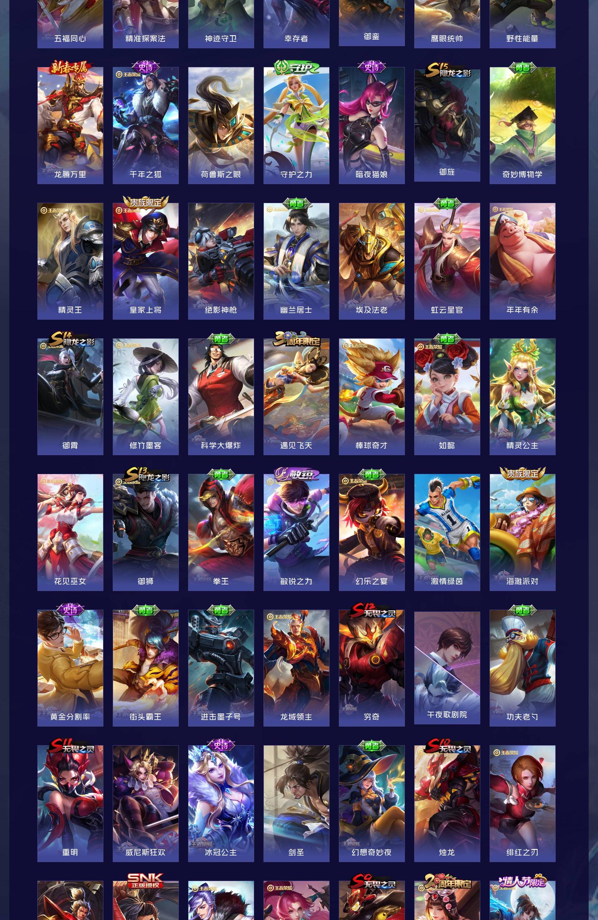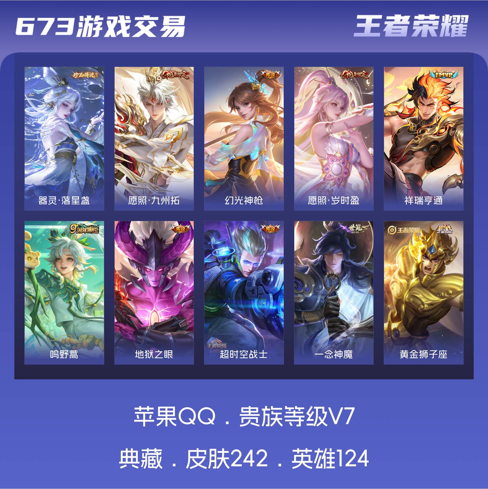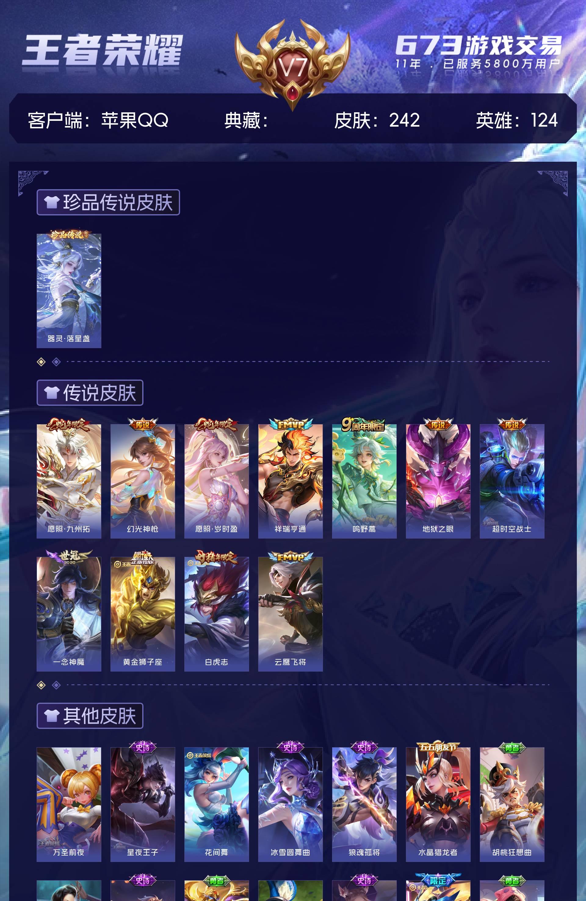 V7 皮肤242 英雄124 荣耀黄金 珍品传说1 星传说1 传说11 其他皮肤236
