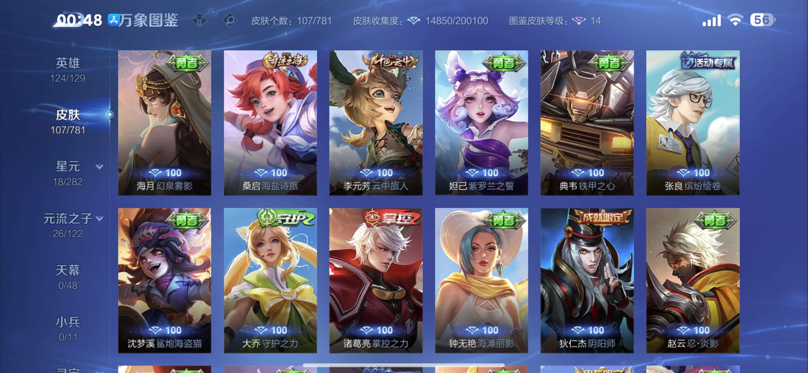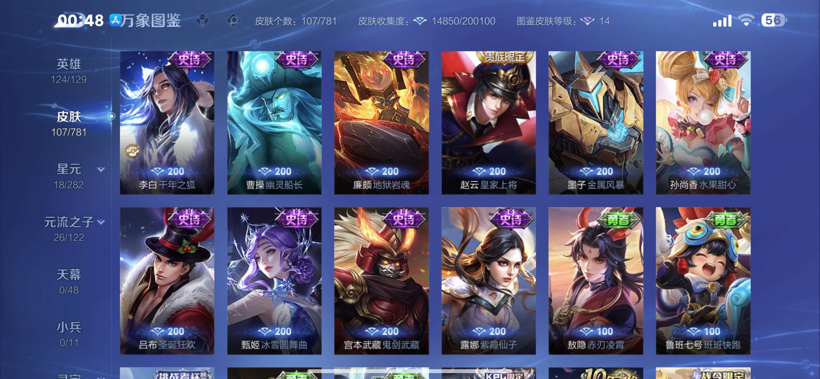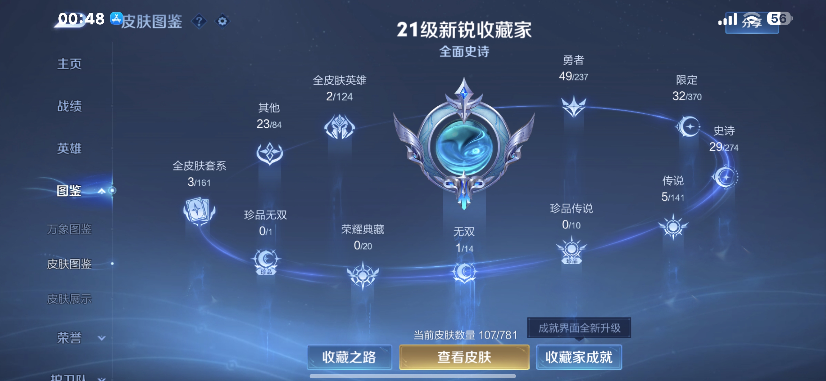 V5 皮肤107 英雄124 永恒钻石 无双皮肤1 星传说1 传说5 其他皮肤104