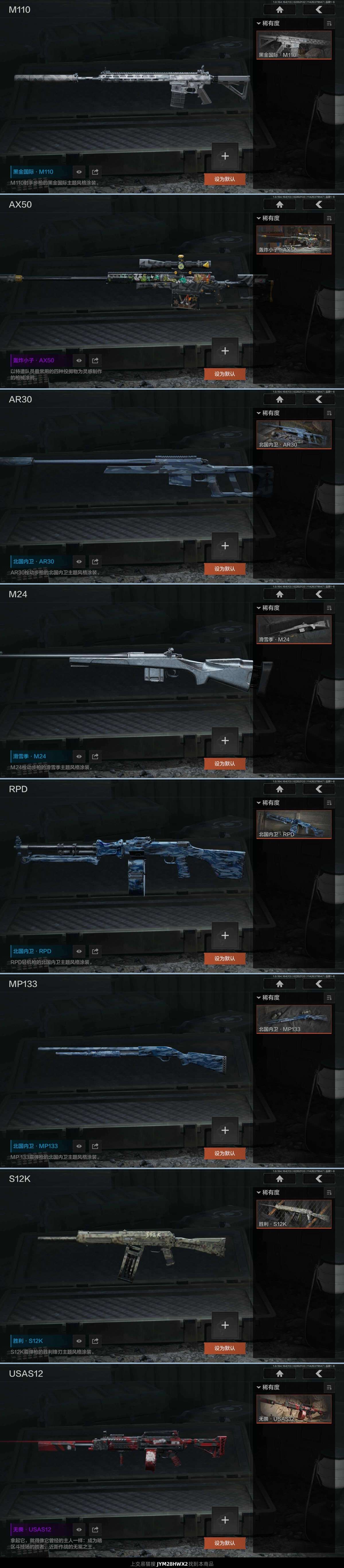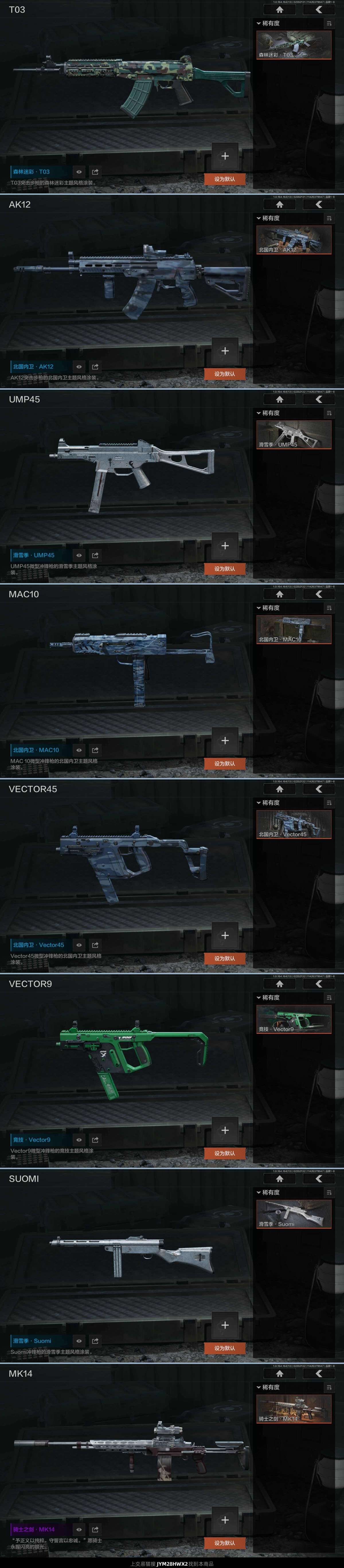 ♥绝版刀皮涂鸦利刃♥绝版白狼连队作战服♥还有一些枪皮♥小号一个换绑放心购买便宜出♥