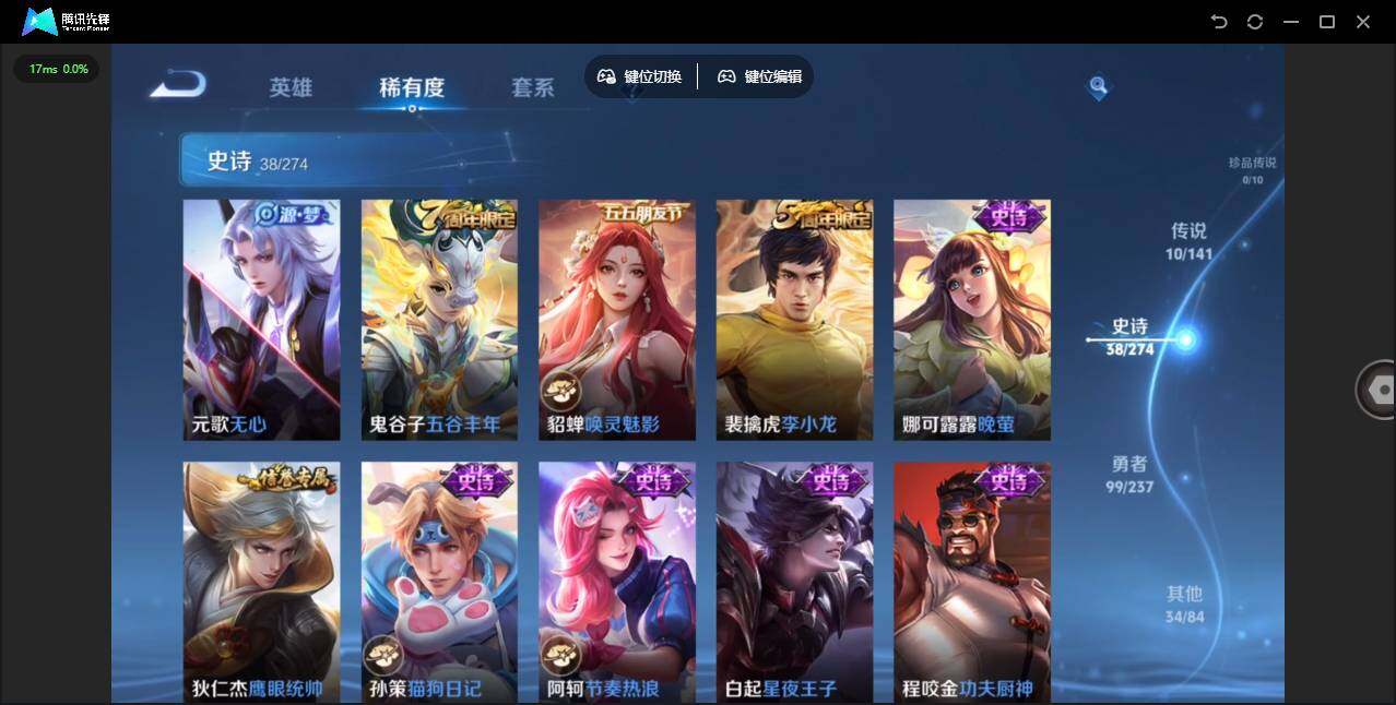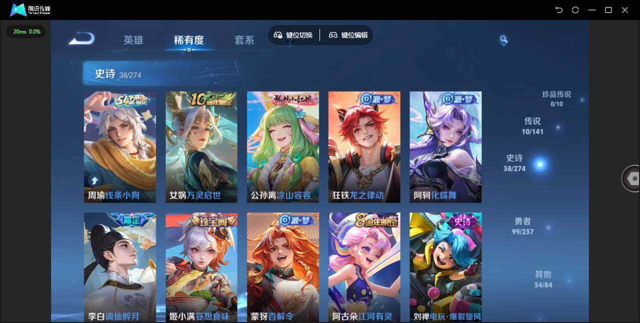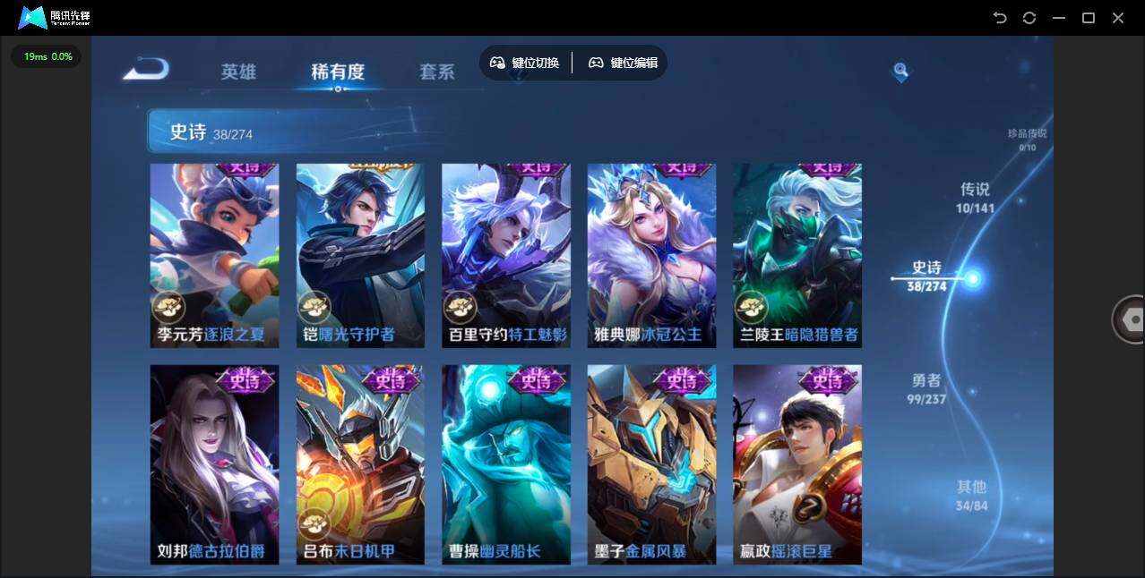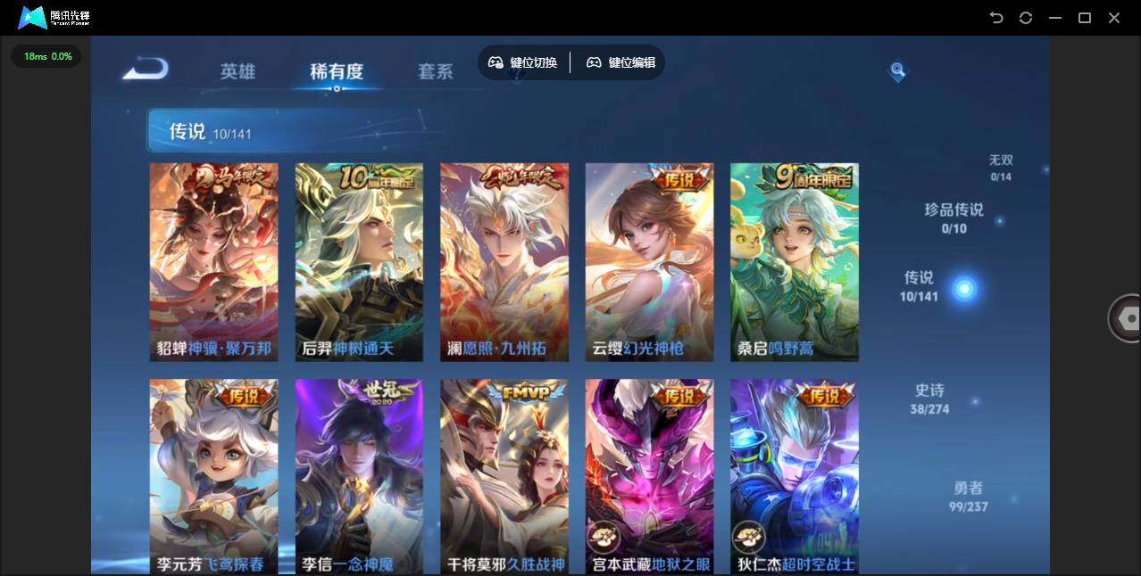 【传说皮肤】:貂蝉神骥聚万邦,后羿神树通天,澜愿照九州拓,云缨幻光神枪,桑启鸣野蒿,李元芳飞鸢探春,李信一念神魔,干将莫邪久胜战神,宫本武藏地狱之眼,狄仁杰超时空战士