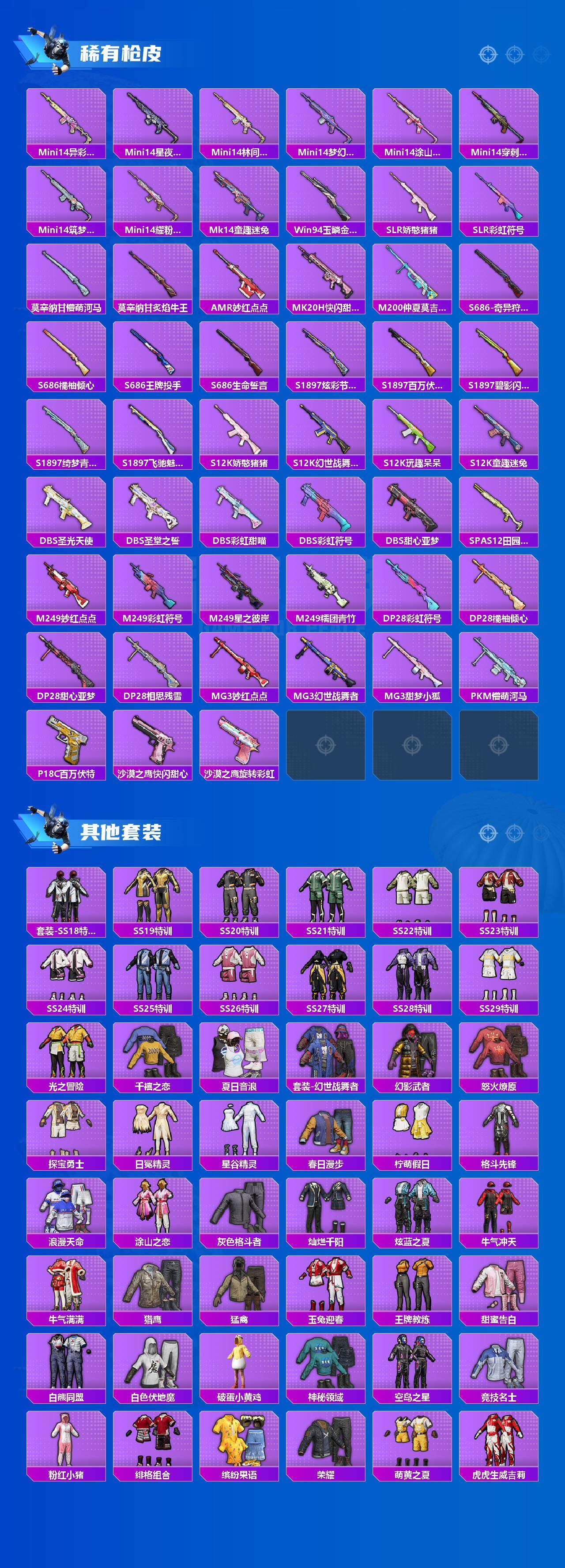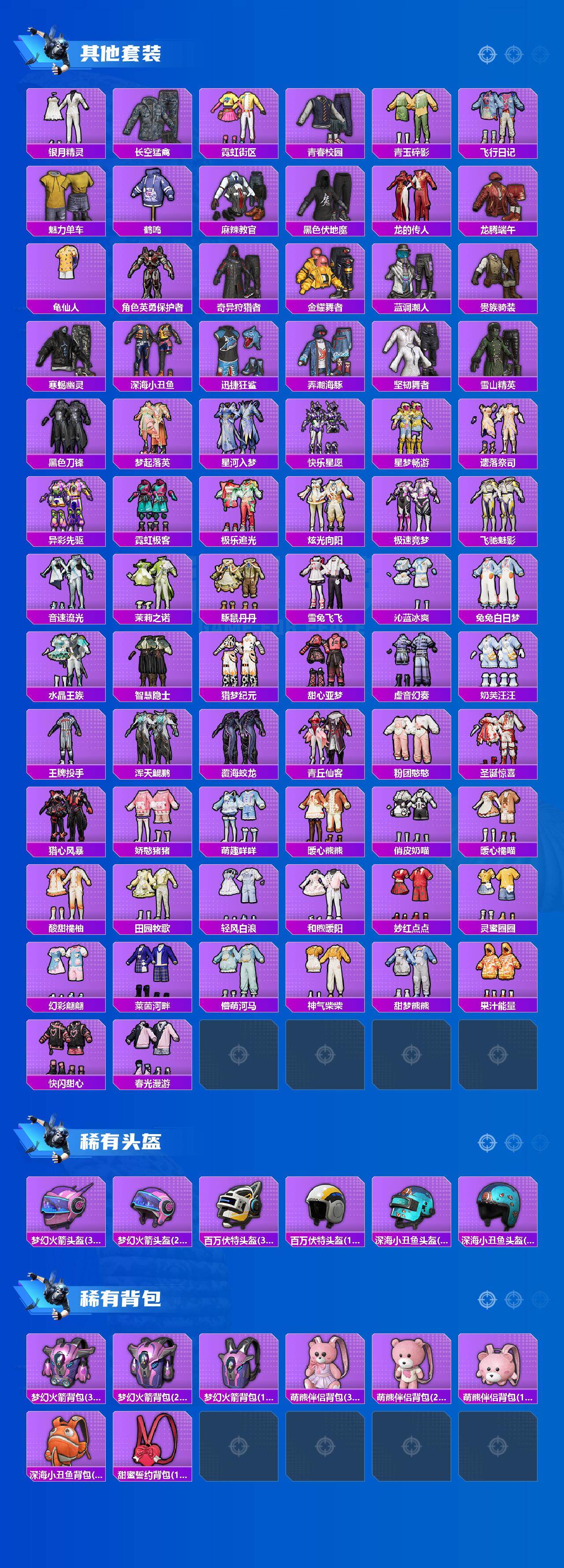 【热门品类】:粉装-梦幻火箭,粉装-音爆索尼克,套装-寒蝎幽灵,套装-浪漫天命,套装-深海小丑鱼,套装-小丑鱼,套装-奇异狩猎者,套装-龟仙人,套装-粉红小猪