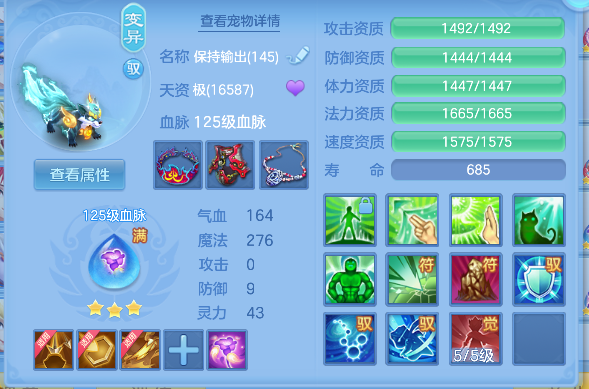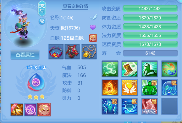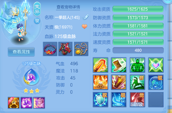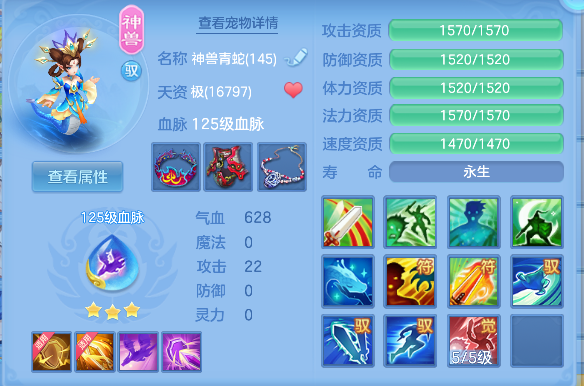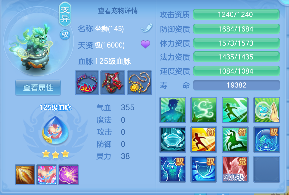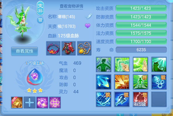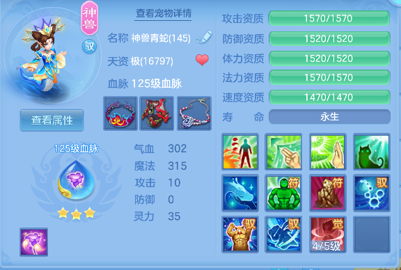 飞花逐月140男耀华,1个14.5星,14.4星混,愤怒易成长腰带,冥王斩易成长衣服,止戈迅捷鞋,清心易成长头,3内丹神(1强化玉龙将,2蛇),17个满兽魂,高级坐骑