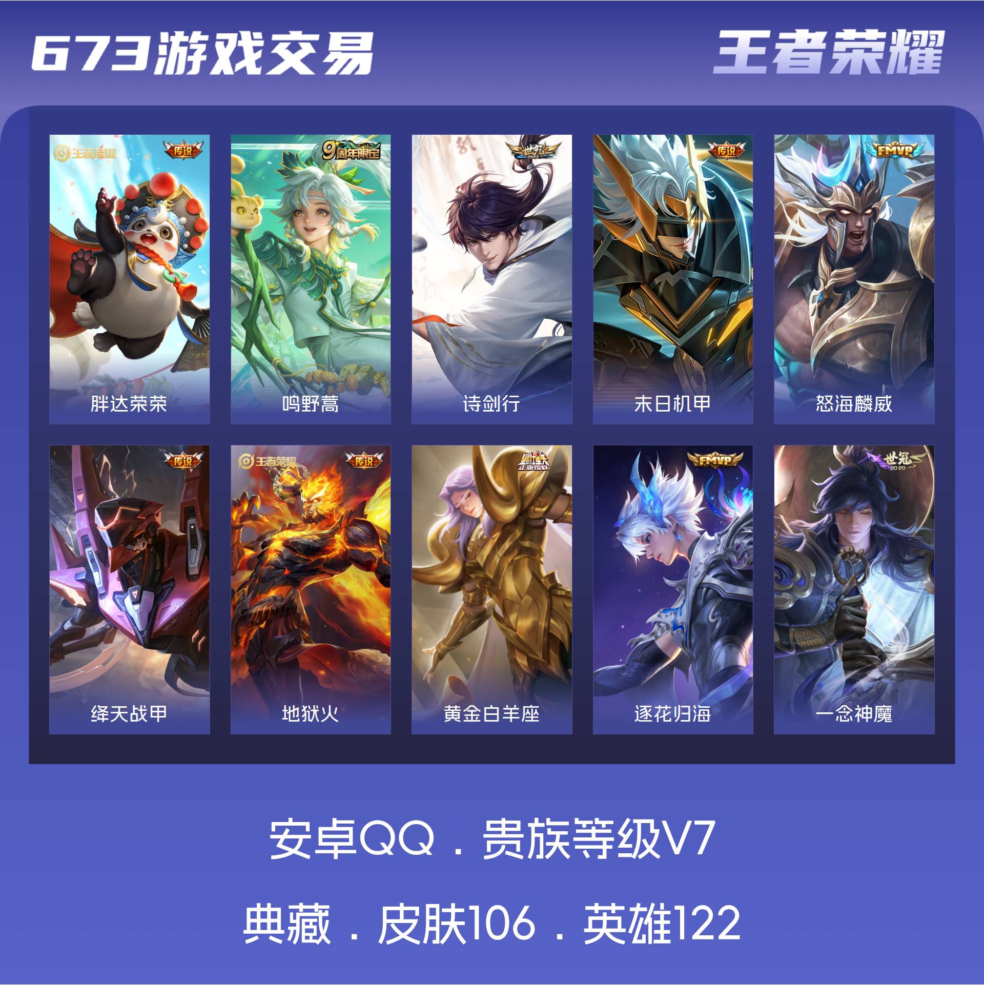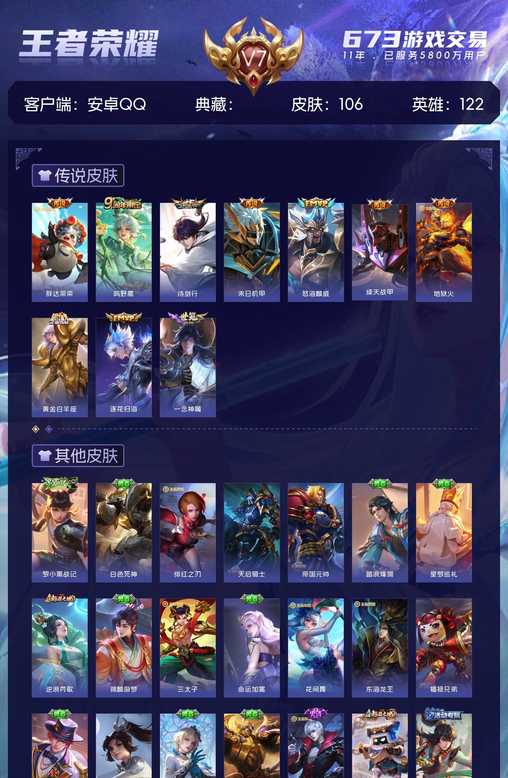 V7 皮肤106 英雄122 尊贵铂金 传说10 其他皮肤101