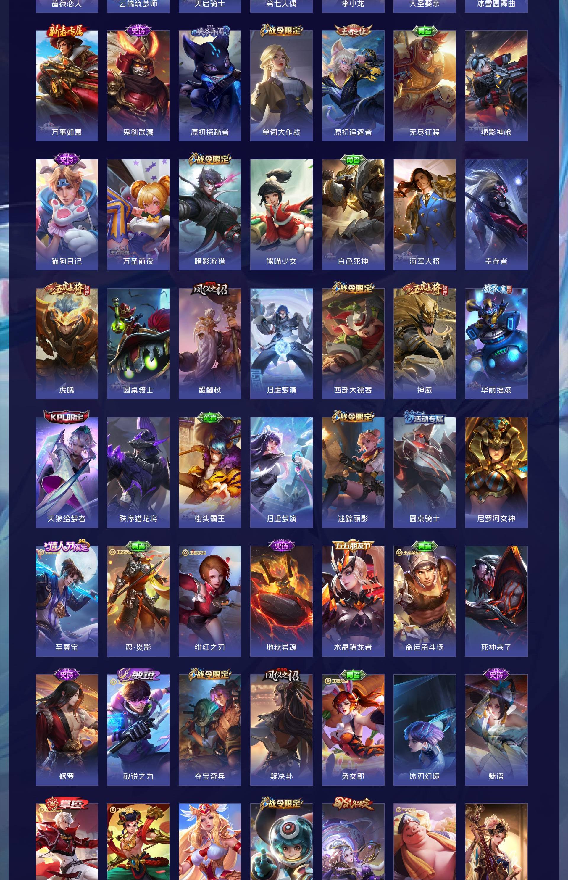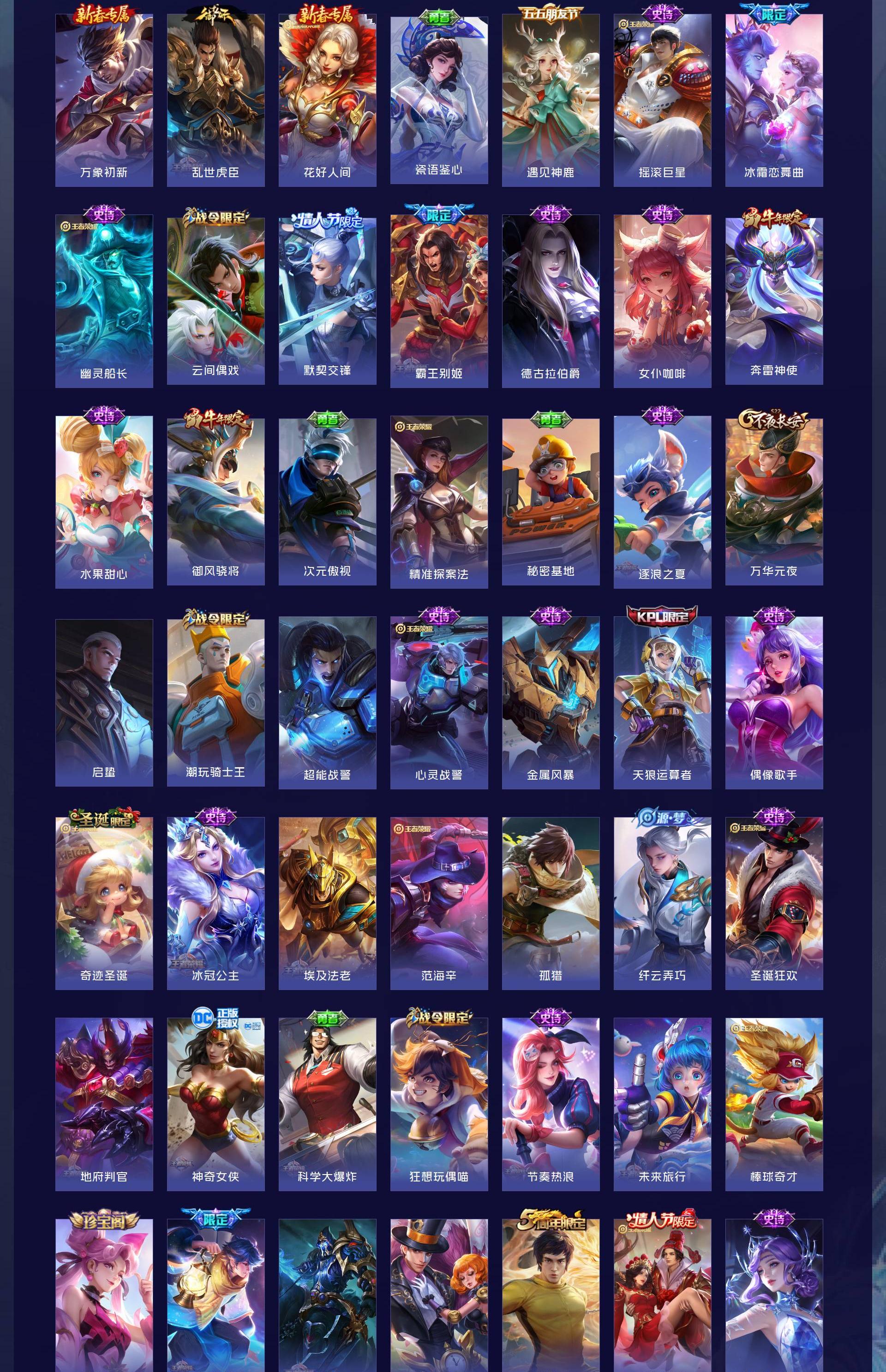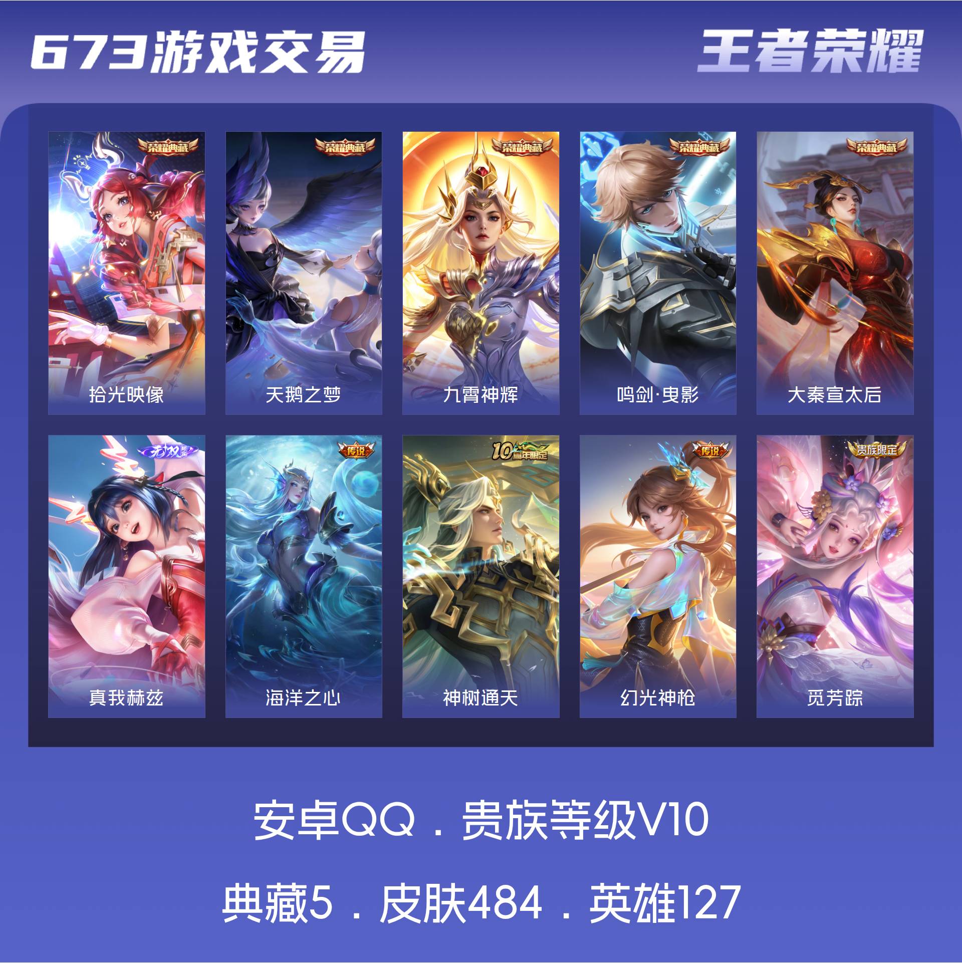 V10 皮肤484 英雄127 最强王者 荣耀典藏5 无双皮肤1 传说57 其他皮肤425