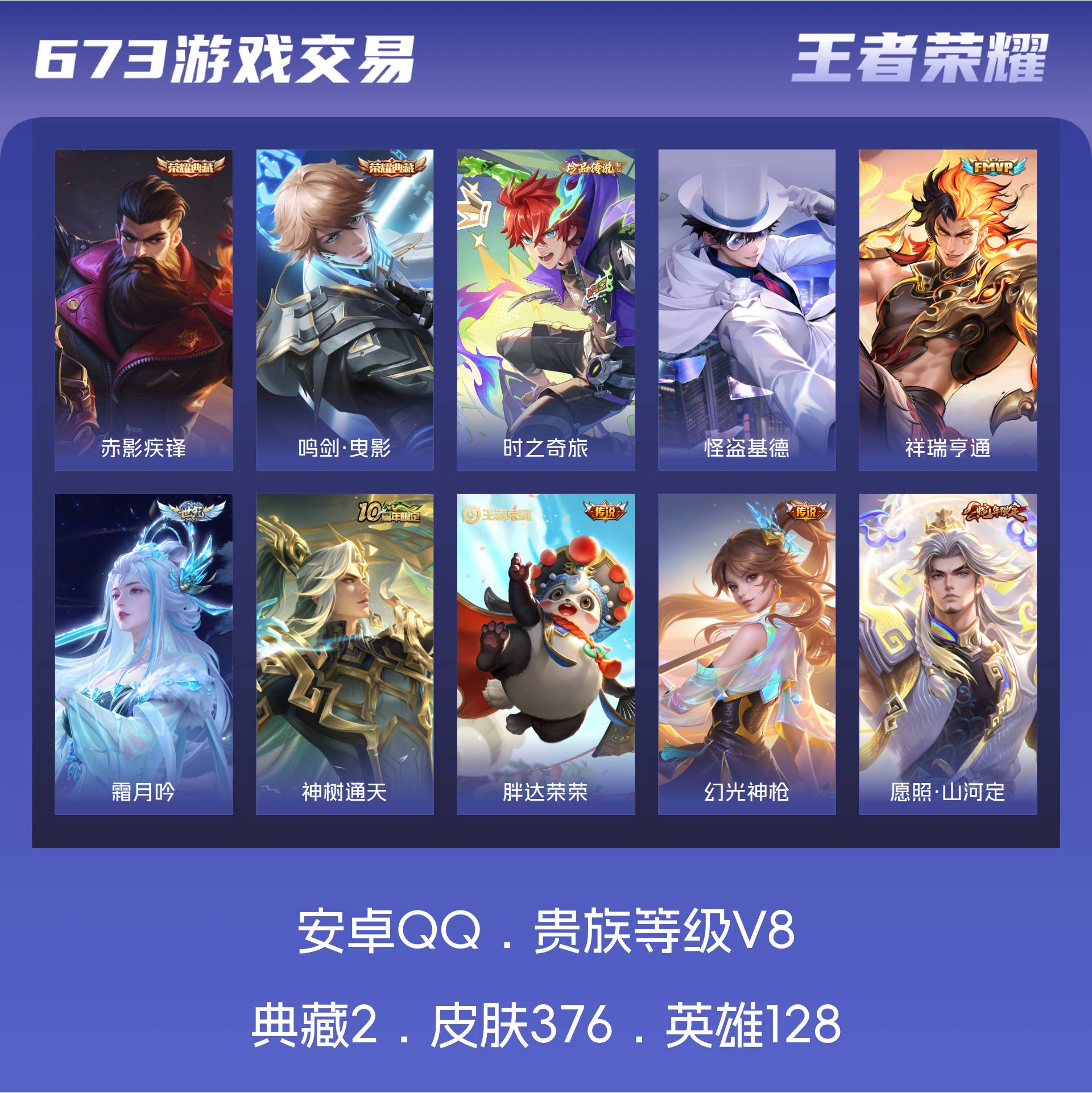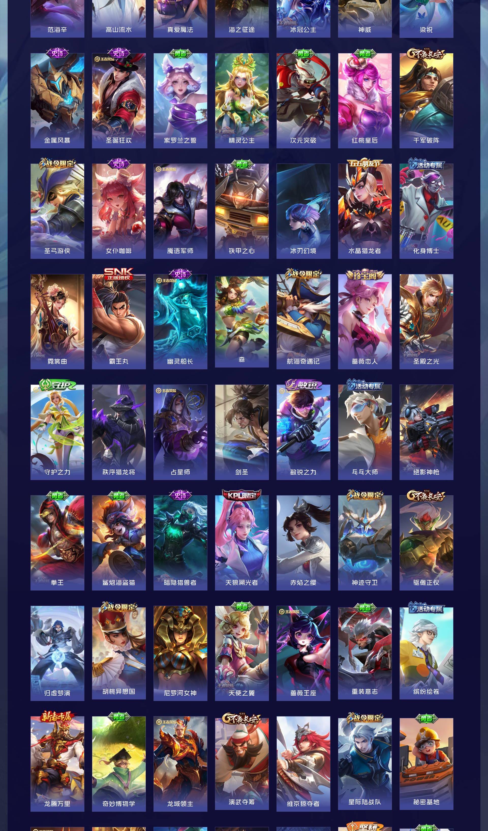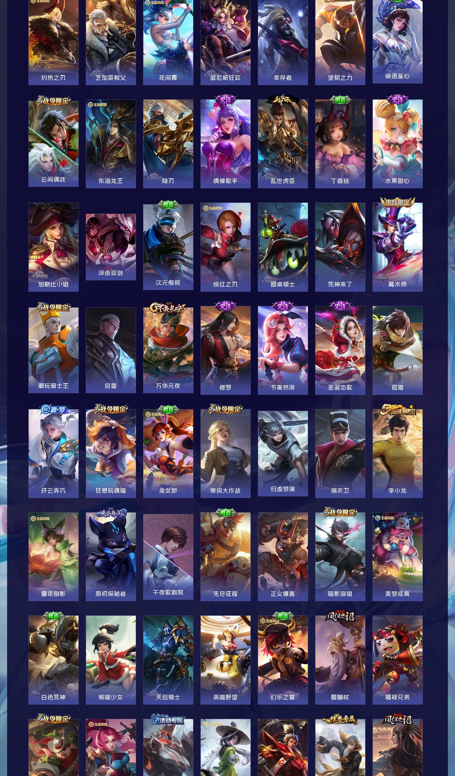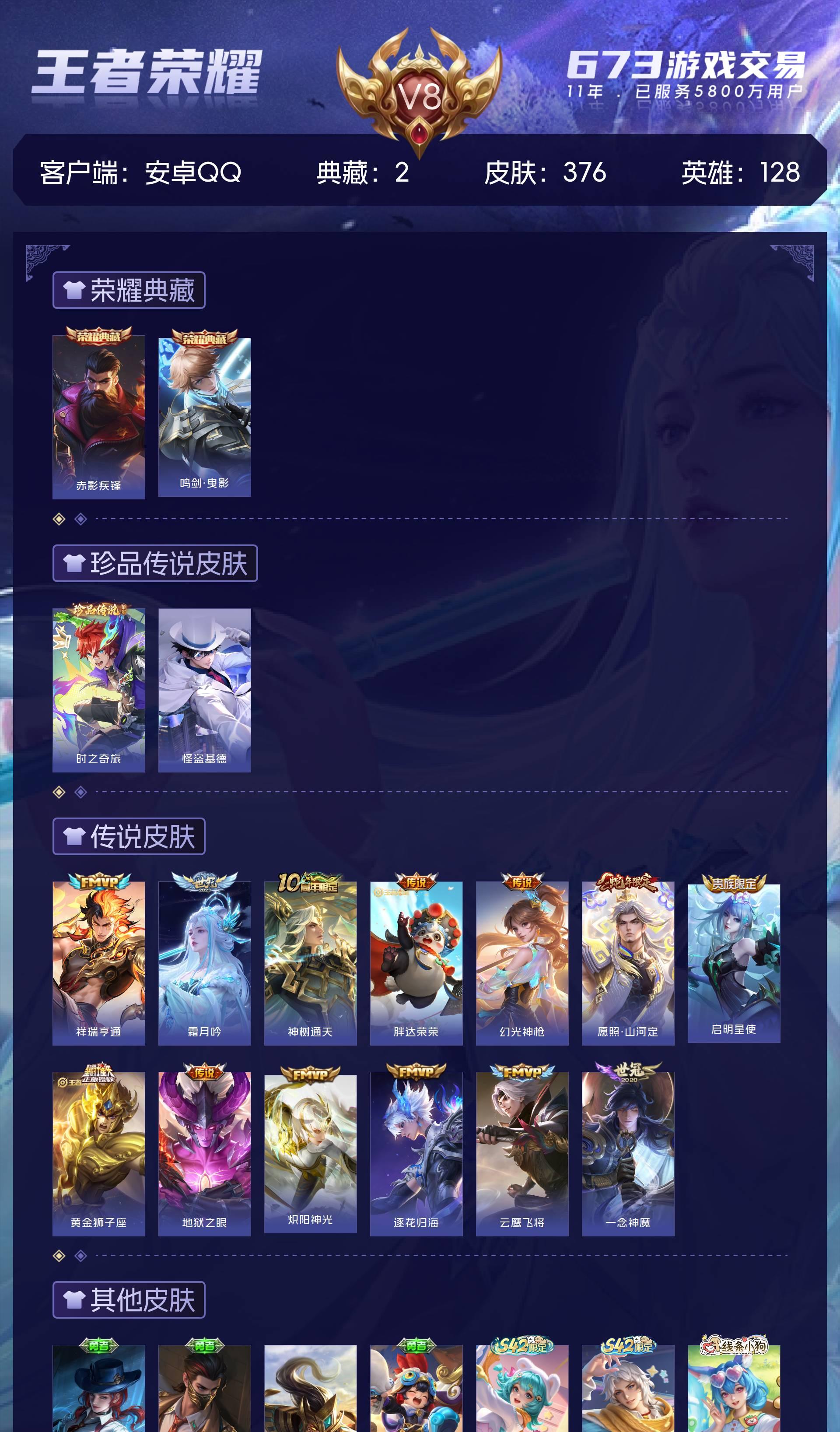 V8 皮肤376 英雄128 永恒钻石 荣耀典藏2 珍品传说2 传说13 其他皮肤363