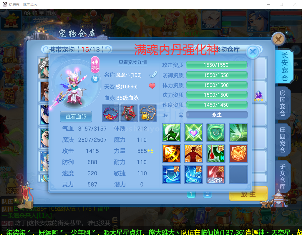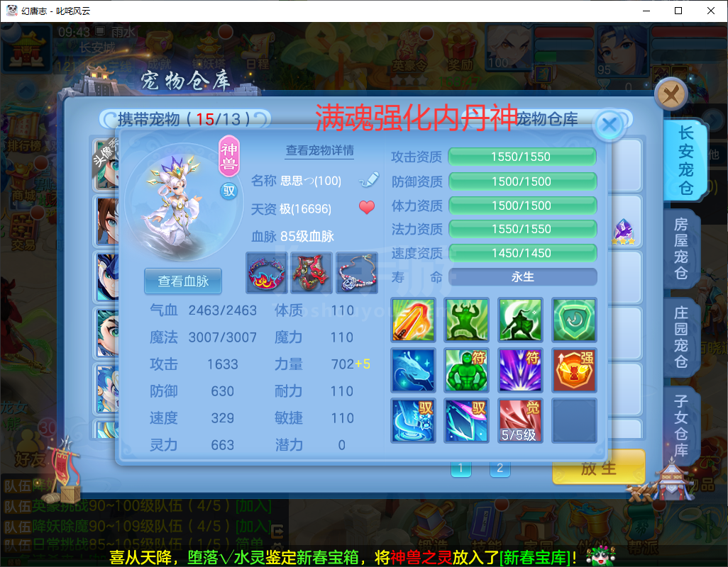 双内单 双满魂内丹强化神(蛇+玉龙) 带金拍庄园 带8100金子 叱咤风云 1年换绑 双重