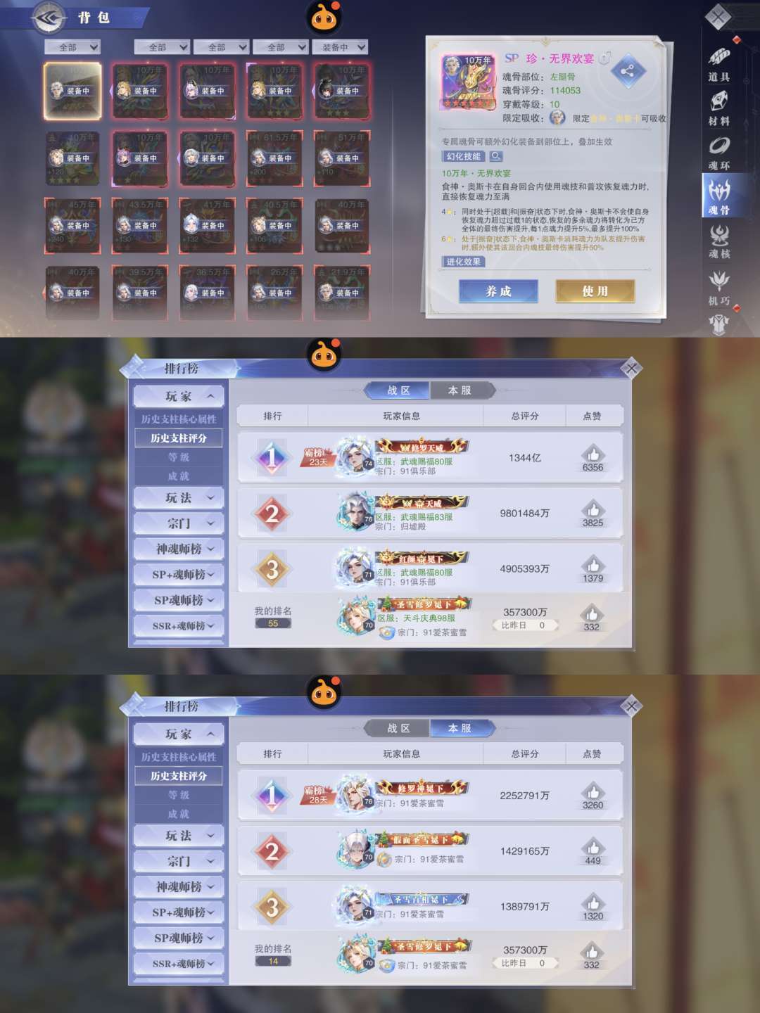 39亿战力。70级。彩2大荣22sp。彩5剑仙。