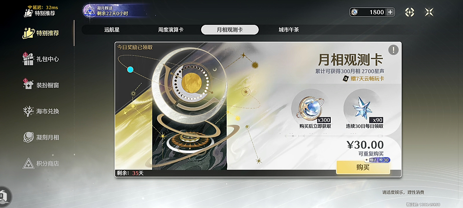 6+2大毕业尤诺,31大毕业千咲,暗主大毕业,刚开没几天的月卡,1800月相。