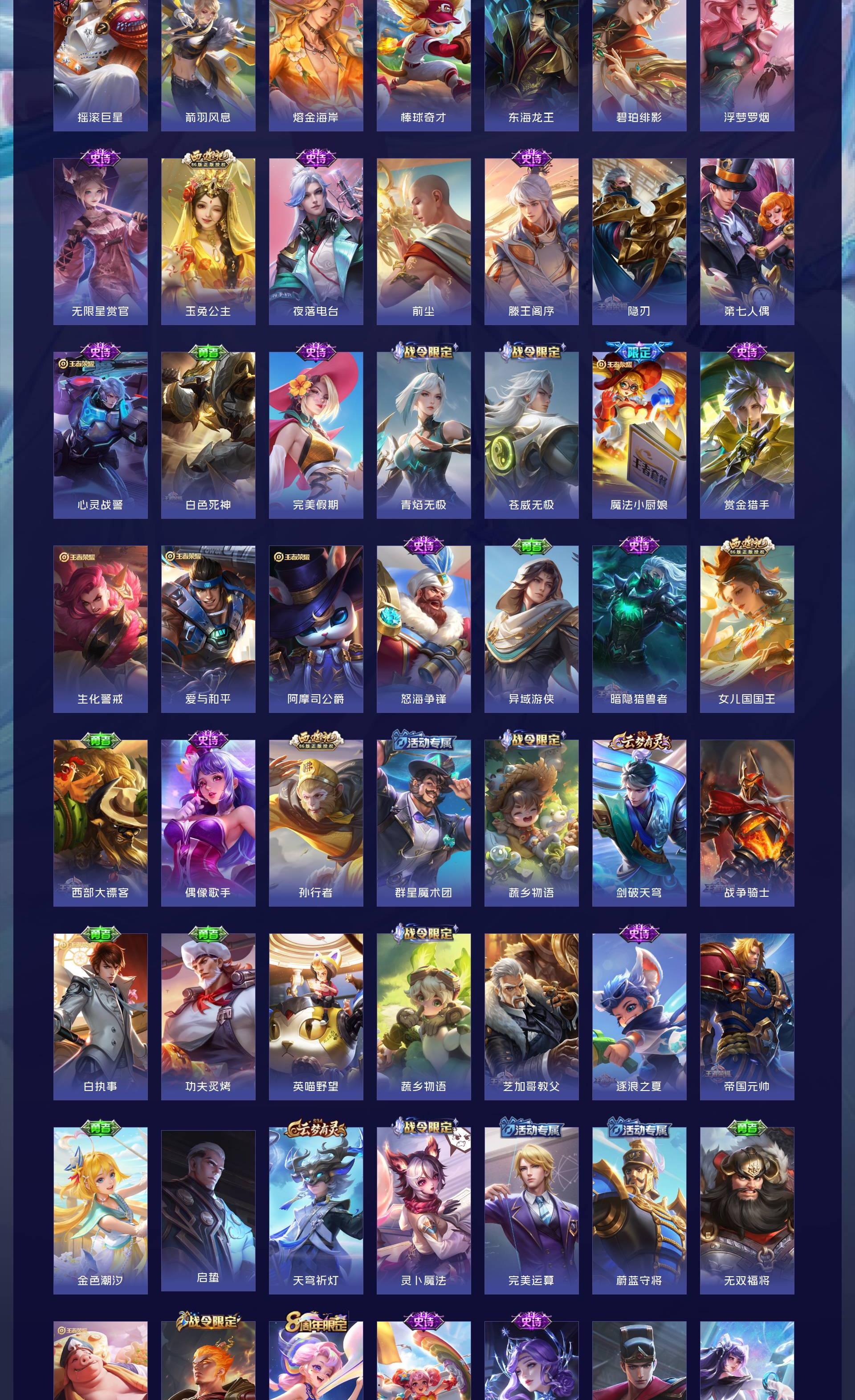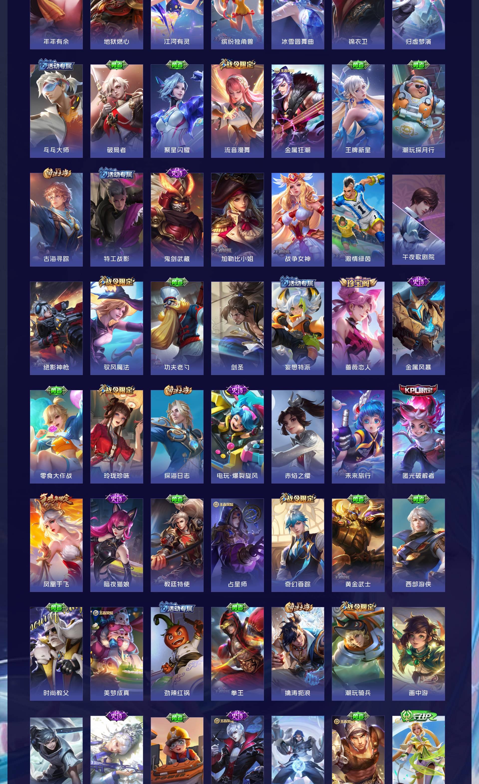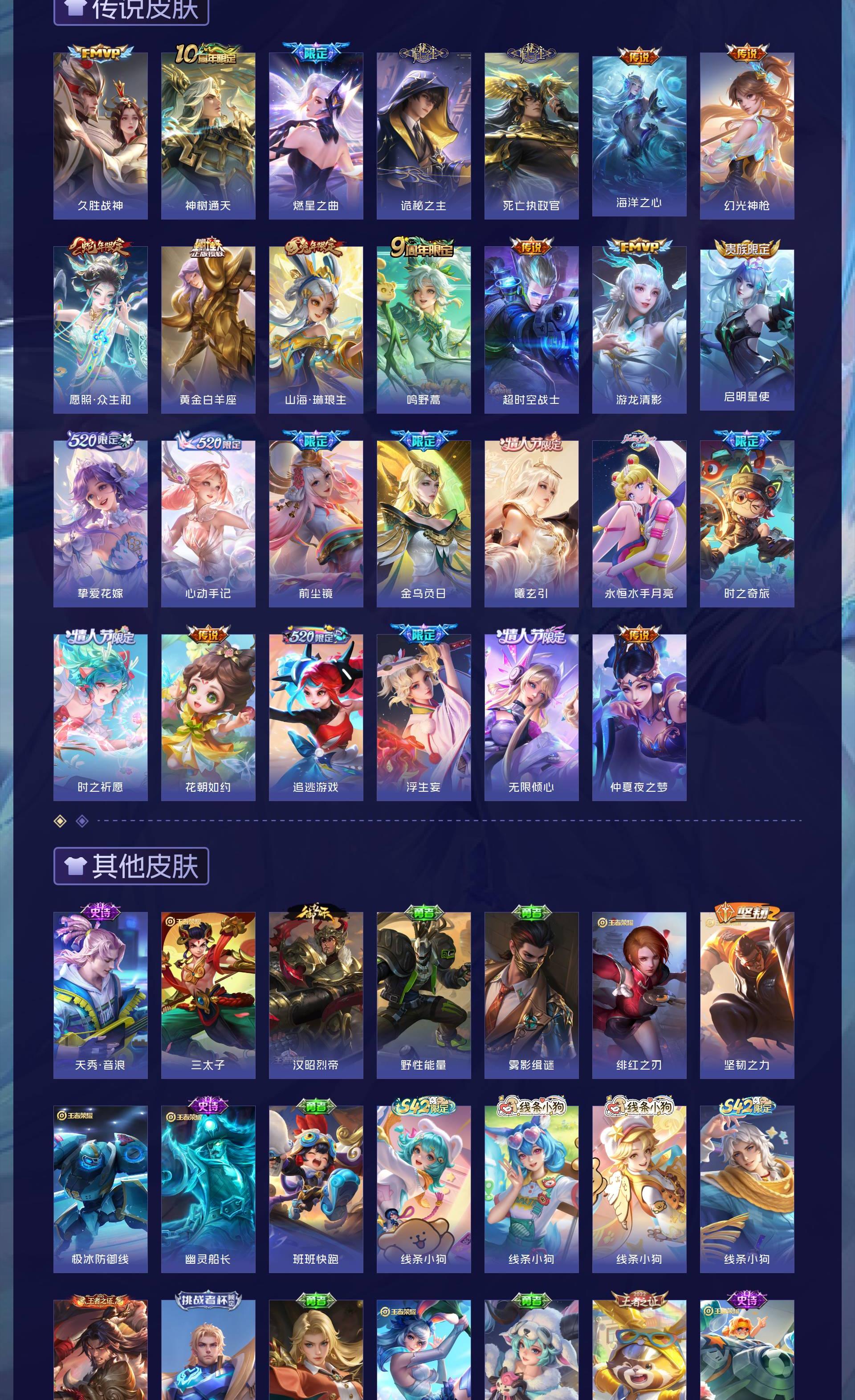V9 皮肤399 英雄129 最强王者 荣耀典藏2 珍品无双1 无双皮肤3 珍品传说2 传说27 其他皮肤363