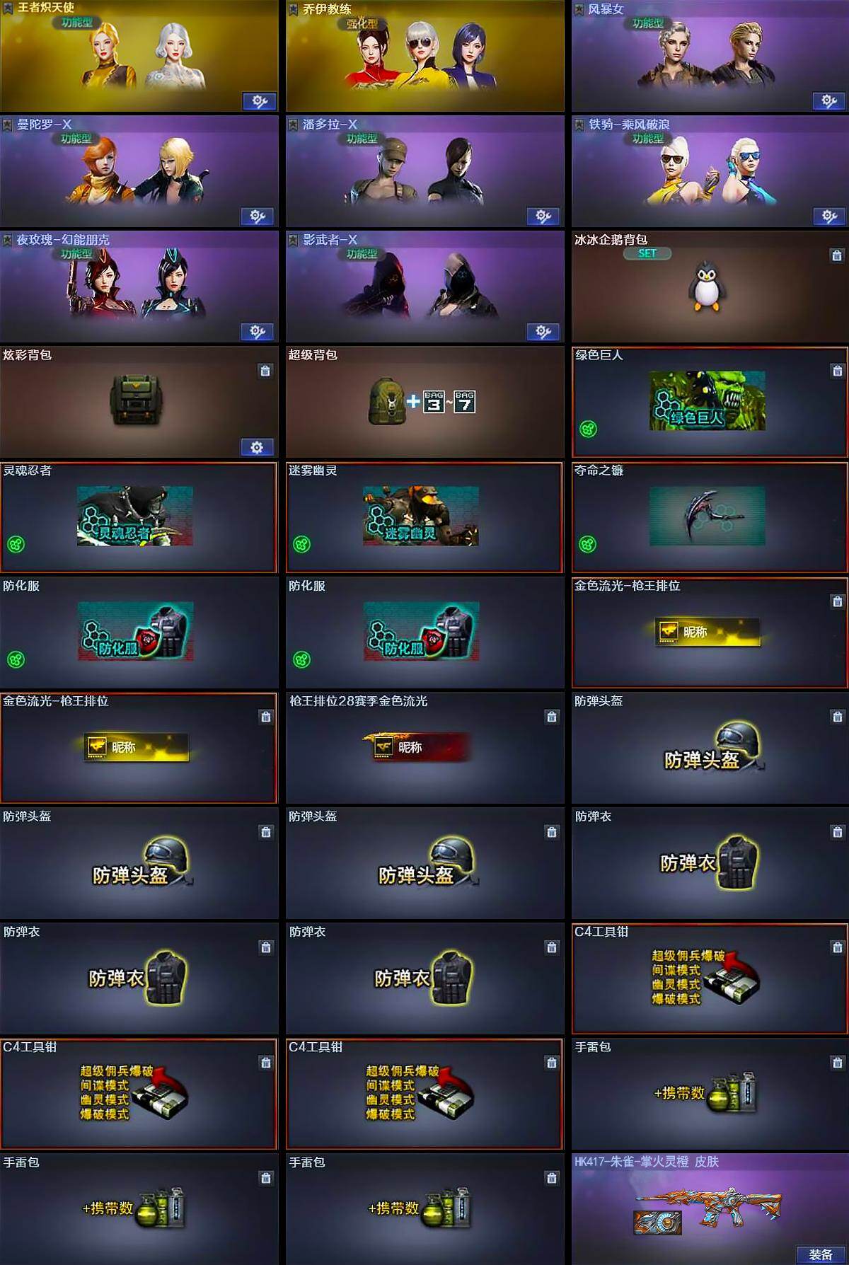 【角色】:王者炽天使,乔伊教练,风暴女,兰-新年限定,曼陀罗-X,潘多拉-X,铁骑-乘风破浪,兔囡囡,夜玫瑰-幻能朋克,影武者-X