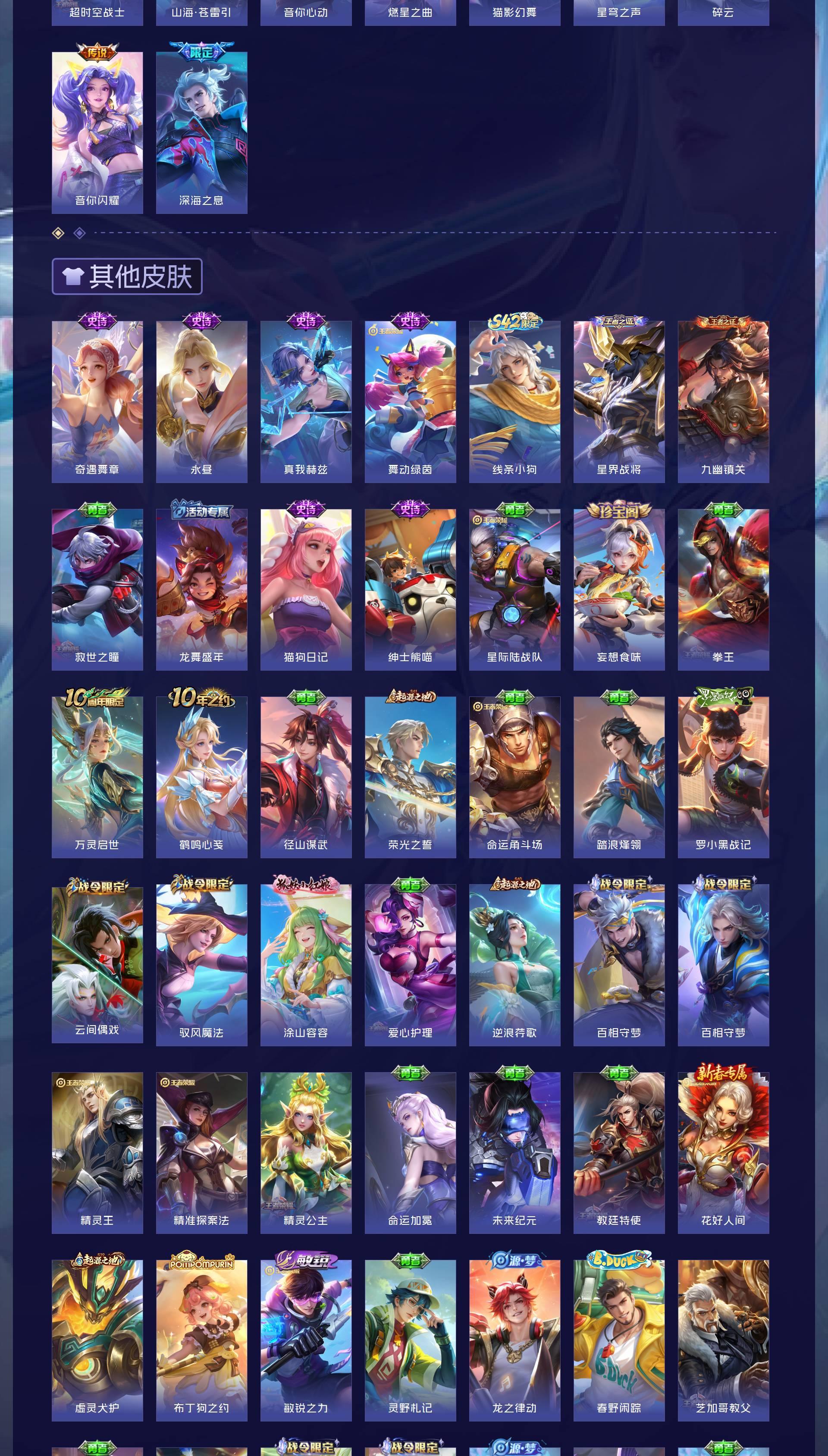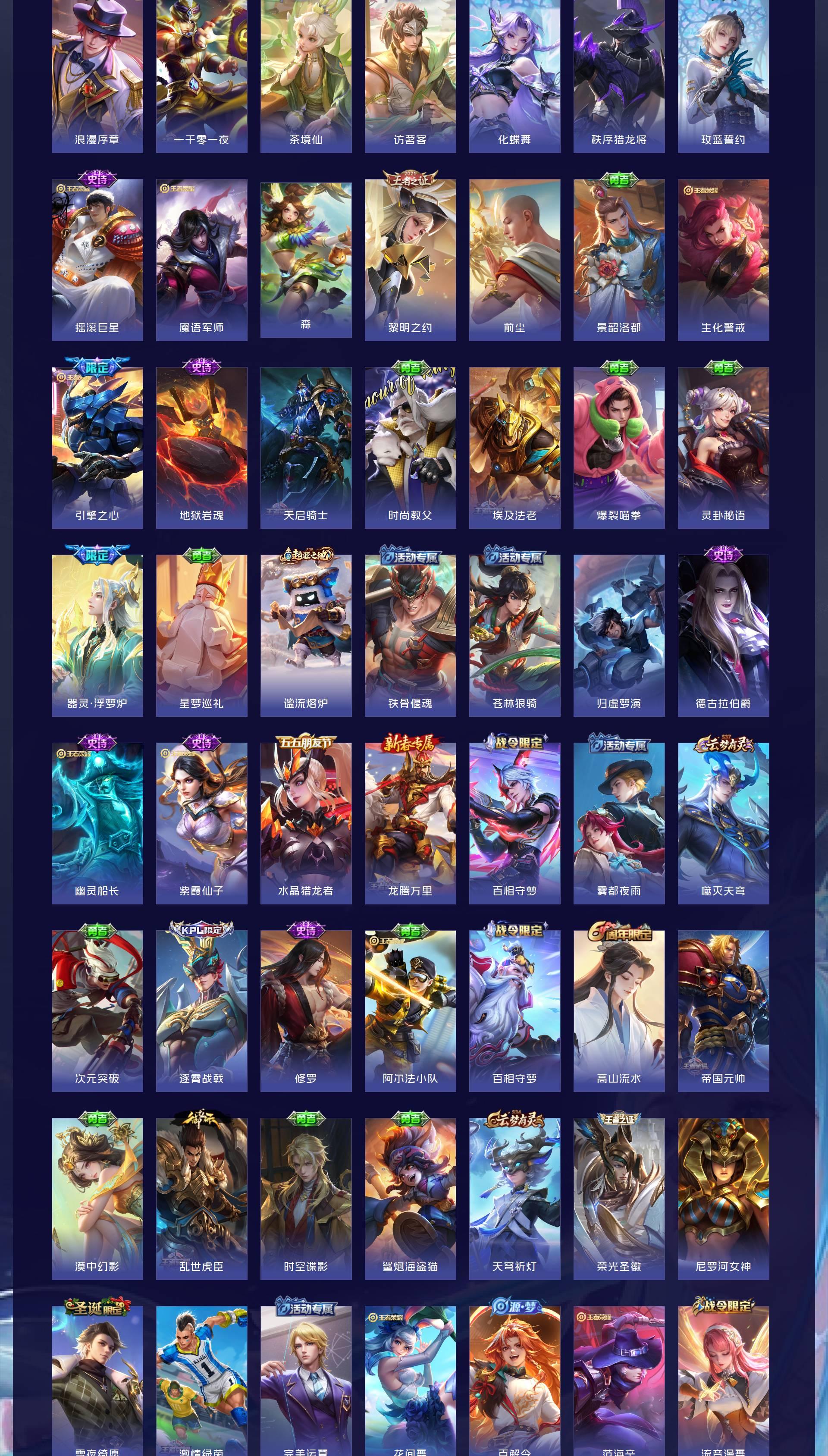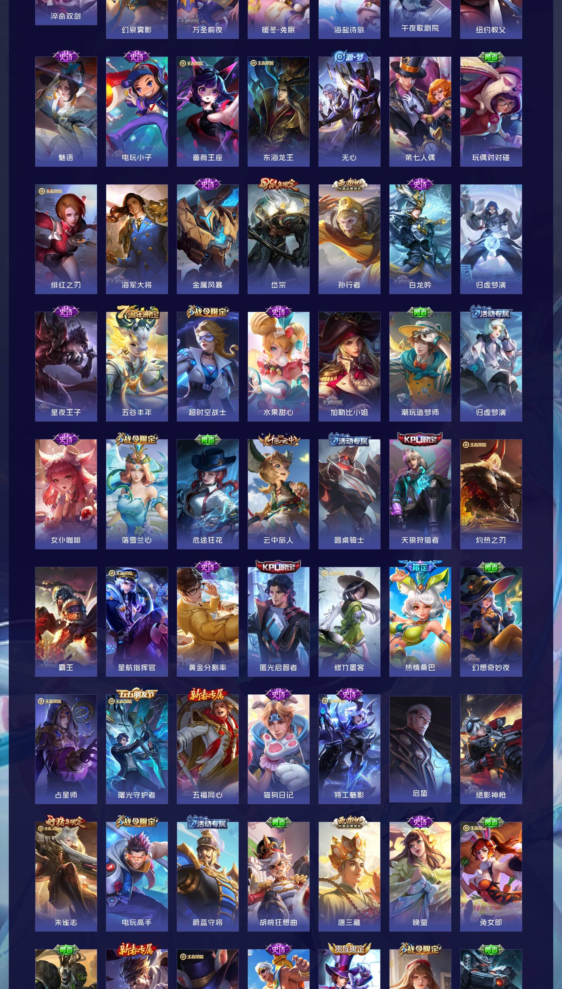 V8 皮肤263 英雄127 至尊星耀 荣耀典藏1 无双皮肤1 珍品传说1 传说16 其他皮肤249
