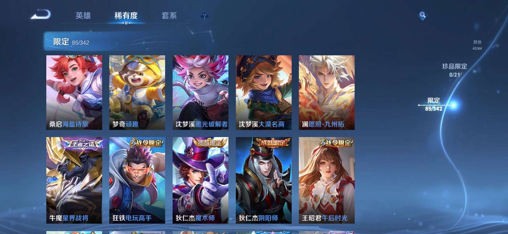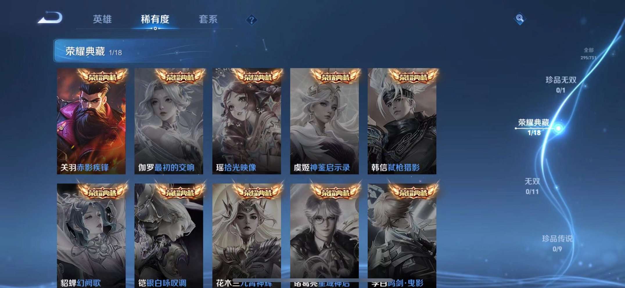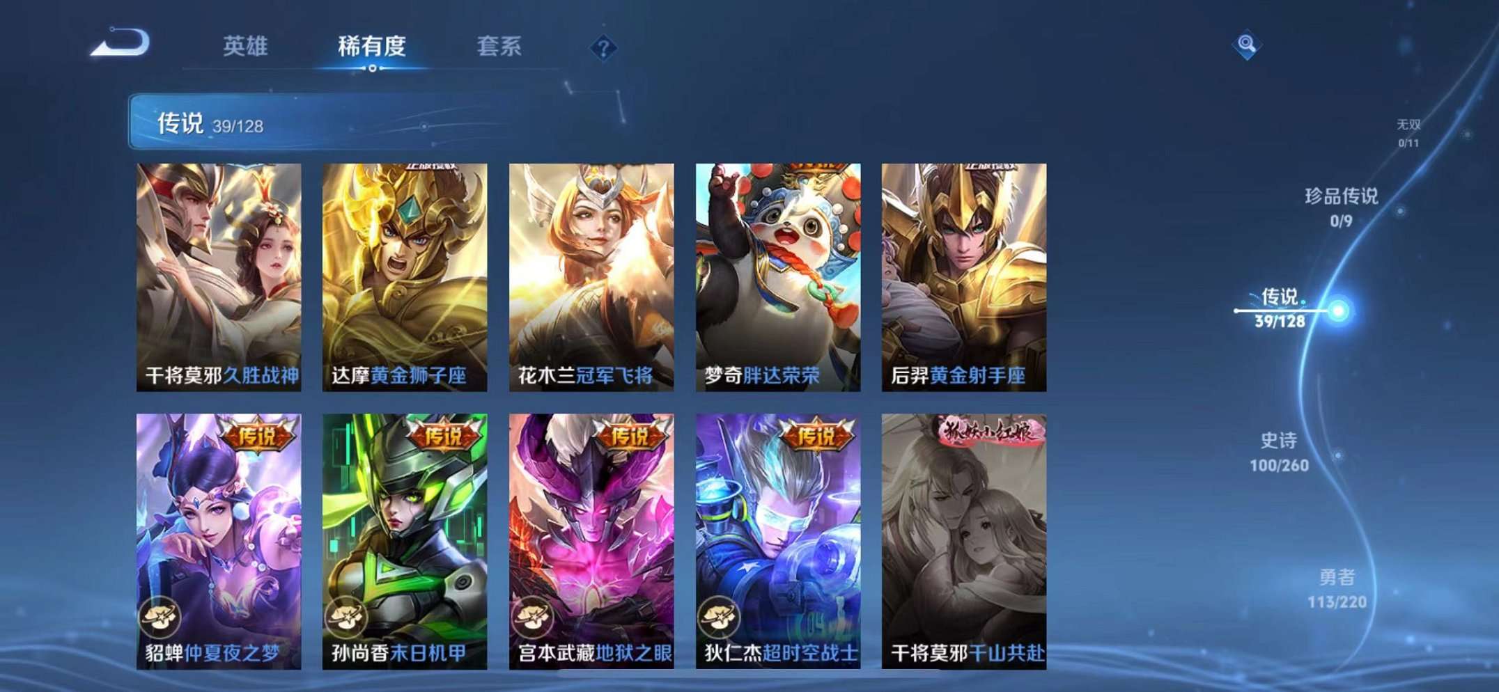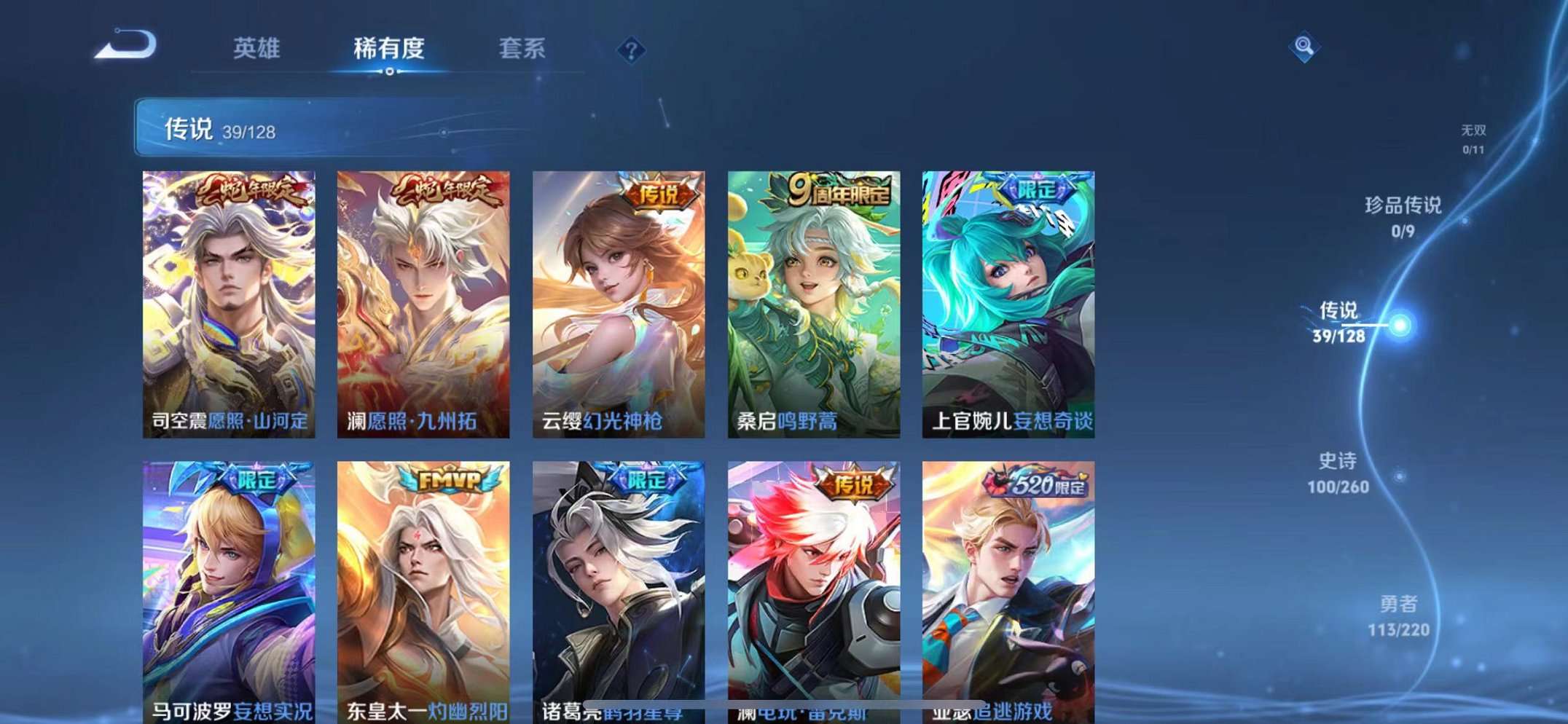 39传说1水晶2星元1天幕 -124英雄-295皮肤