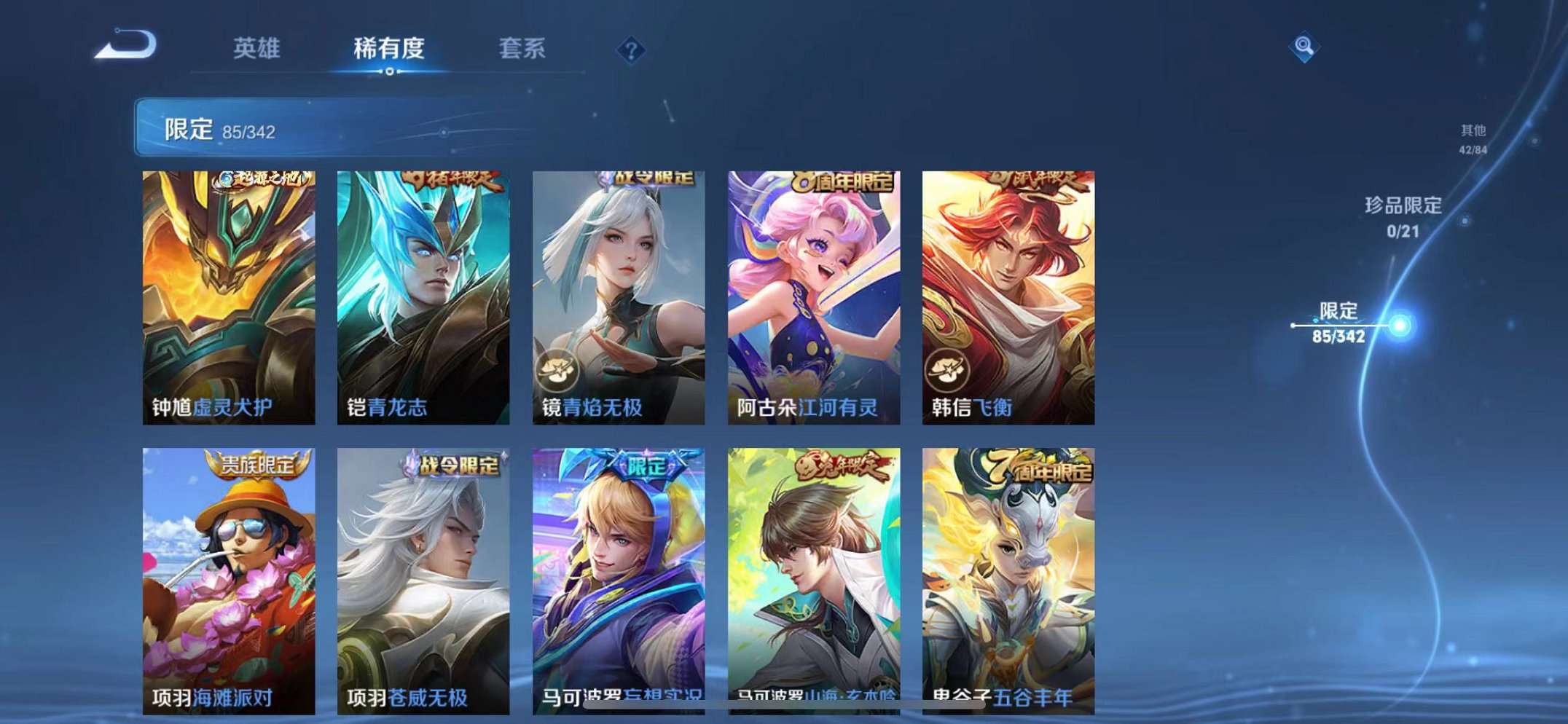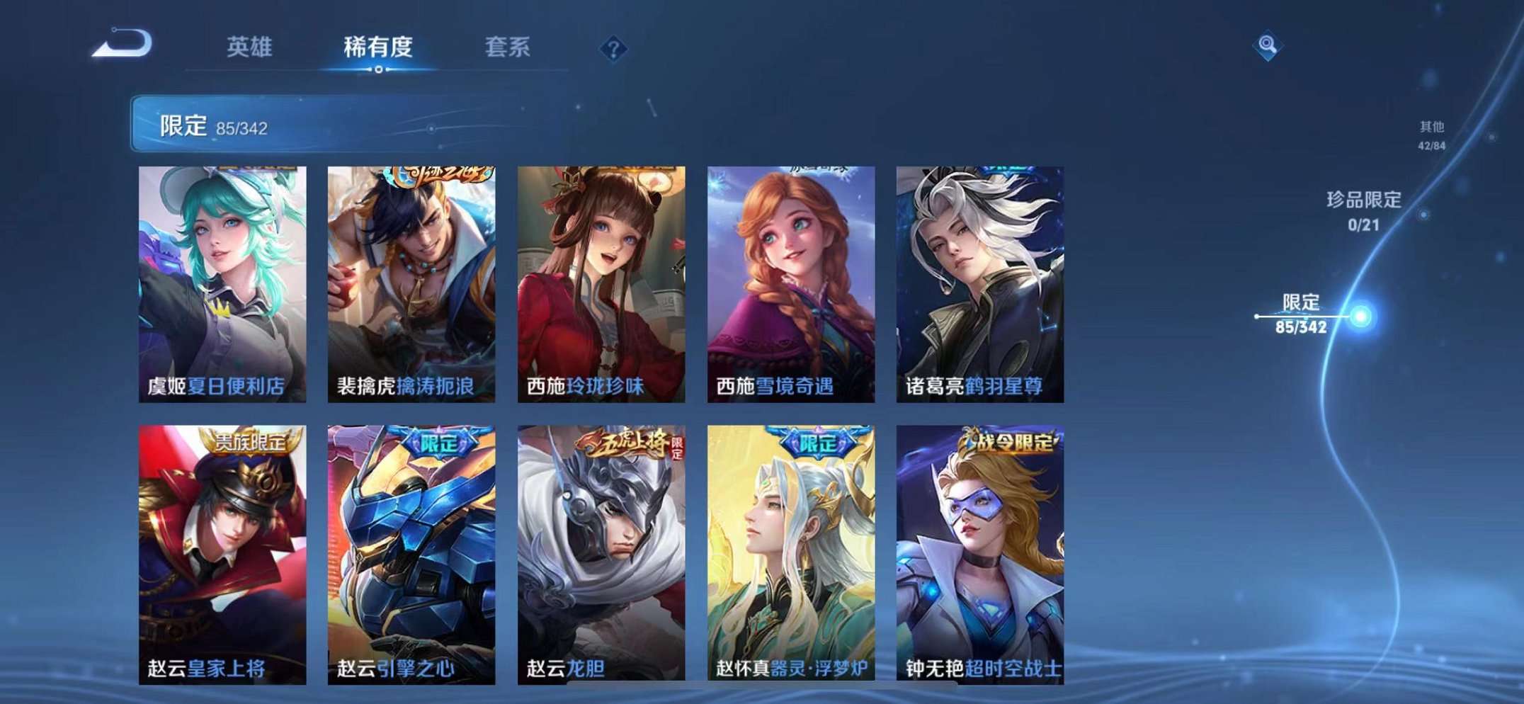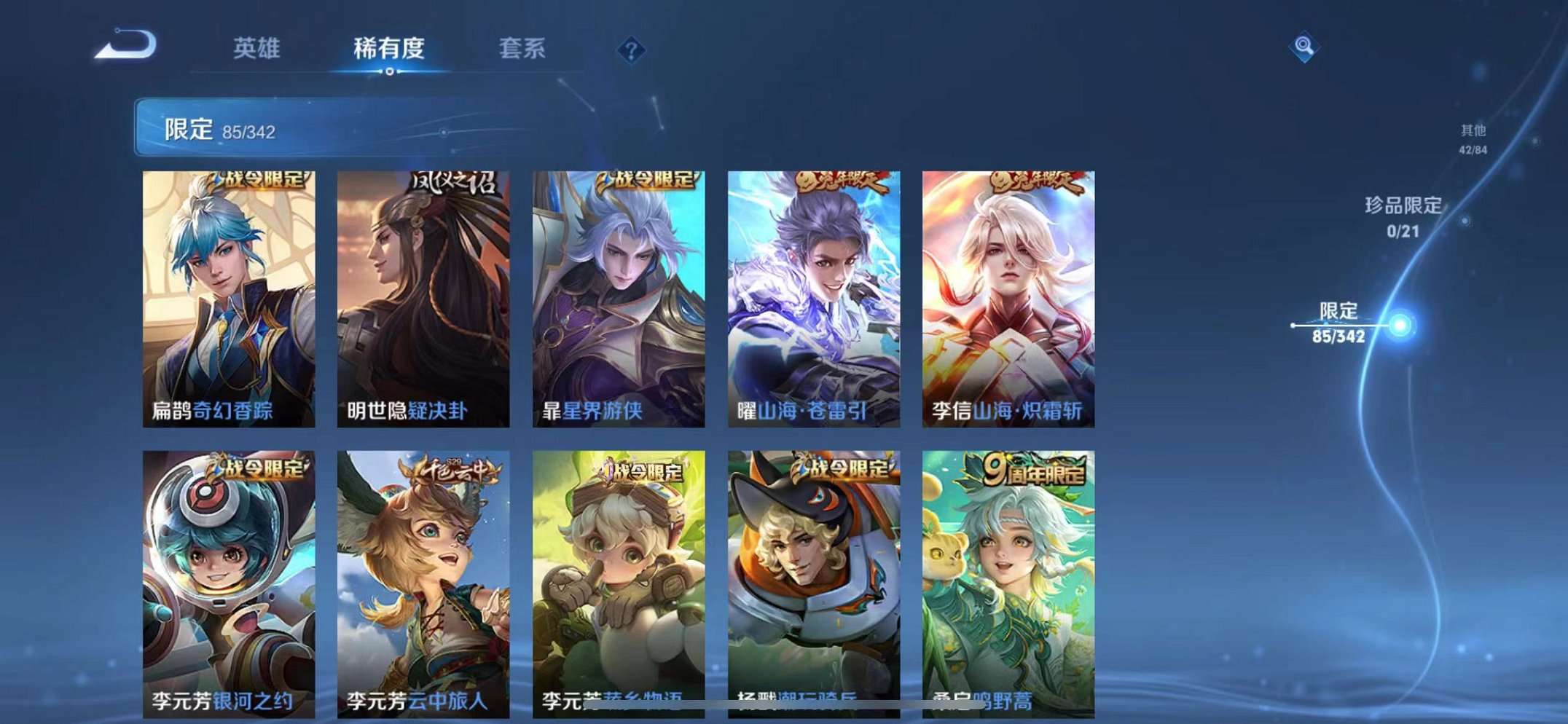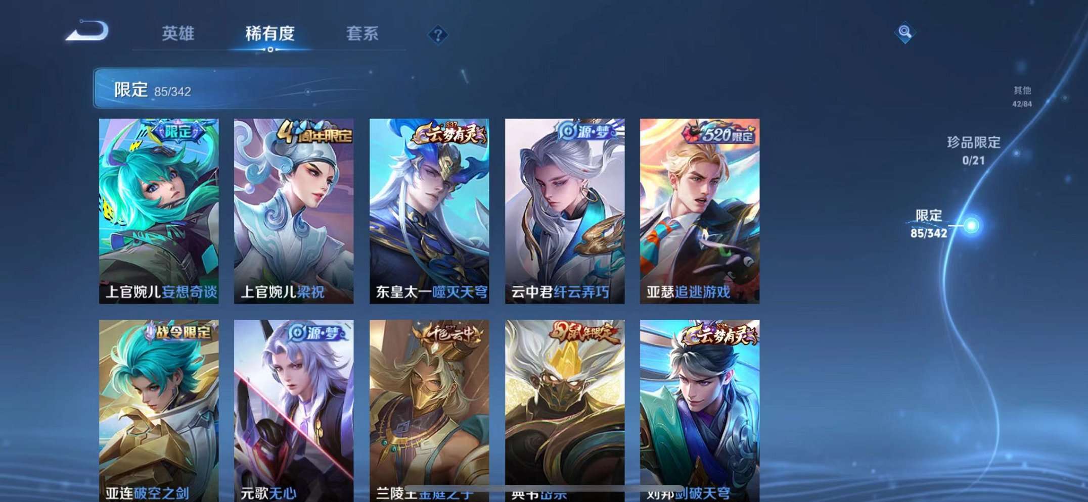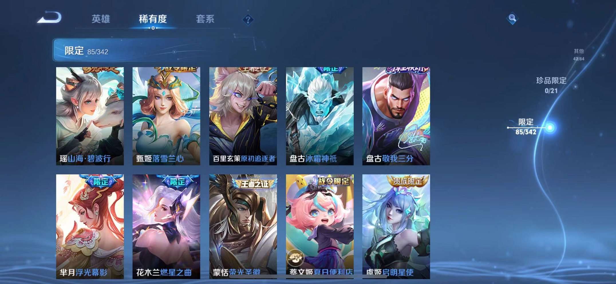 39传说1水晶2星元1天幕 -124英雄-295皮肤