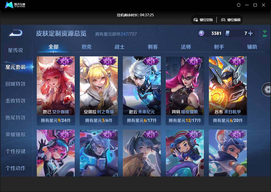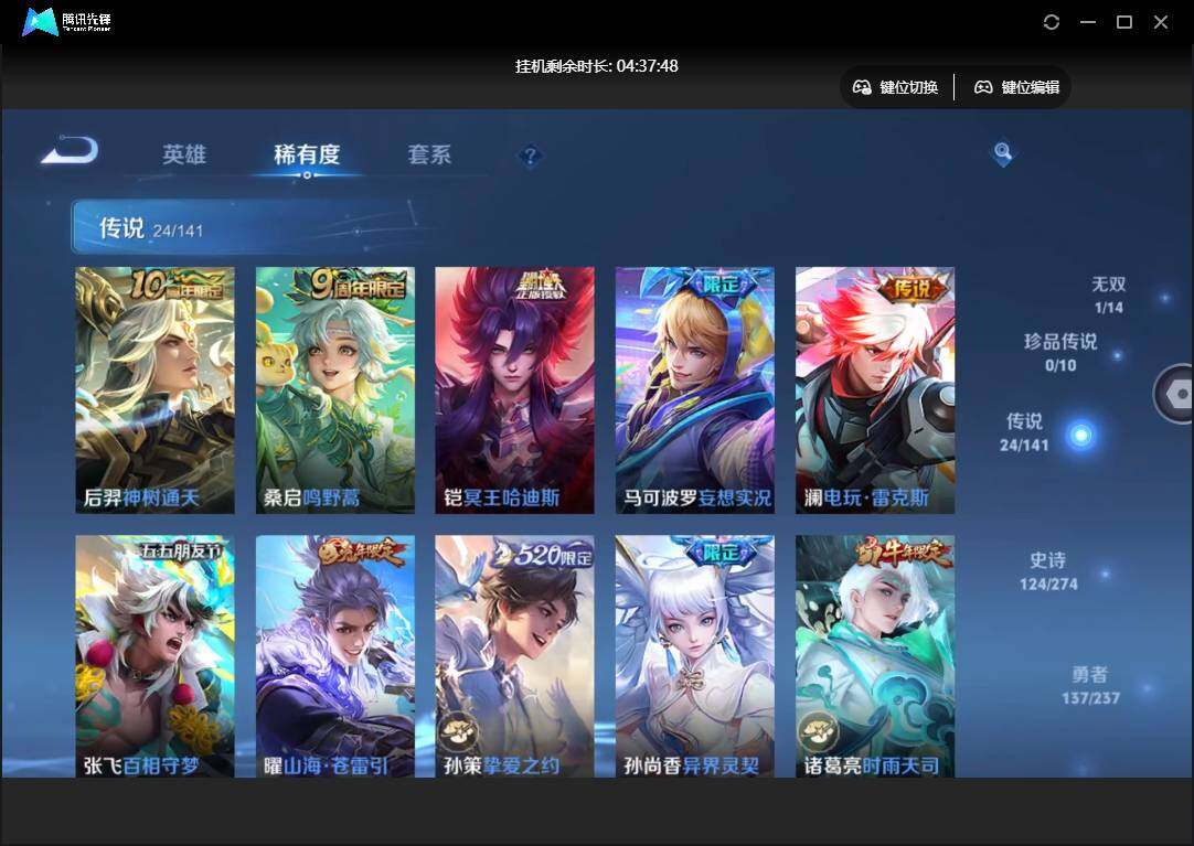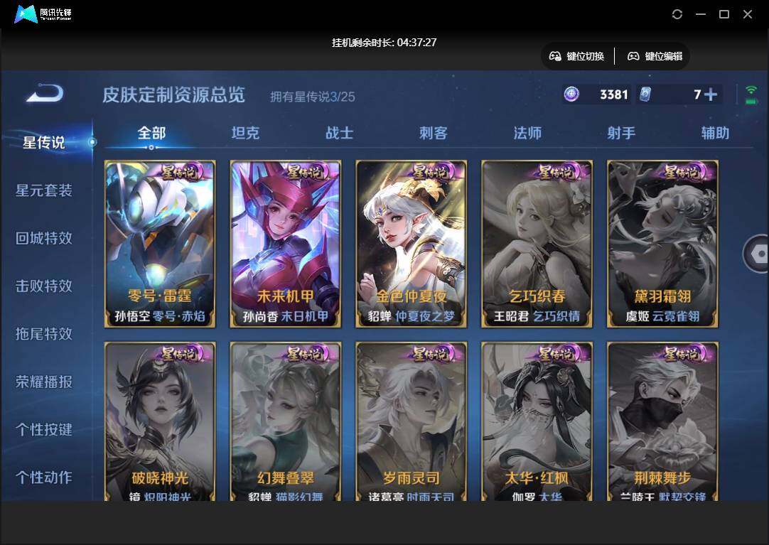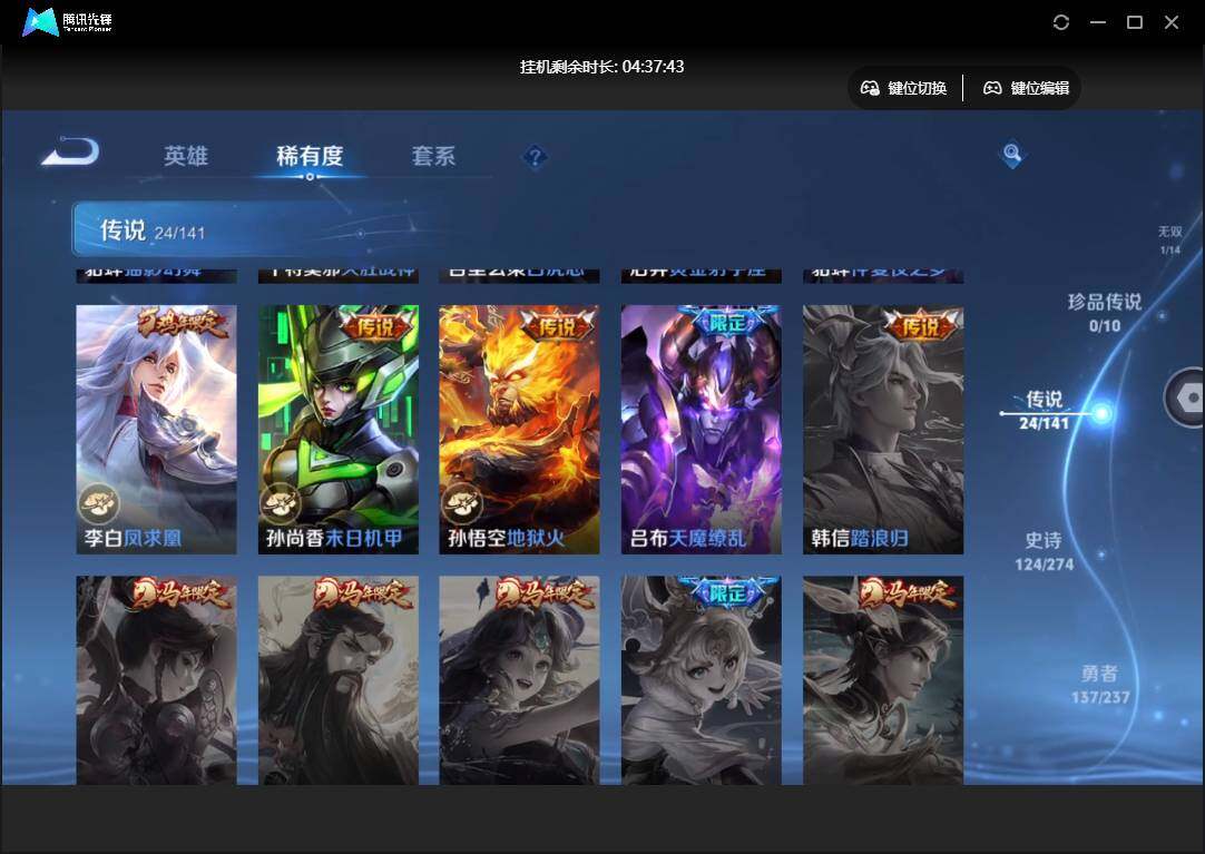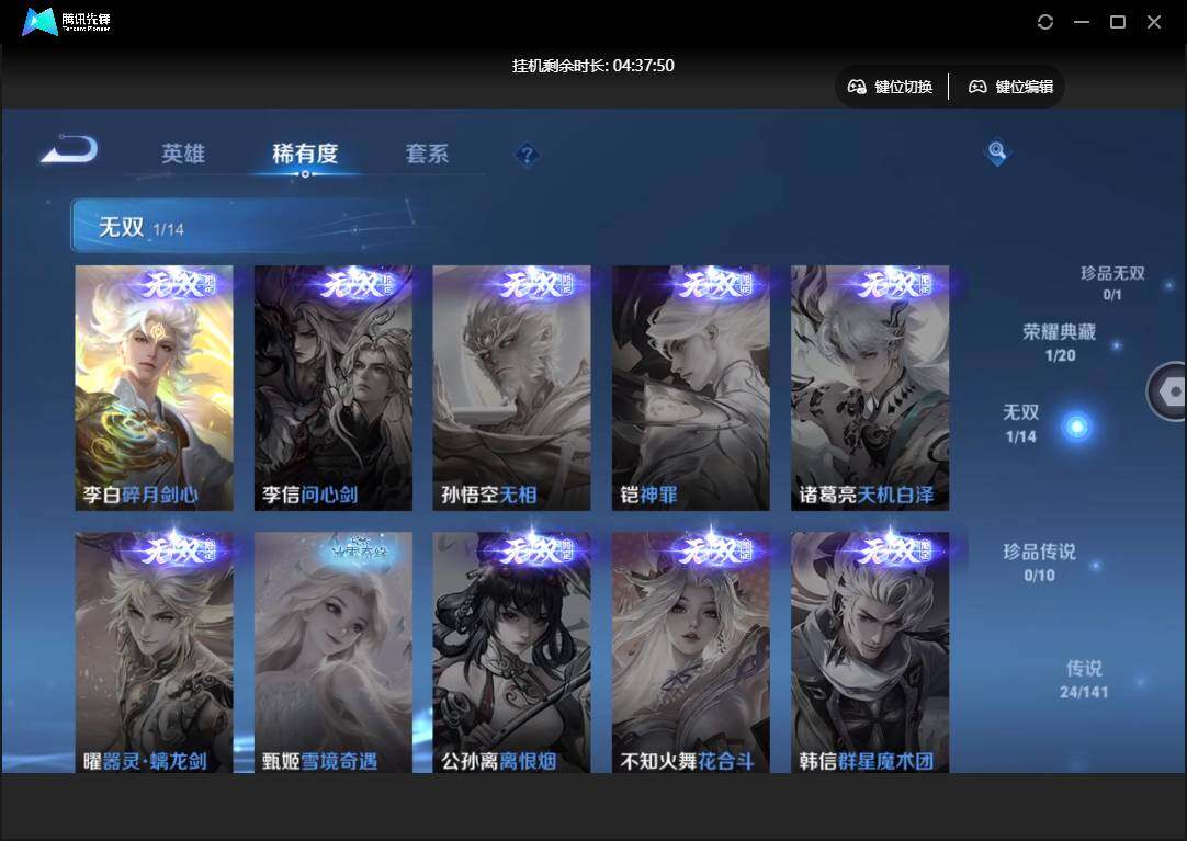 【W5712】【3.3k星币】 【爆款臻稀皮肤:碎月剑心-鸣剑曳影-白虎志-凤求凰-山海苍雷引-时雨天司-武圣-启明星使-异界灵契-天魔缭乱-零号赤焰-挚爱之约-张飞百相守梦-冥王哈迪斯-妄想实况】安卓q-有二次-贵9-127英雄-353皮肤-1典藏-1无双-3星元-24传说-144限定-1天幕-16按键-贵族积分10w