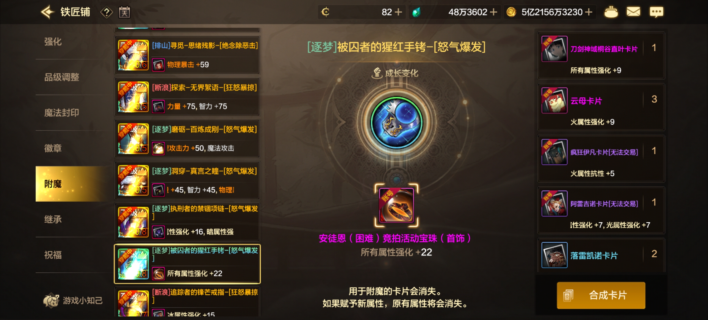 将近12万抗魔,4个11万以上,7个10万以上,6个武器荒古毕业,武器增幅9,防具3个8,有3至尊,附魔好,毕业耳环卡一个22属性,50万泰拉,将近6亿金币,微信限制加不了好友介意勿拍!