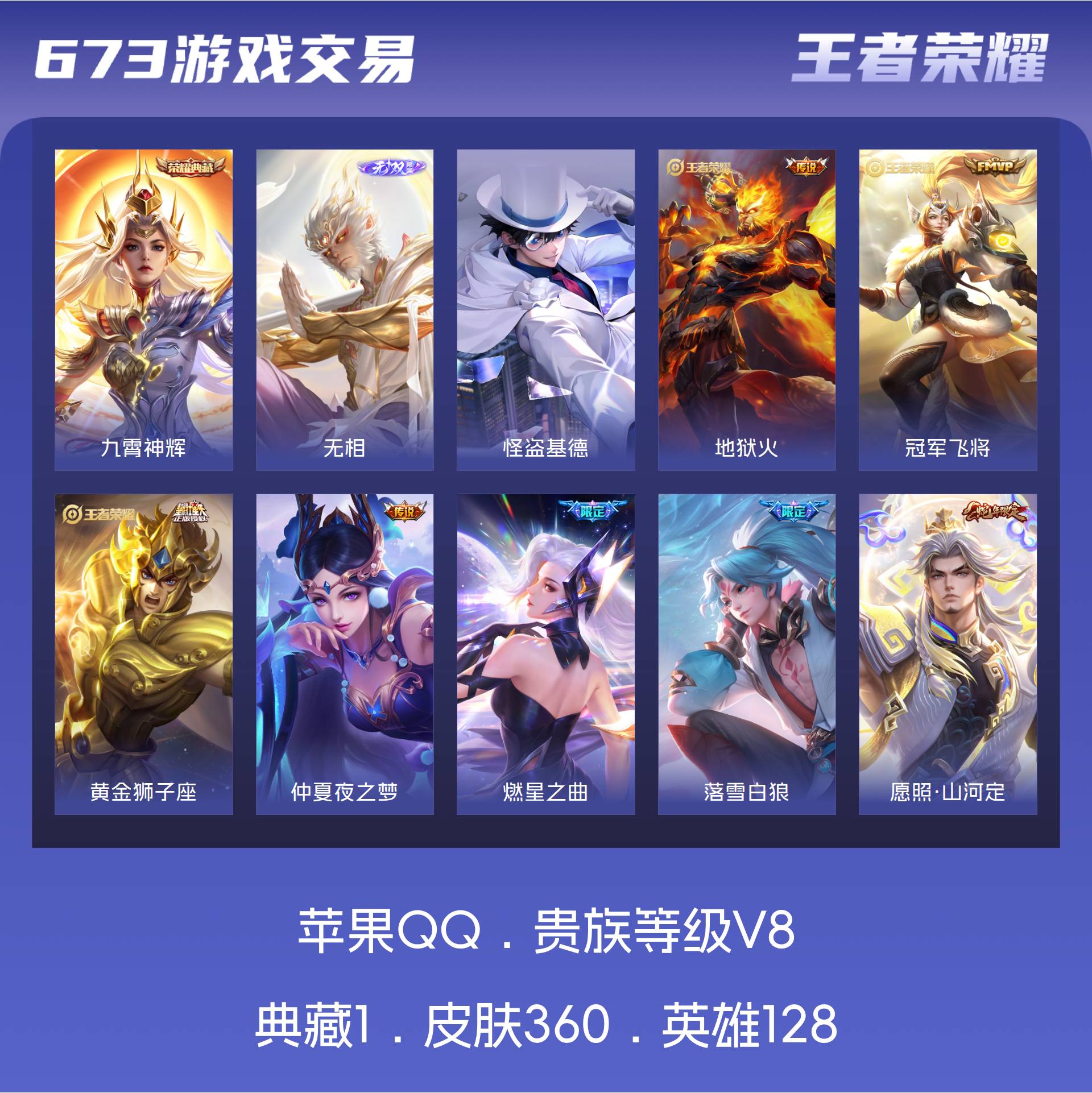 苹果QQ/至尊星耀/360皮肤/128英雄/1典藏/0珍品无双/1无双/1珍品传说/20传说/107