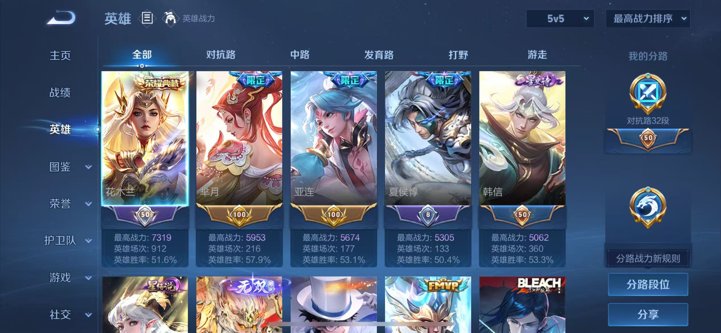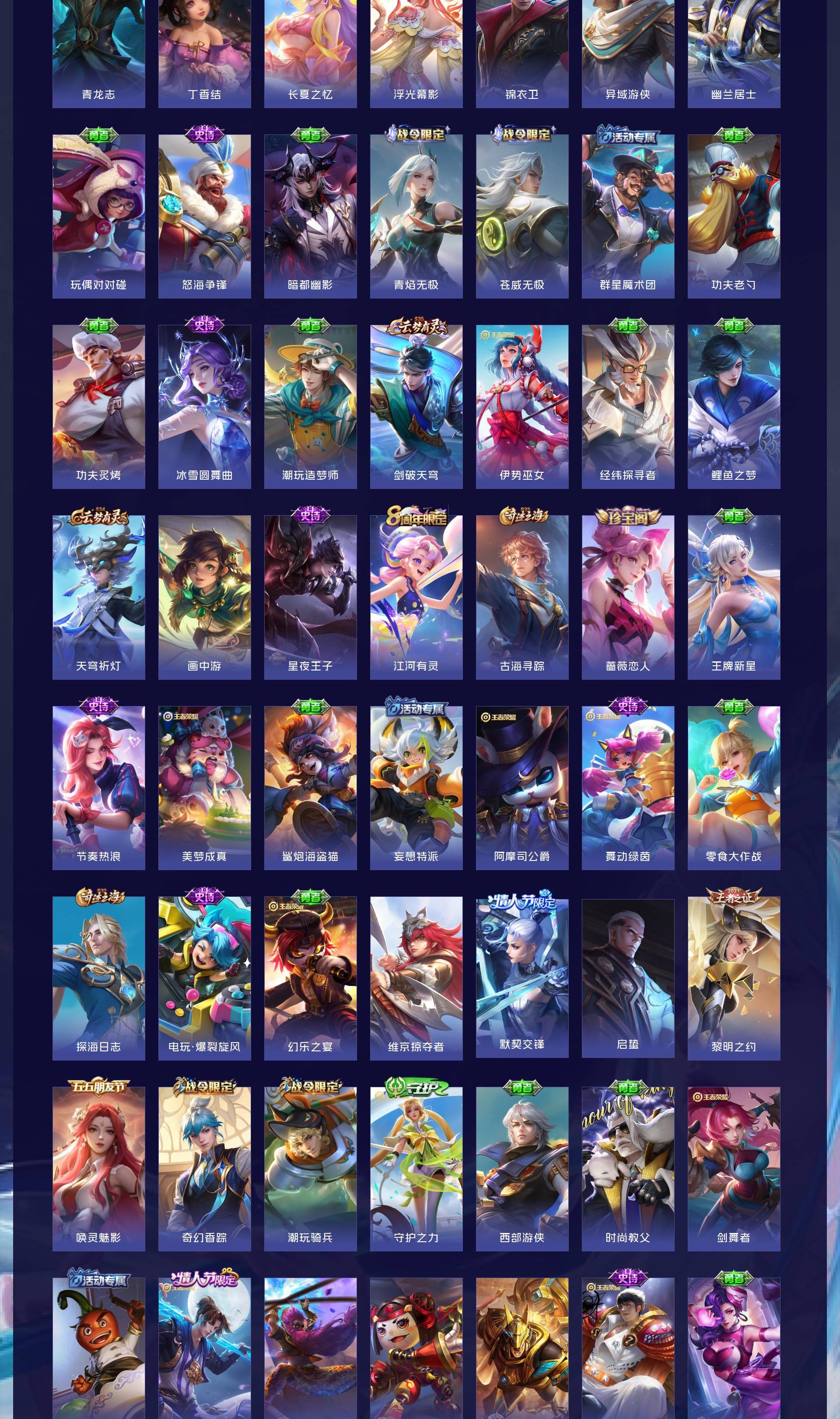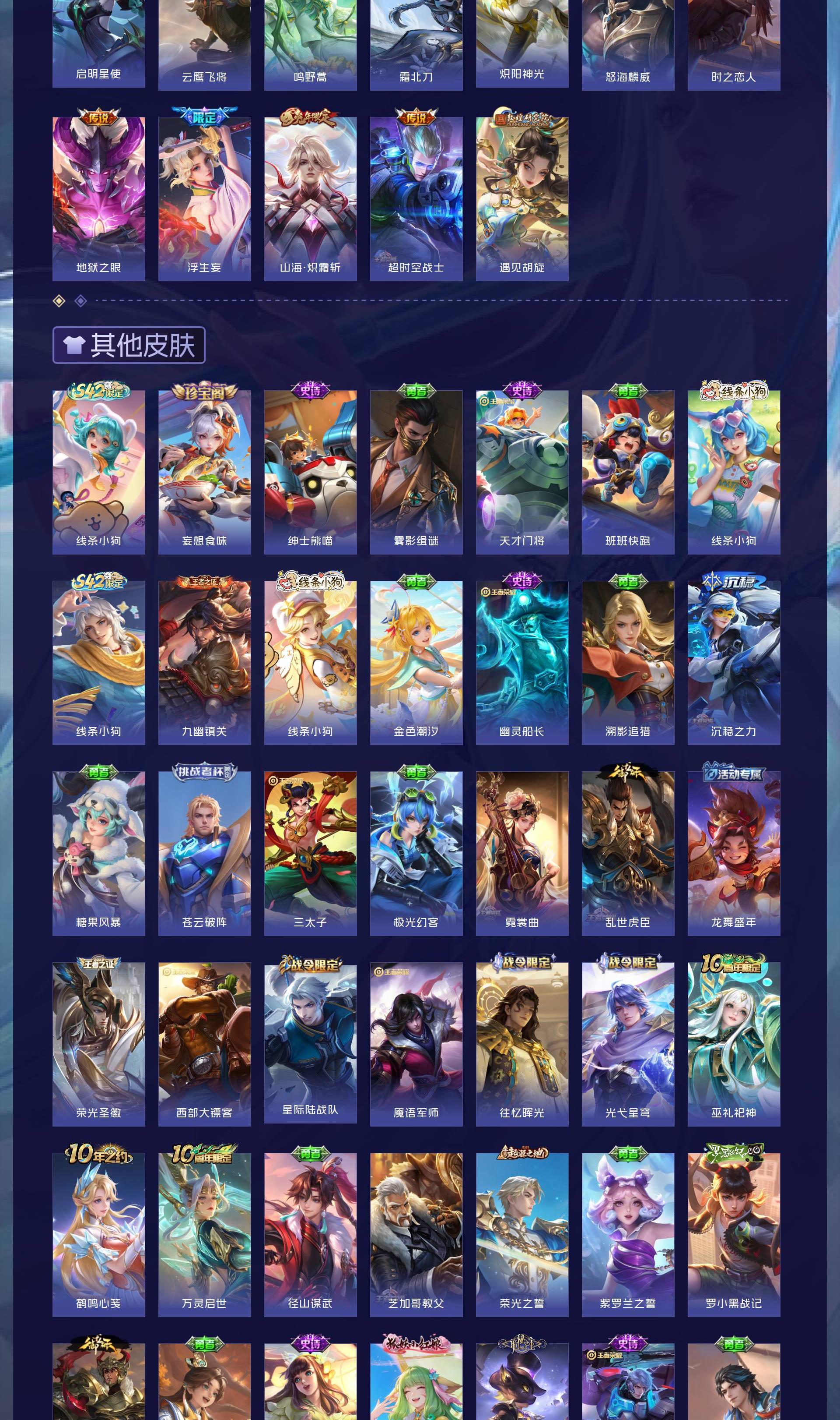 V8 皮肤360 英雄128 至尊星耀 荣耀典藏1 无双皮肤1 珍品传说1 传说19 其他皮肤339