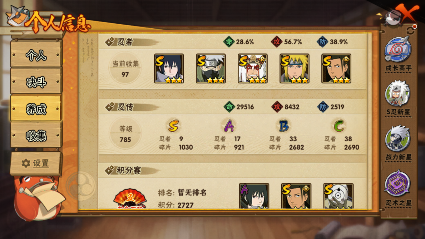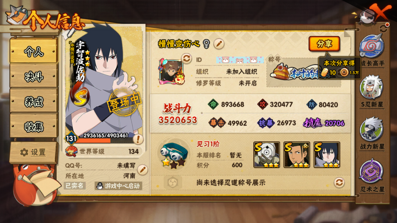 (可转苹果)352w战力创柱白面9s+新春水门17a战力35