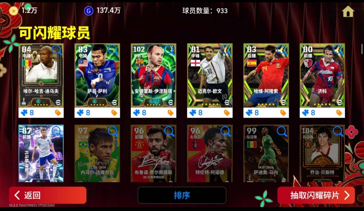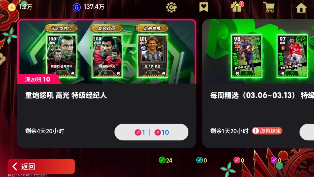 1.2w金币,内含毕业伊涅斯塔