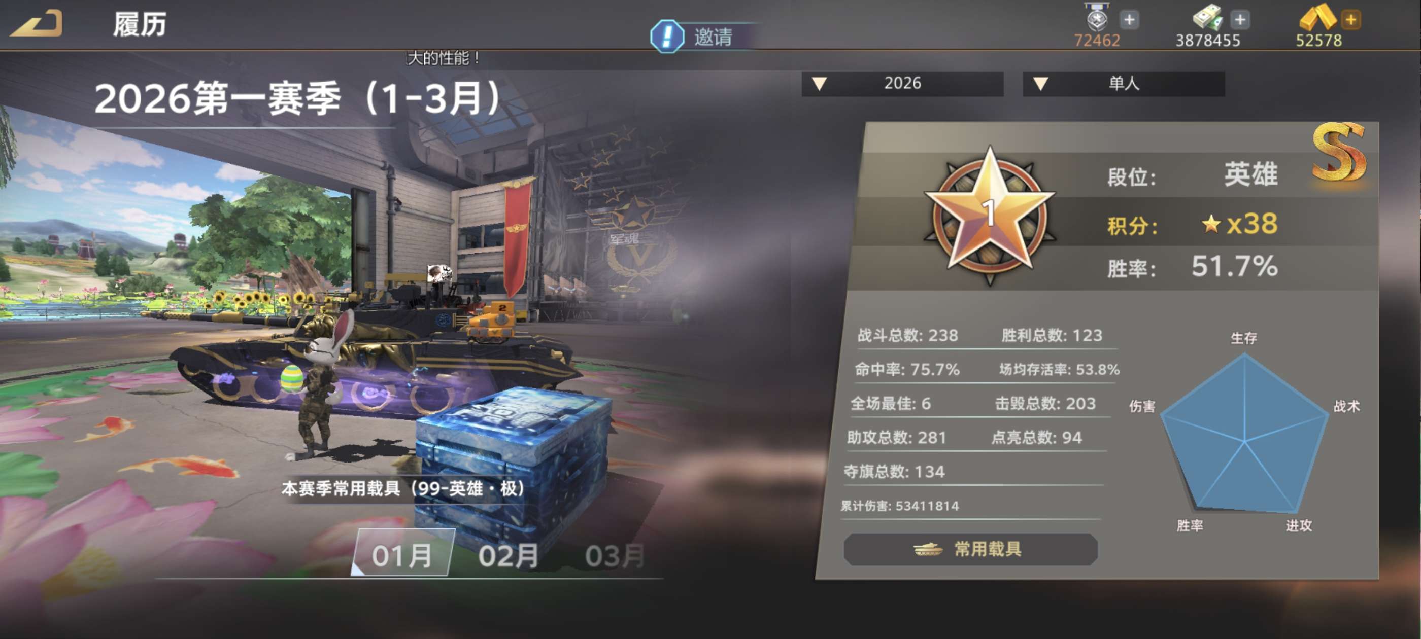 99英雄极VT5S全加深涂装月月双英雄,指挥室12红,全珍贵军魂,谋略30溢出,邦尼兔,武器装甲全红
