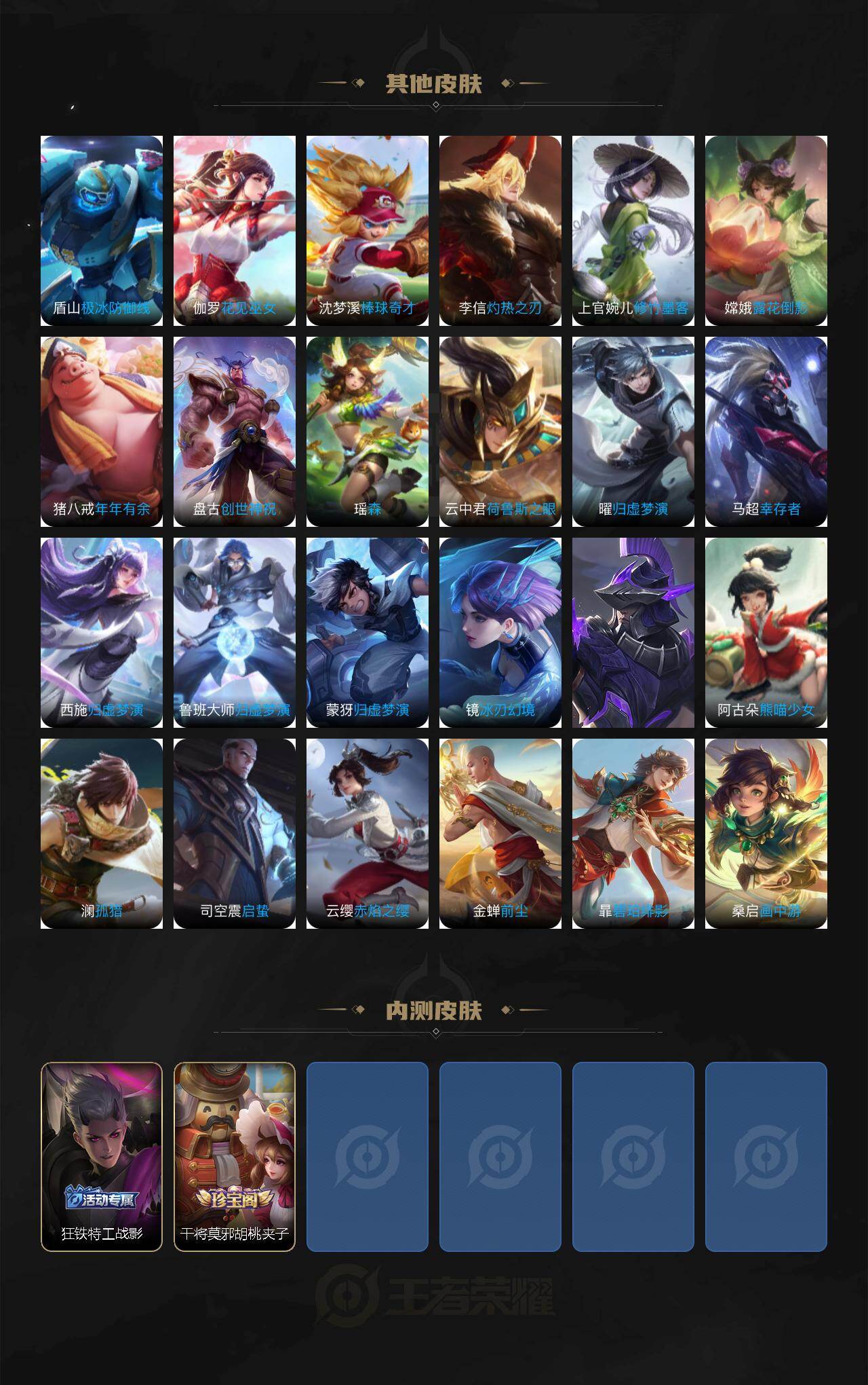 【英雄全皮】:孙权全皮,敖隐全皮,空空儿全皮,影全皮,海诺全皮