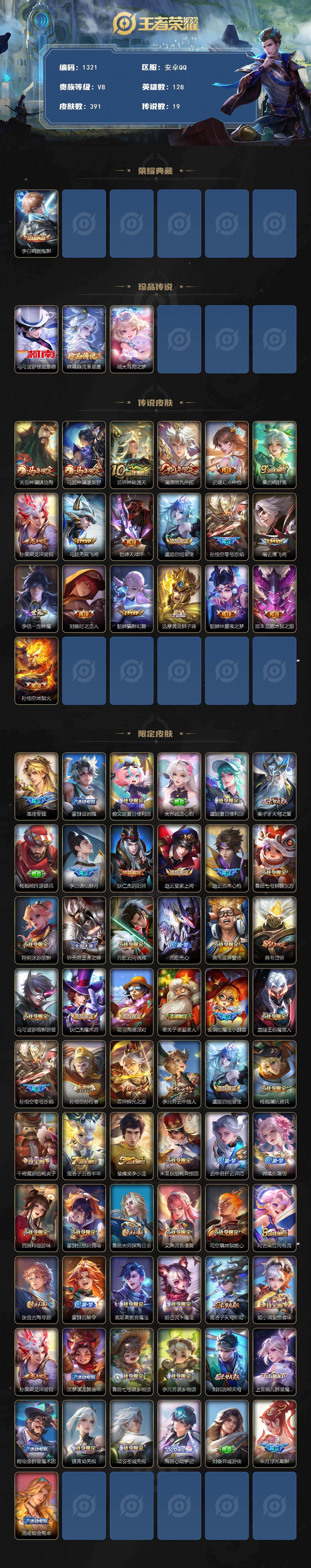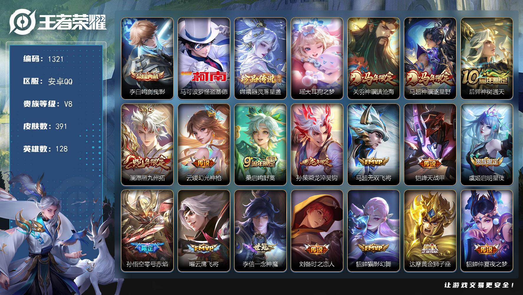 2362824 限定皮肤多 21个按键 绝版圣诞老人 3珍品 安卓Q-V8-最强王者段位-128英雄-391皮肤-1典藏皮肤-3珍品传说-19传说-114史诗