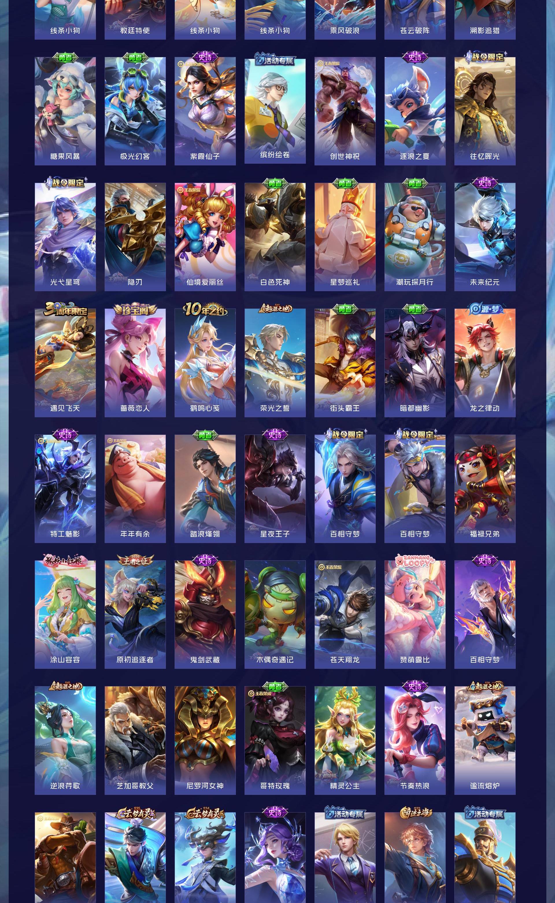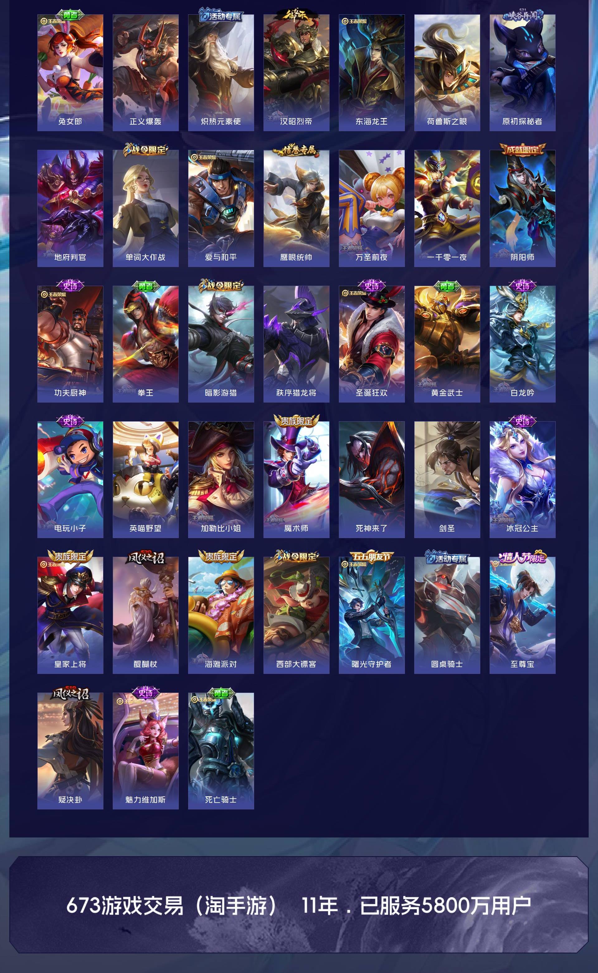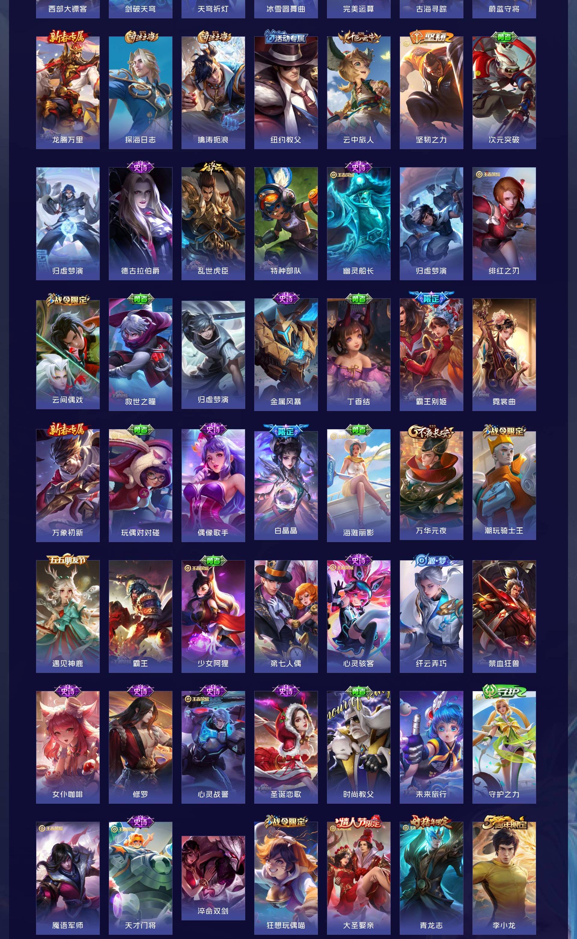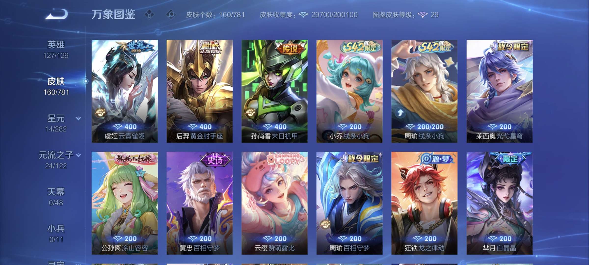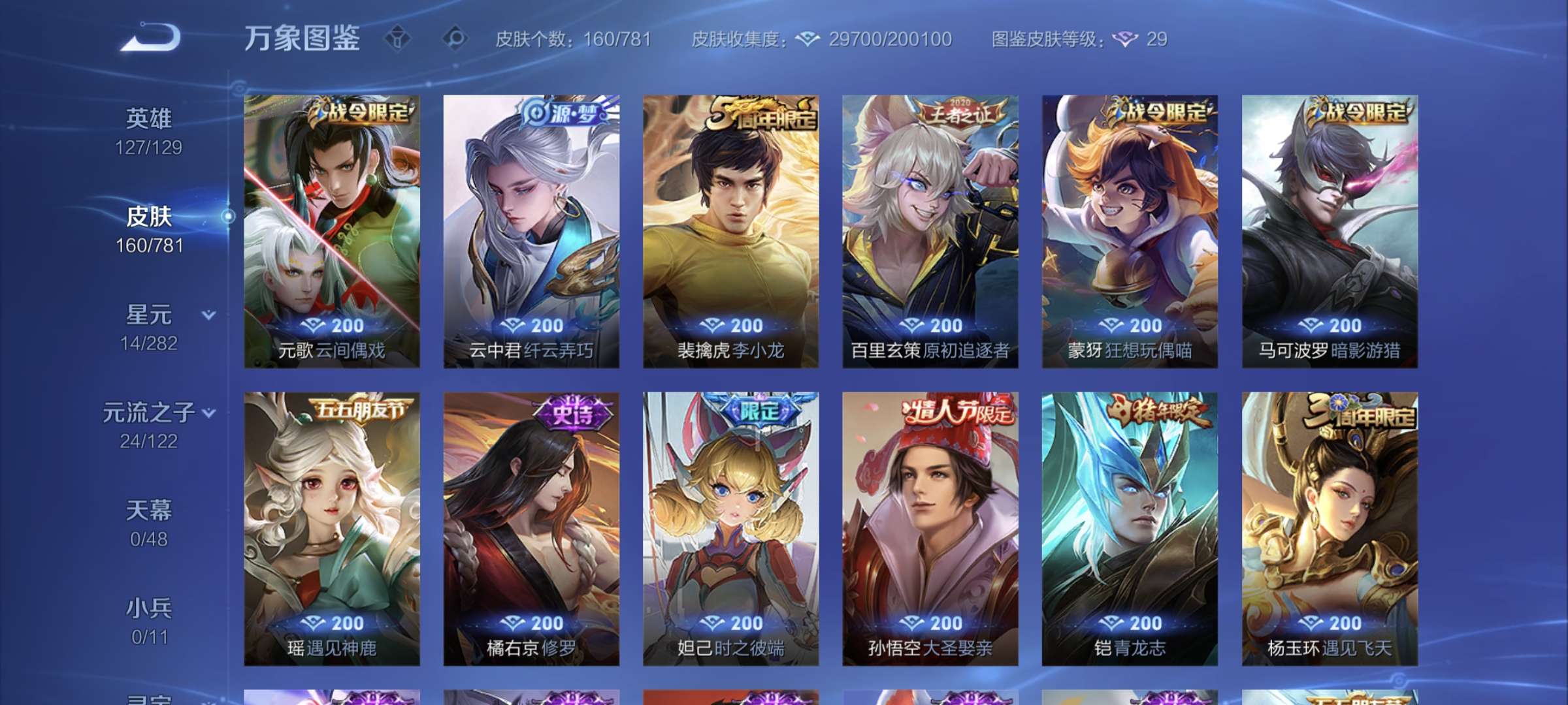 V8 皮肤161 英雄127 尊贵铂金 荣耀典藏4 传说10 其他皮肤150