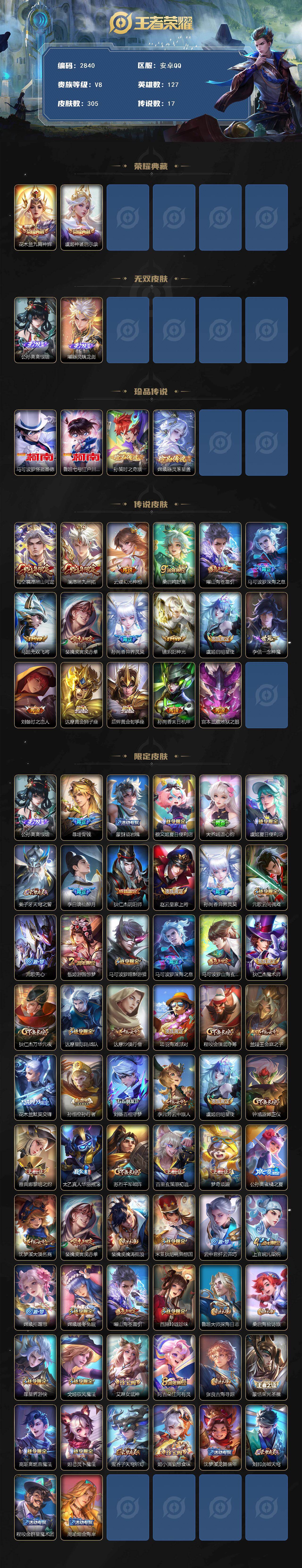 305皮2典藏17传说2无双4珍品传说V8