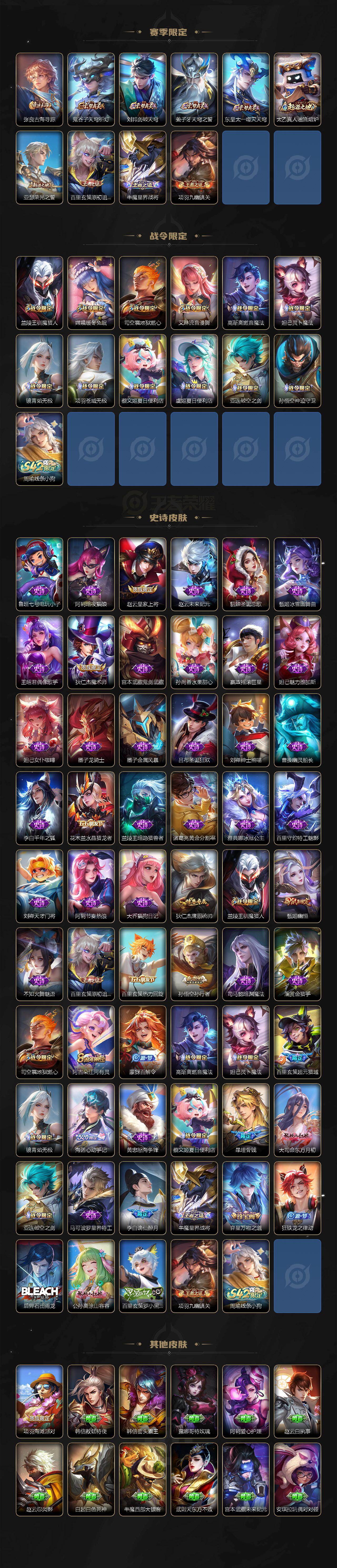【英雄全皮】:李白全皮,司马懿全皮,百里玄策全皮,大司命全皮,空空儿全皮,海诺全皮