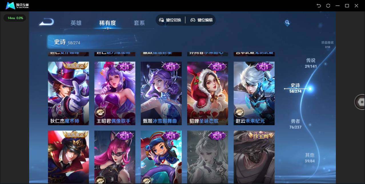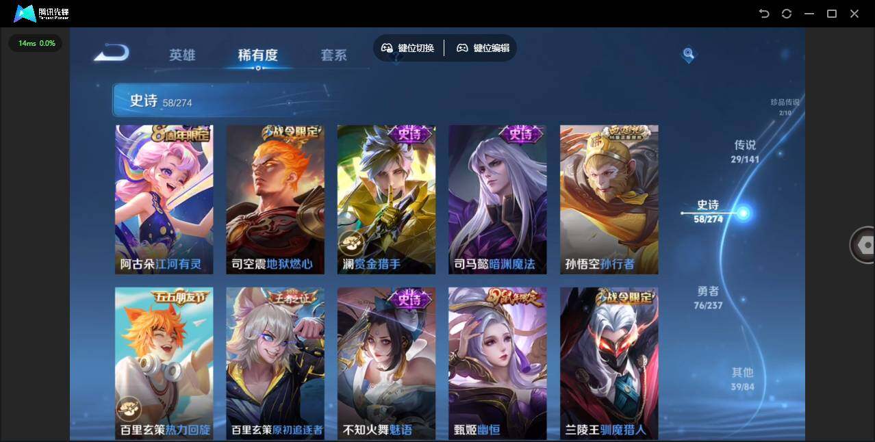 苹果Q-V9-至尊星耀IV段位-112英雄-208皮肤-2典藏皮肤-2无双-2珍品传说-29传说-57史诗