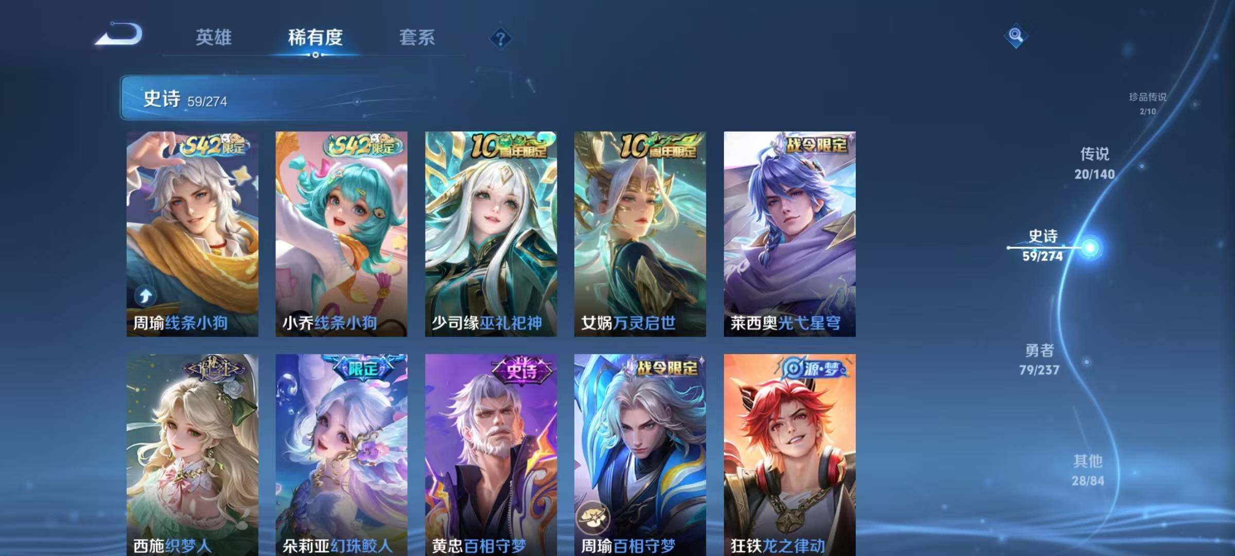 安卓Q-V8-至尊星耀V段位-115英雄-191皮肤-1典藏皮肤-2无双-2珍品传说-20传说-58史诗
