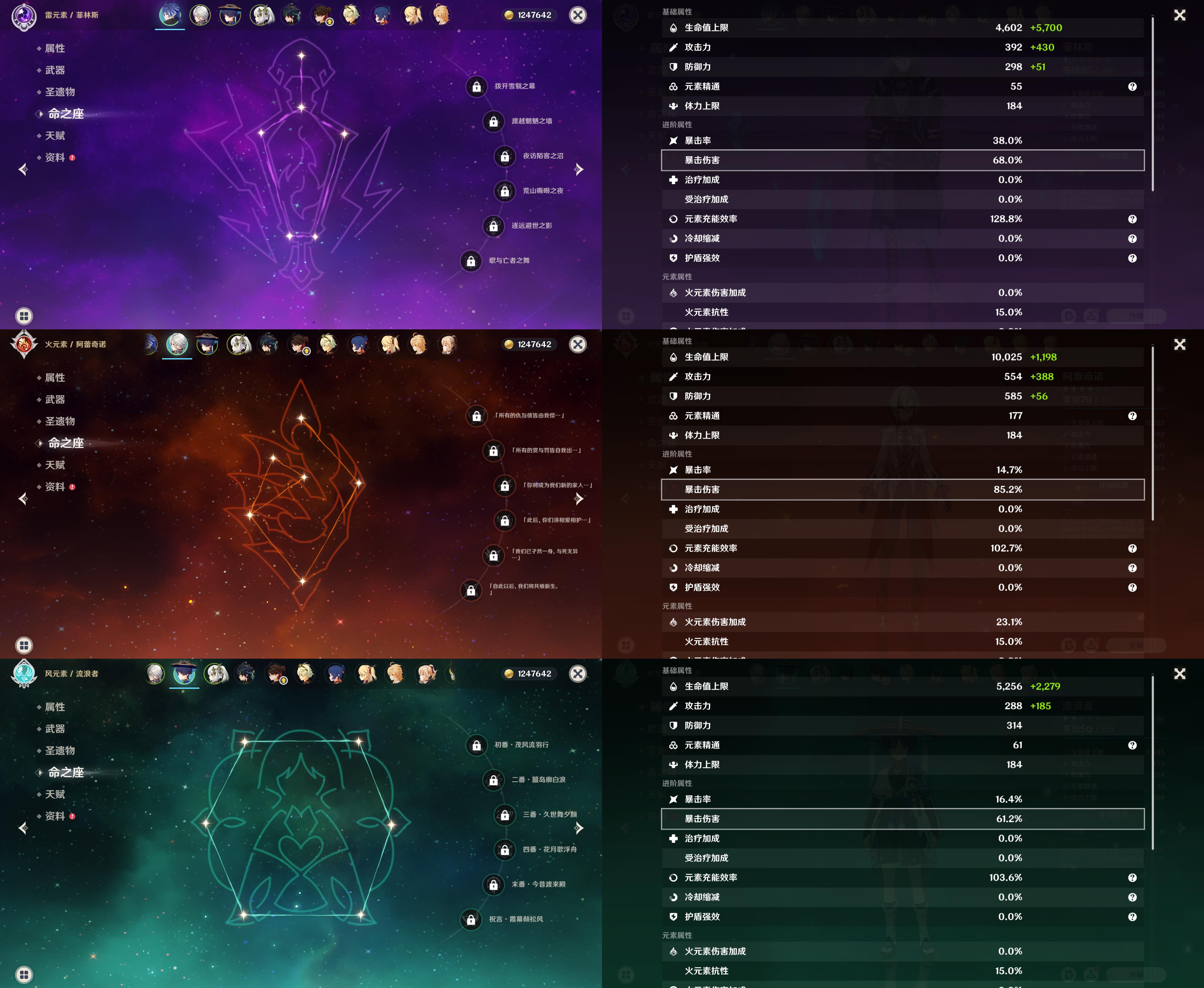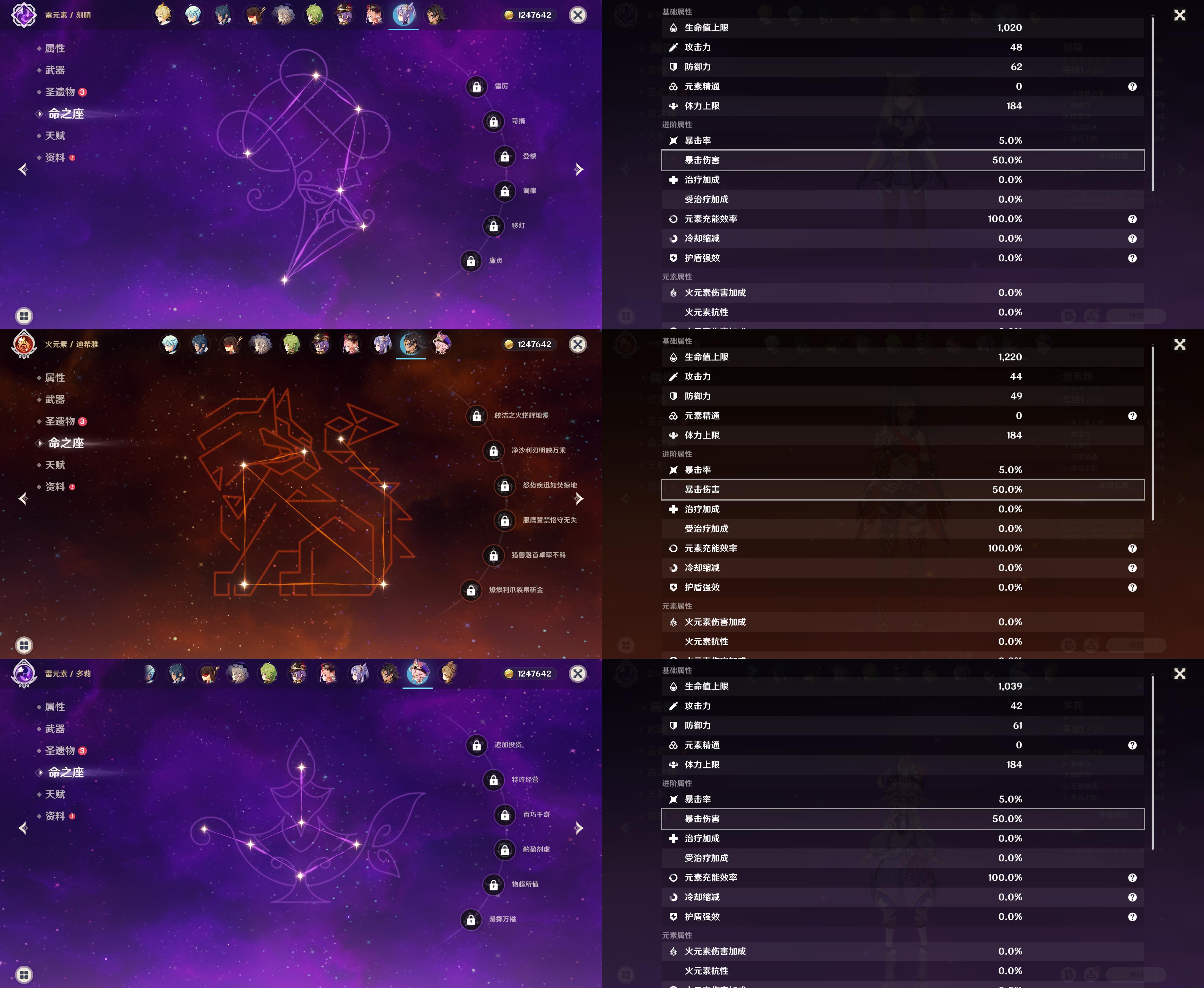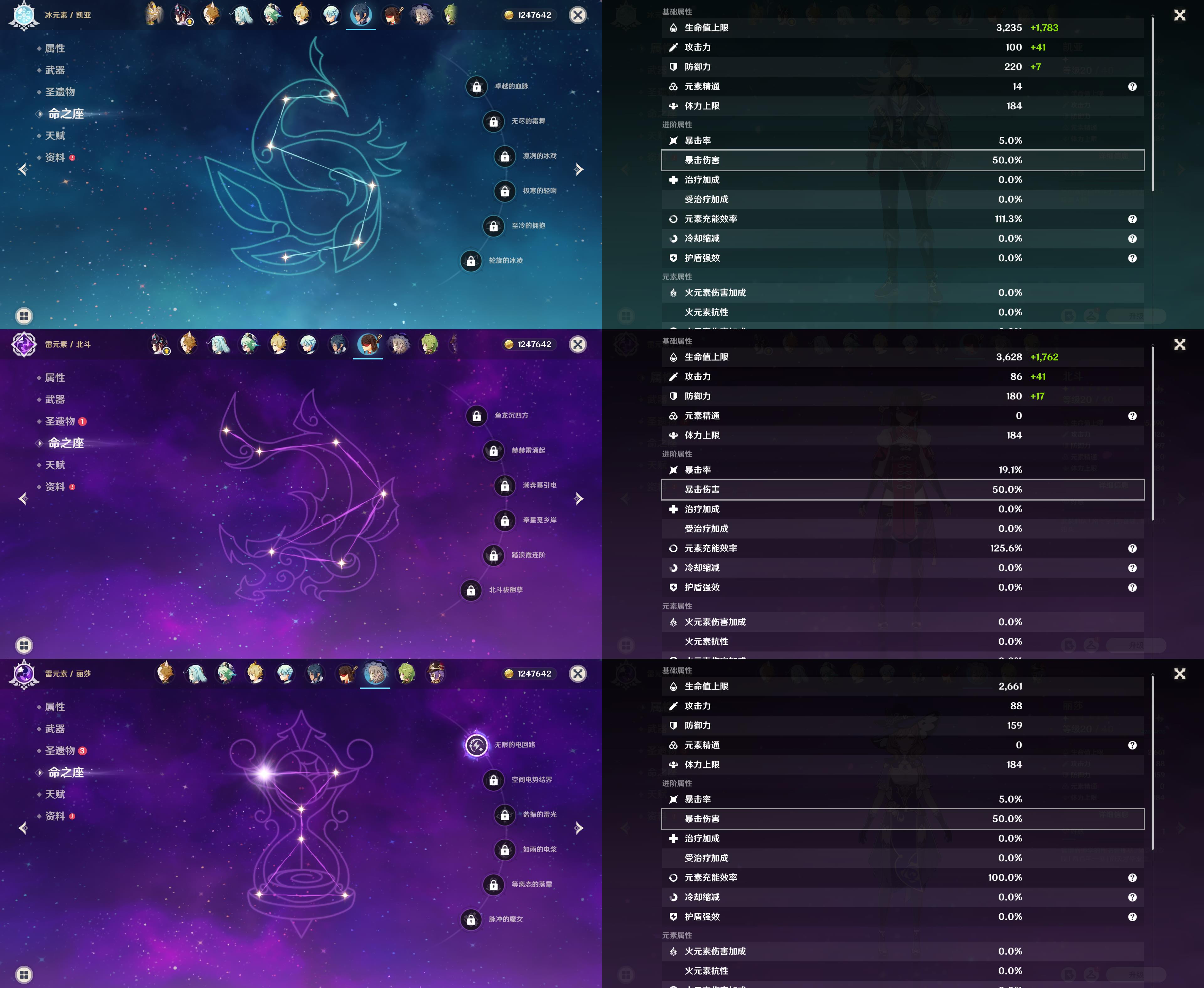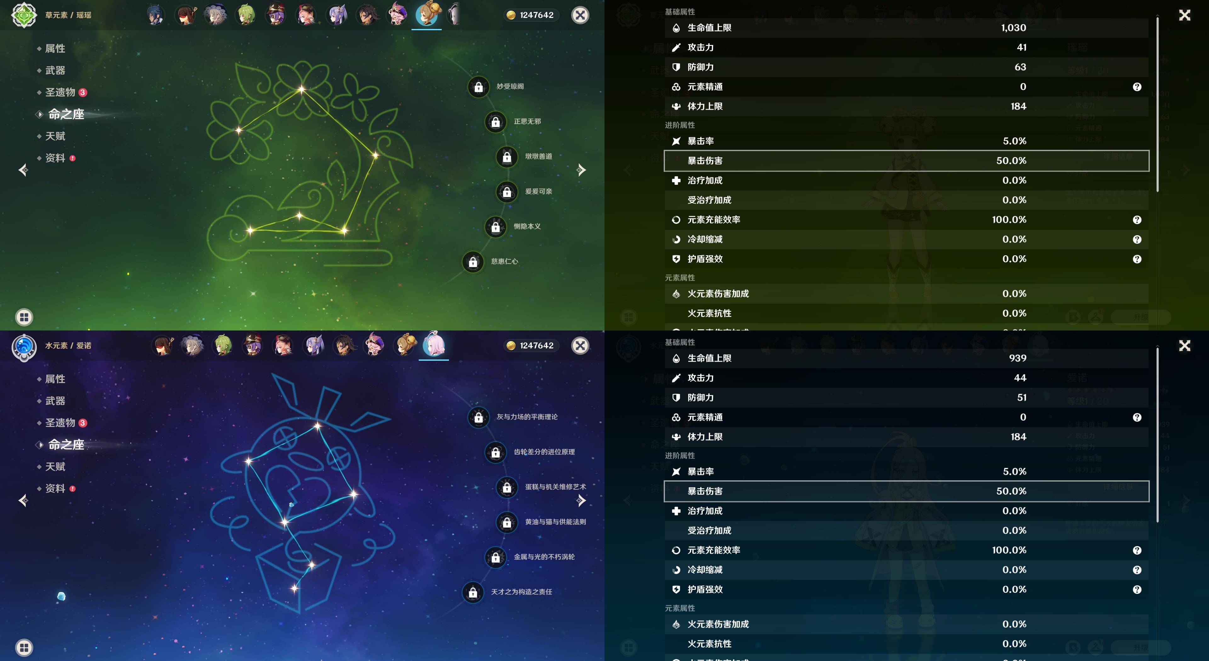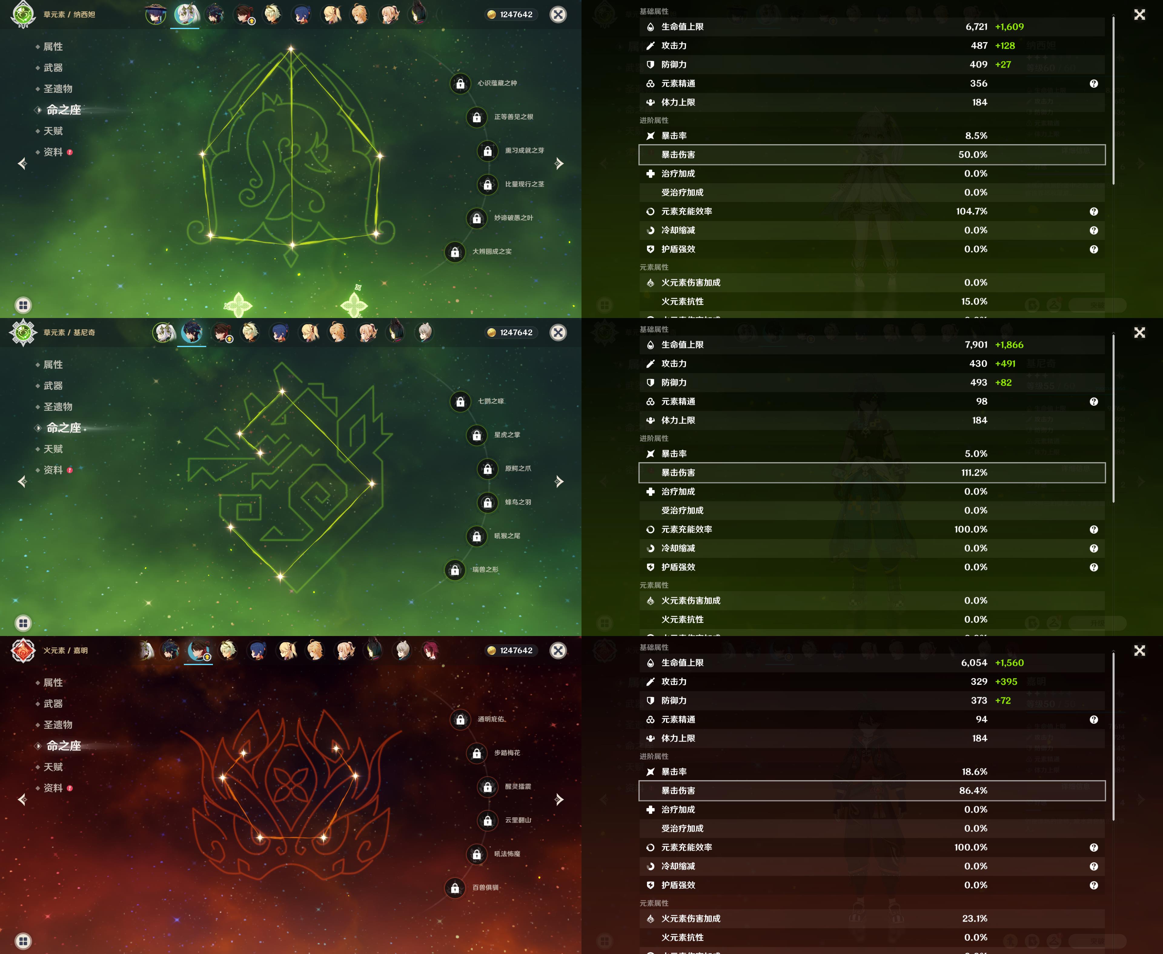 44级/10黄/女主/9个五星角色/0命菲林斯/阿蕾奇诺/流浪者/纳西妲/基尼奇/1命琴/提纳里/刻晴/迪希雅