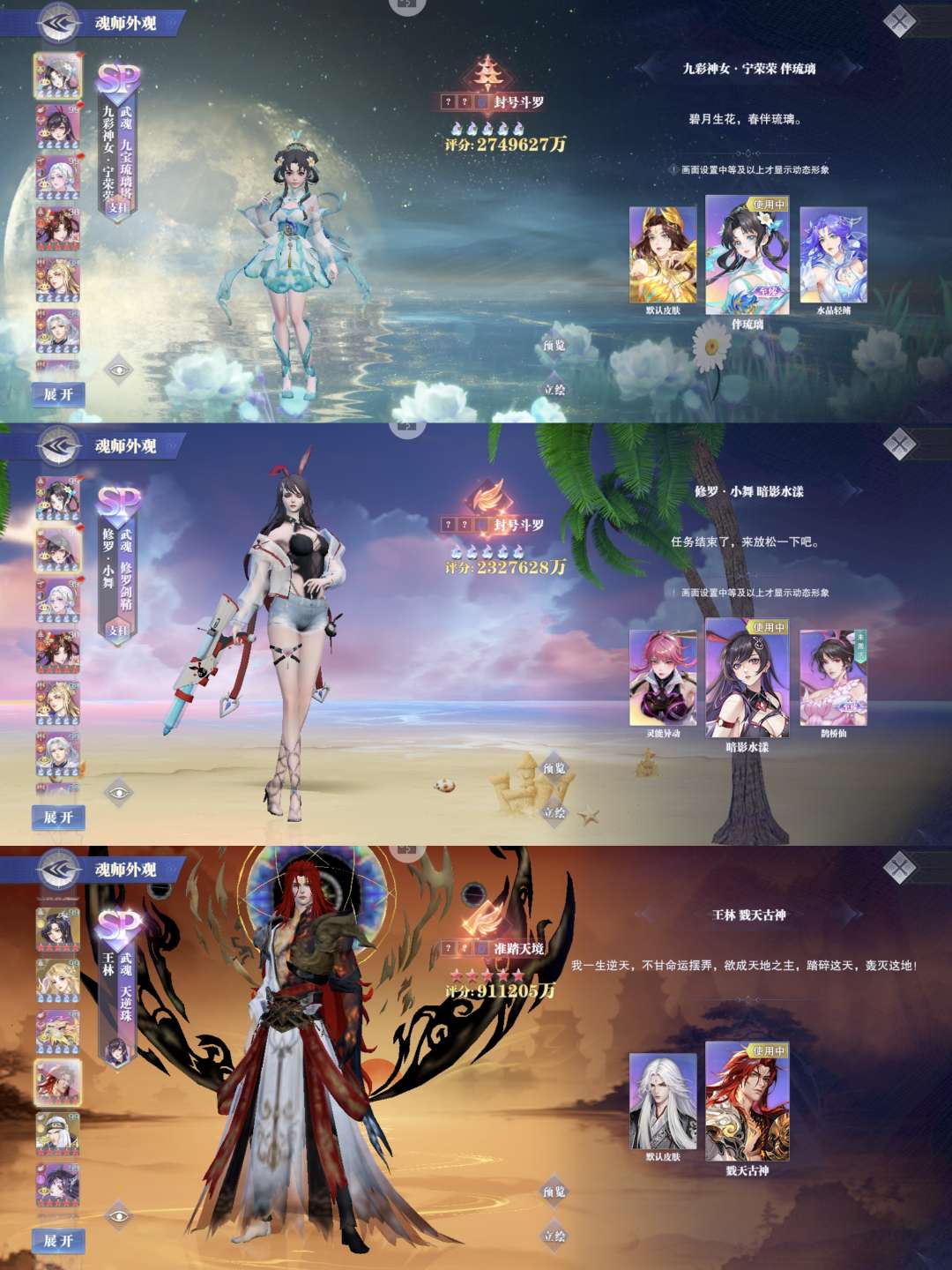 2899亿战力。御统供奉。十方蓉蓉25sp。至臻皮萝莉蓉蓉。泳装小舞。红皮王林。6魂铠核心。3专