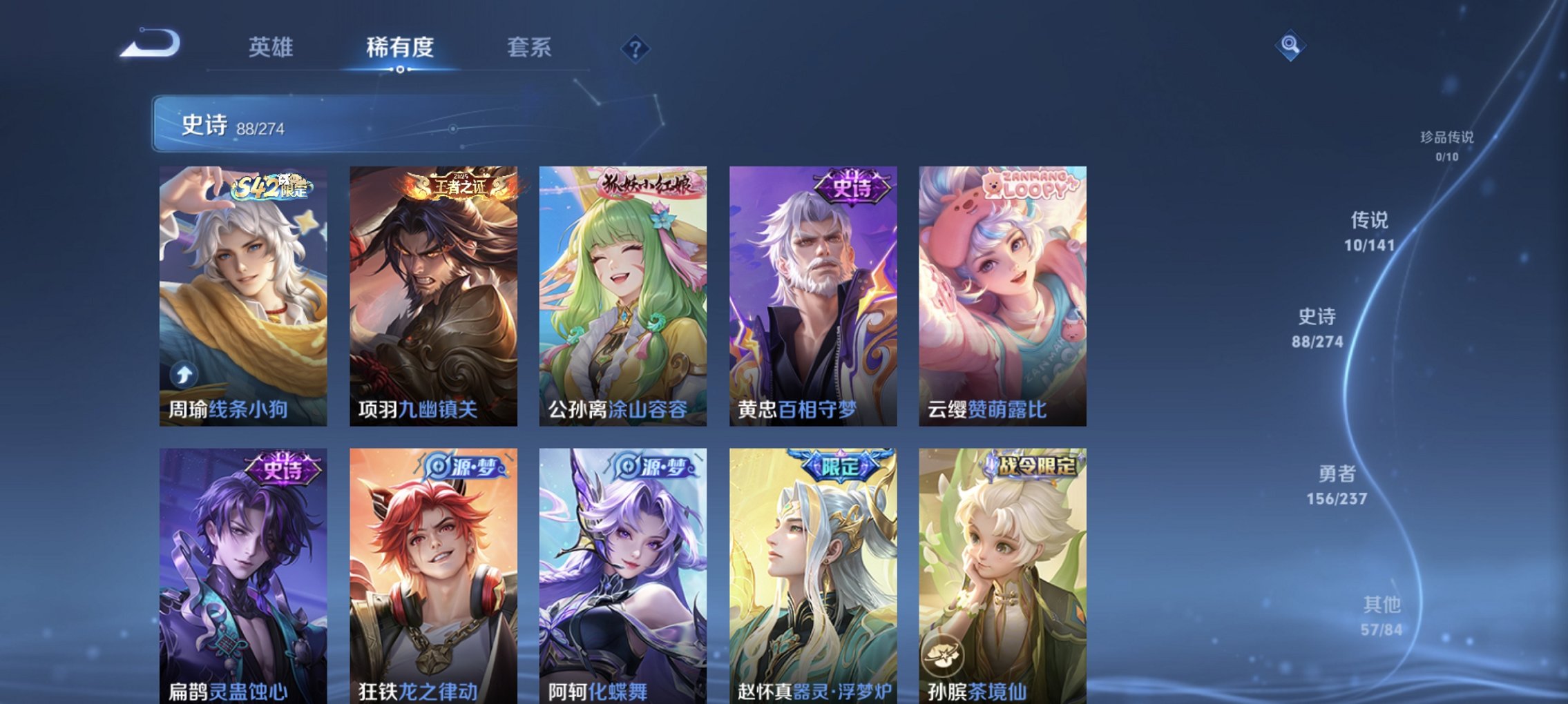 312皮肤1水晶10传说1星元逐星野一念神魔
