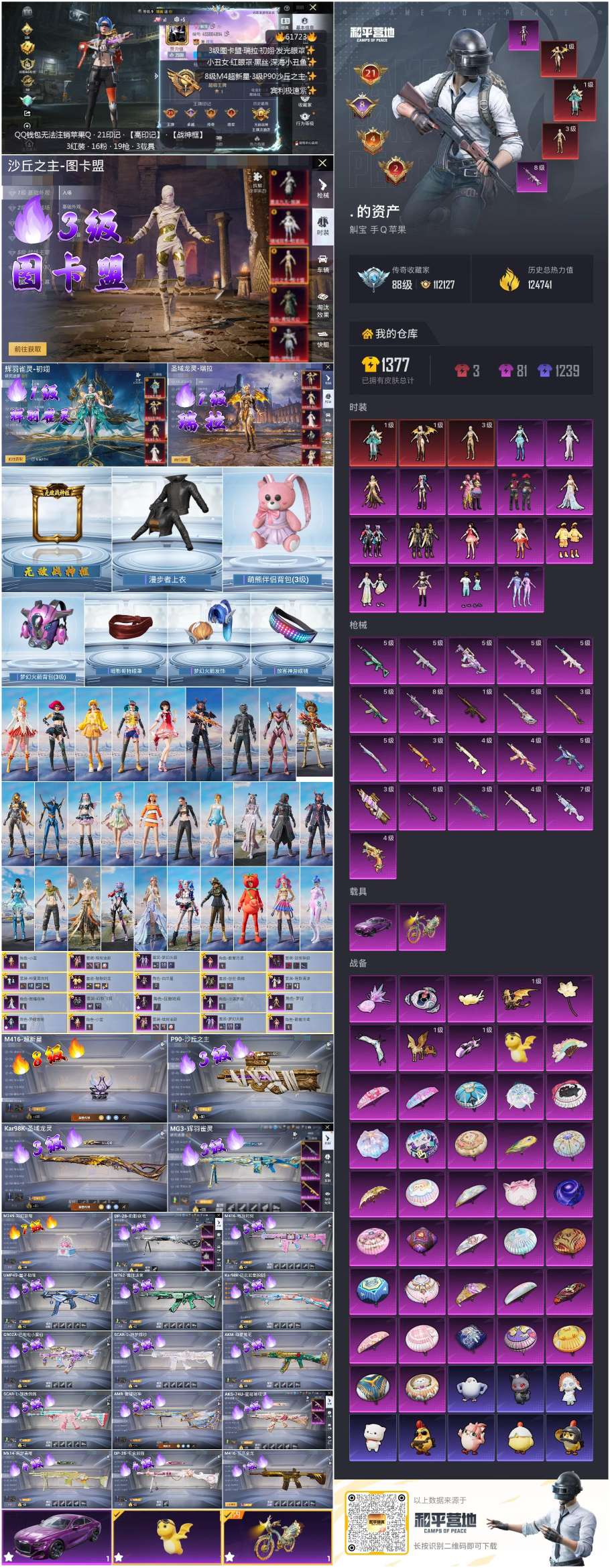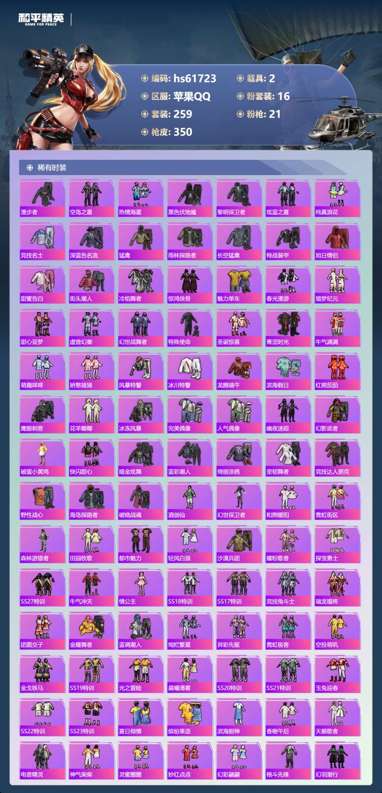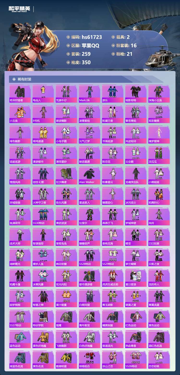hs61723 苹果手Q-21王牌印记-有战神框-3红装-16粉装-21特效枪-2载具-124921