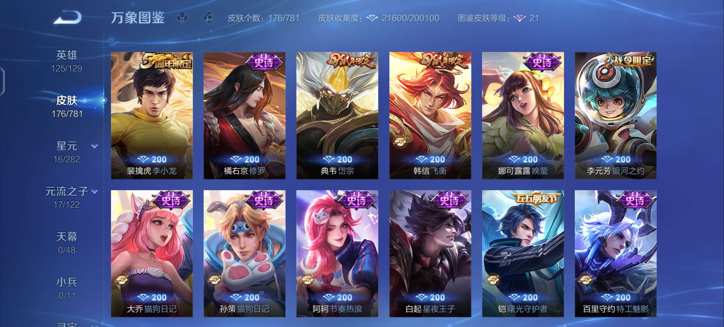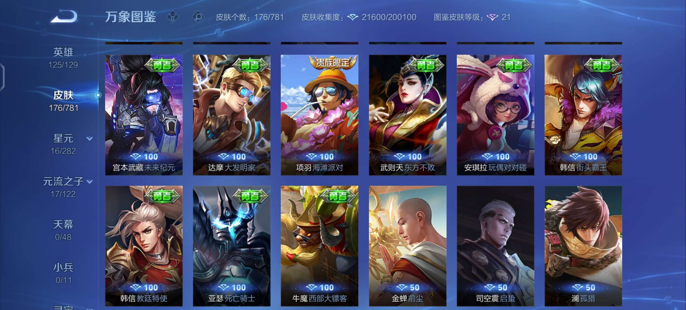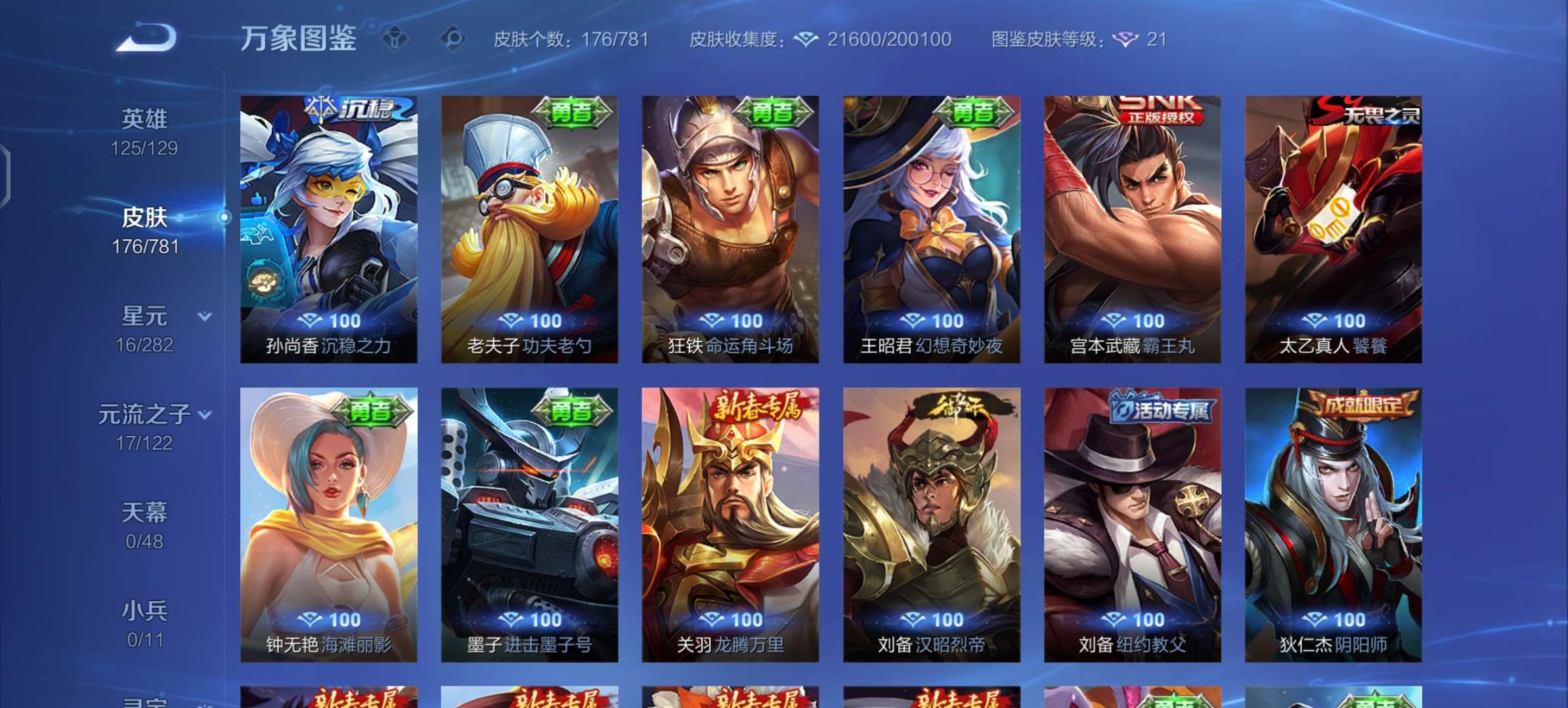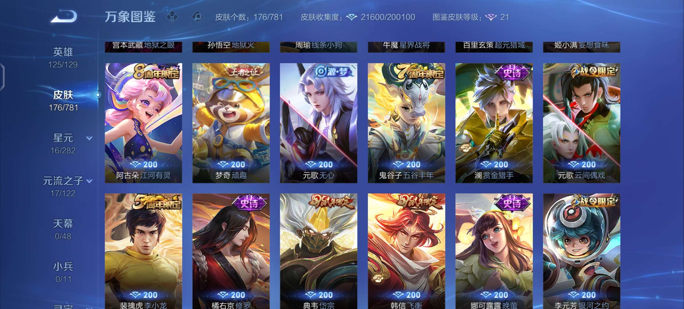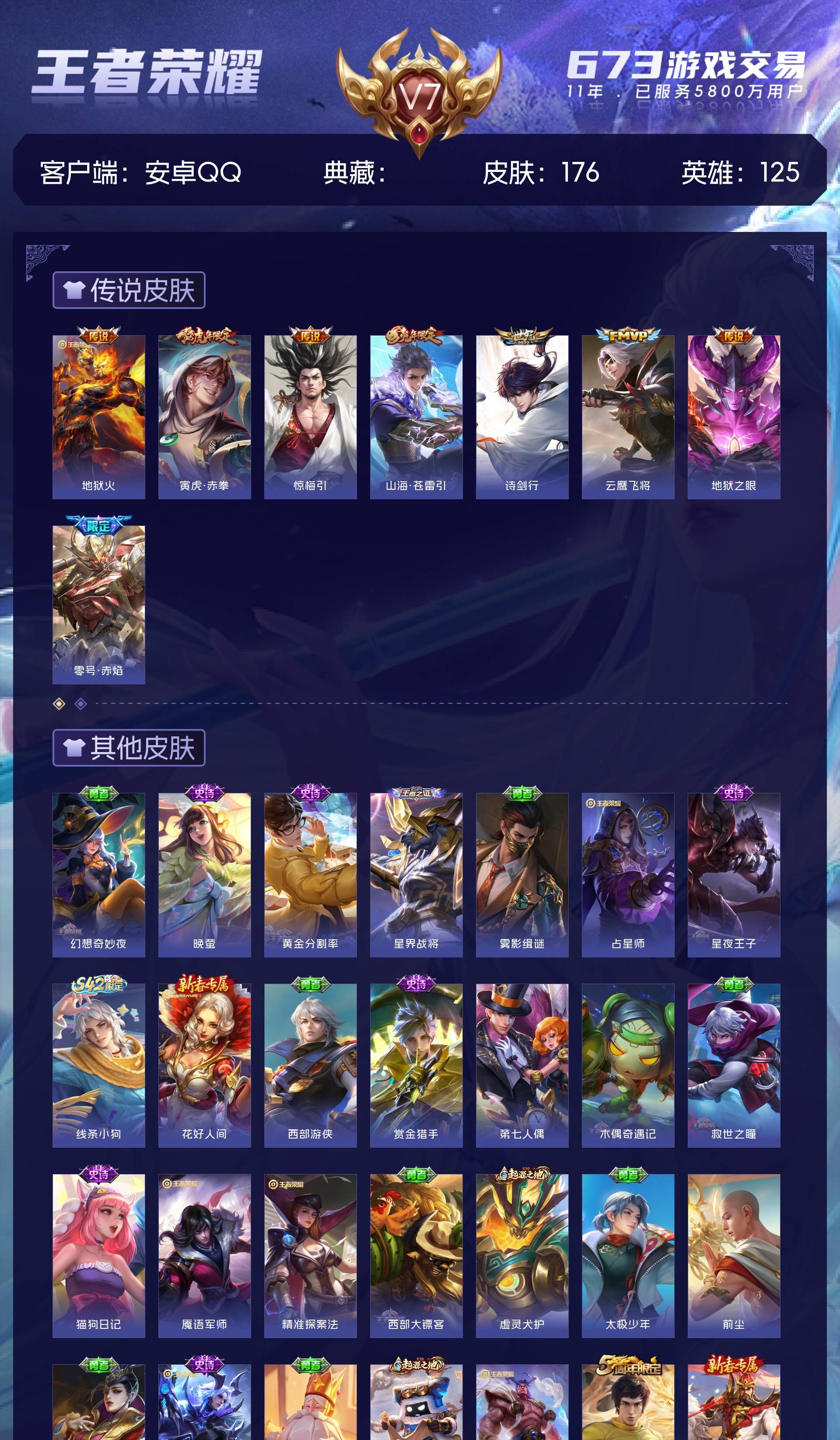 V7 皮肤176 英雄125 最强王者 星传说2 传说8 其他皮肤173