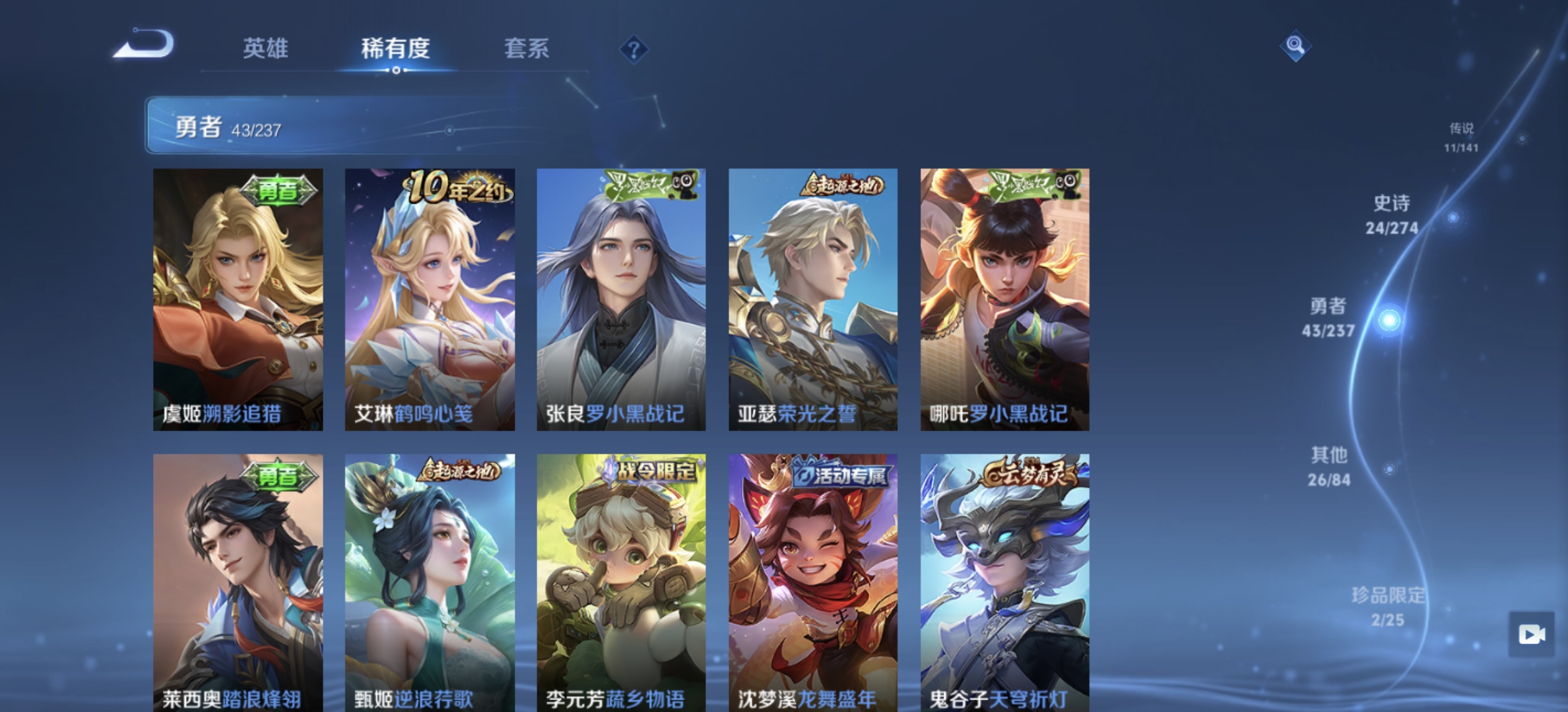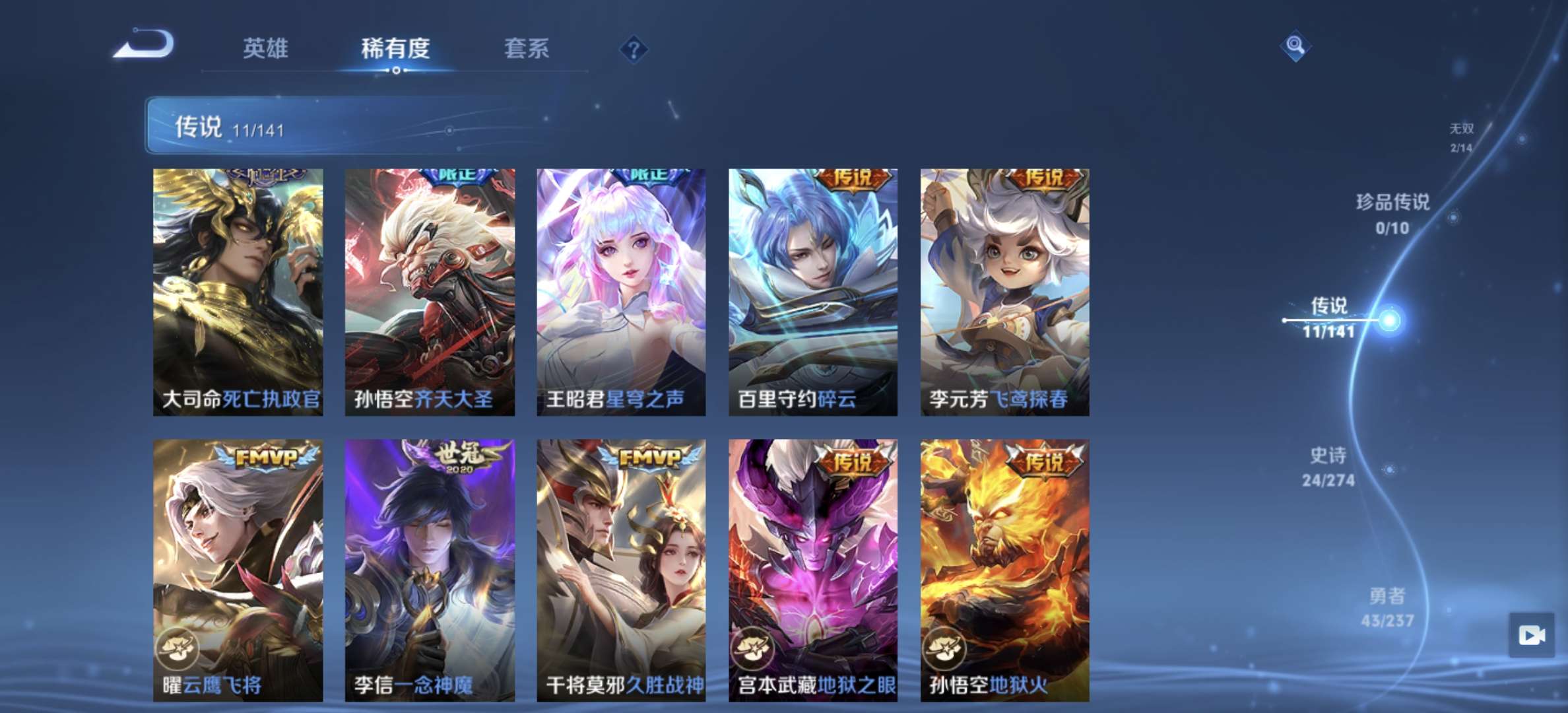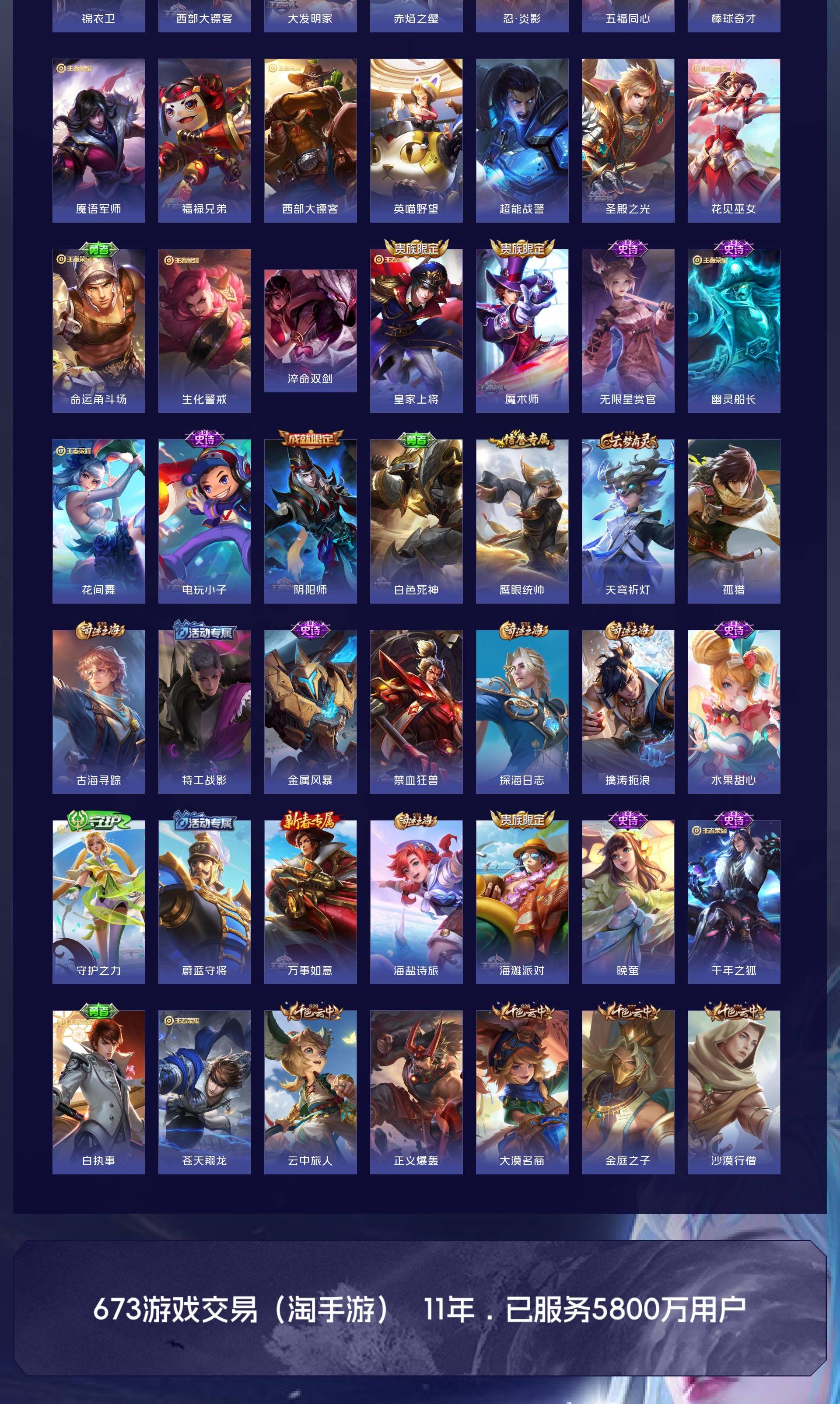 V7 皮肤107 英雄99 无双王者 荣耀典藏1 无双皮肤2 星传说1 传说10 其他皮肤98