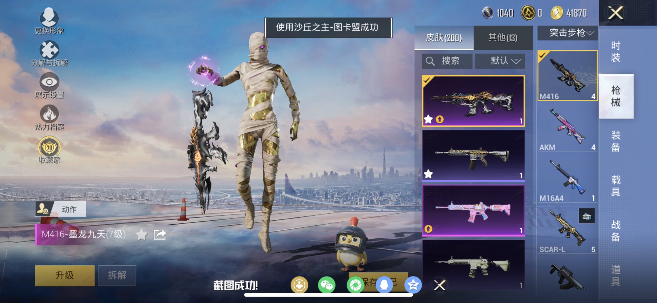 4级图卡盟战神框螳螂7级M4墨龙九天10粉装6特效枪1载具素材号