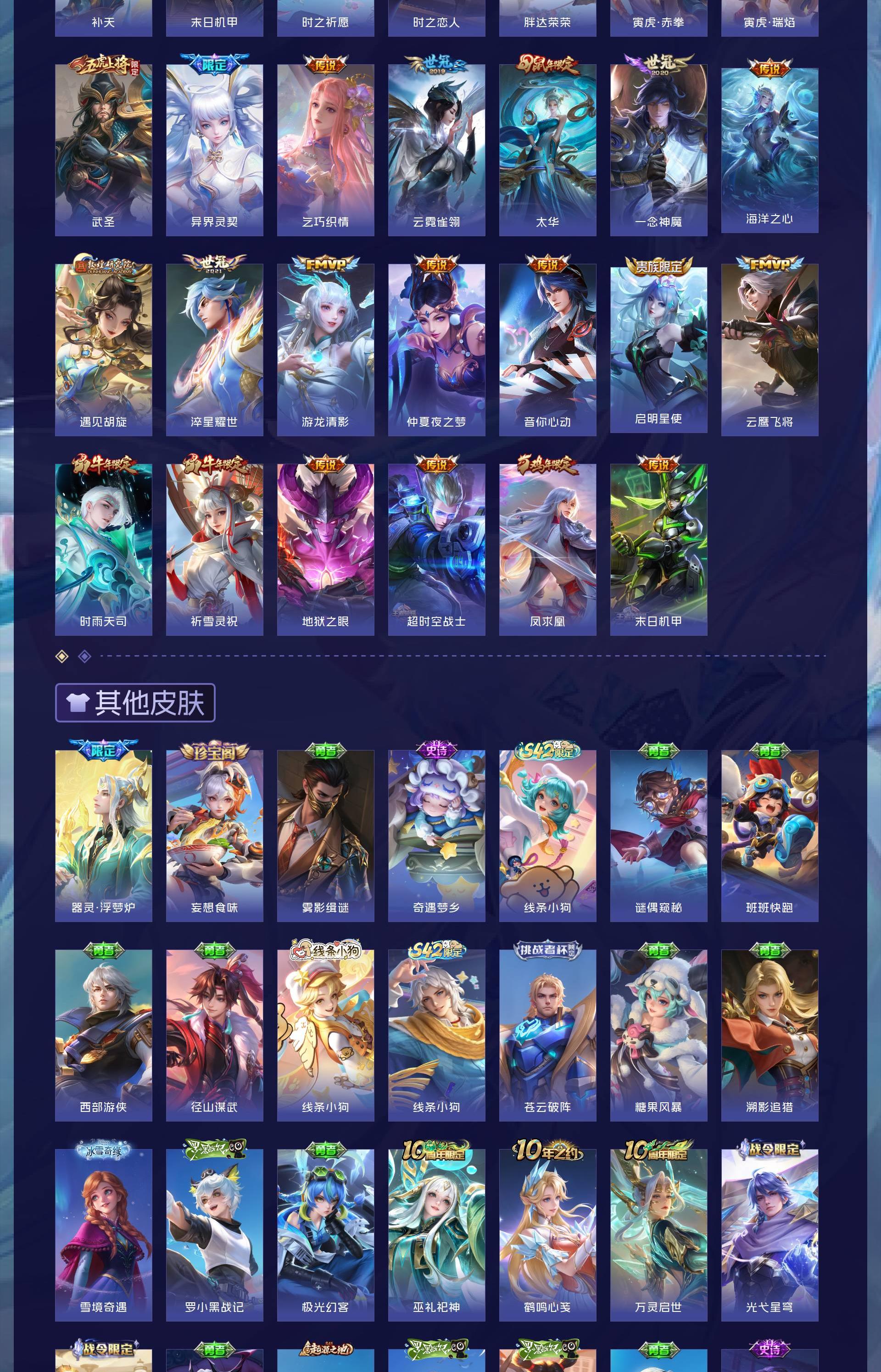 V10 皮肤452 英雄128 至圣王者 荣耀典藏7 传说49 其他皮肤397