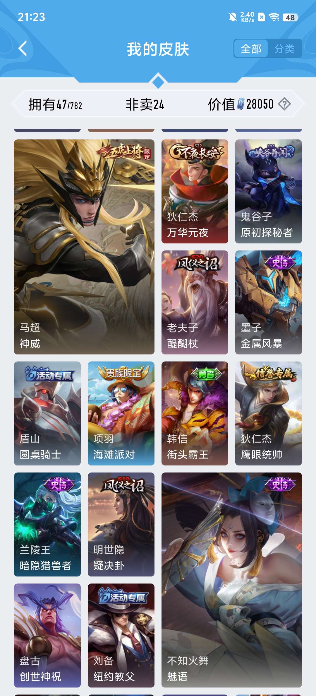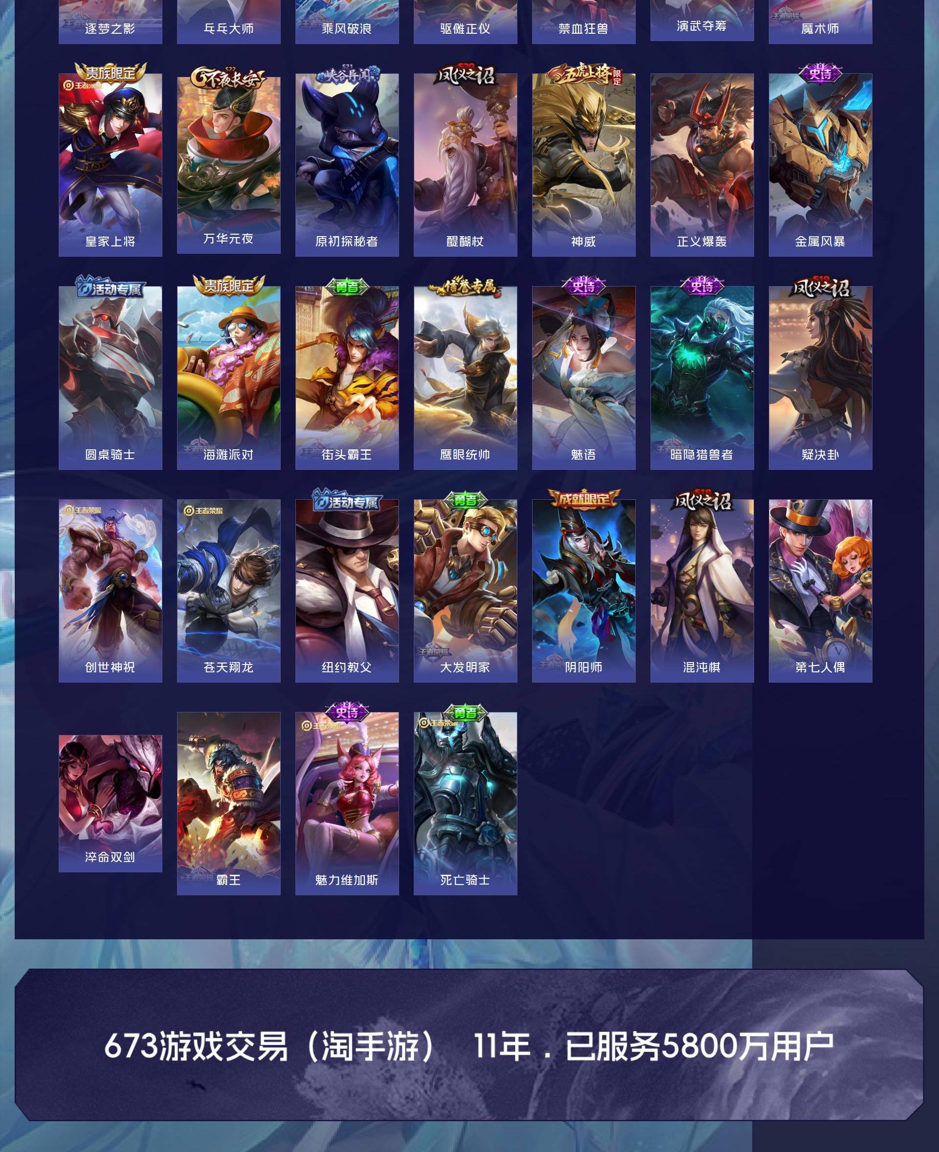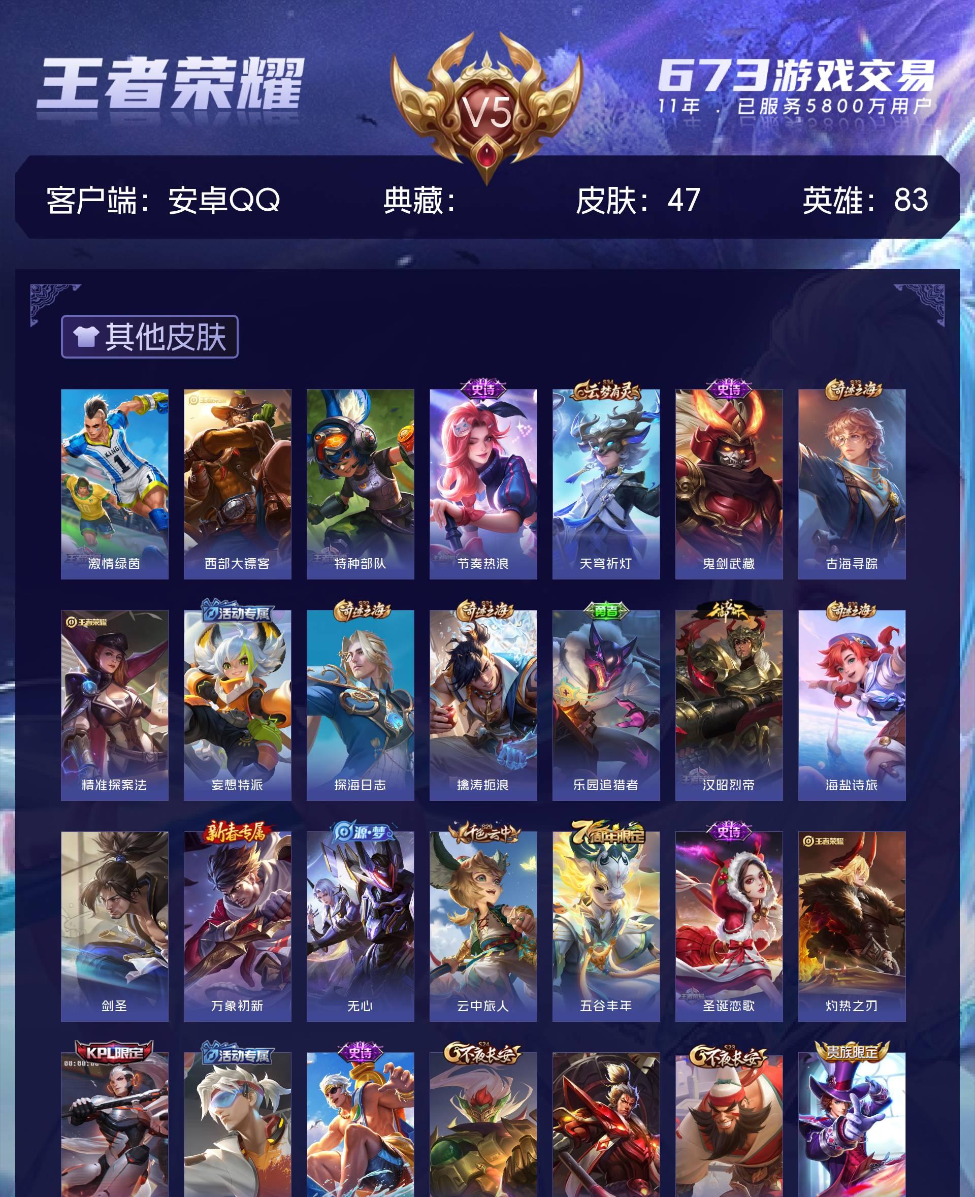 V5 皮肤47 英雄83 荣耀黄金 其他皮肤53