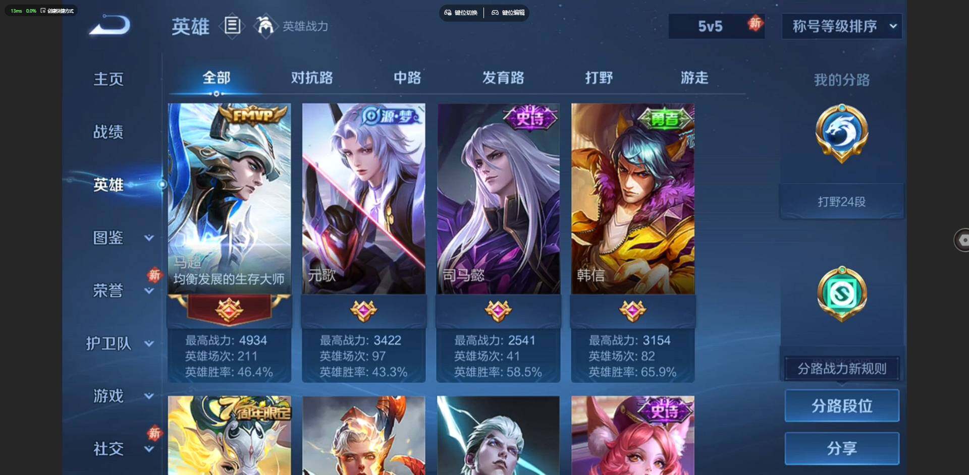 实名: 可修改 贵族等级: V5 英雄数: 122 皮肤数: 99 星传说: