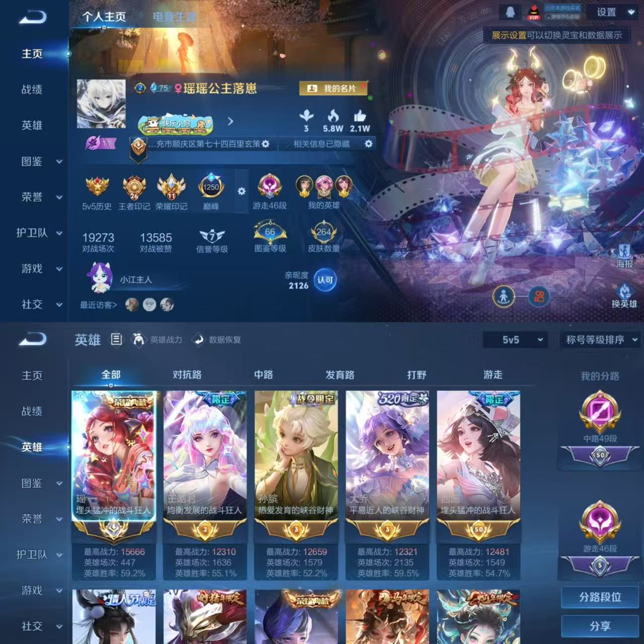 (超级唯美纯女号!)(大国瑶!)大国标国服瑶妹高战力高胜率 永久小魔方 主页好看 26个王者印记 6个省标 王昭君万战 孙膑万战 大乔万战 西施万战 背包道具东西超级多!瑶妹比心告白动作 热门皮肤:拾光映像 幻阙歌 杀手不太冷 天鹅之梦 时之愿境 游龙堇华 未来机甲 幻海之心 金色仲夏夜 神骥聚万邦 鸣野蒿 愿照众生和 祈雪灵祝 太华 白虎志 凤求凰 时之祈愿 挚爱花嫁 启明星使 乞巧织情 仲