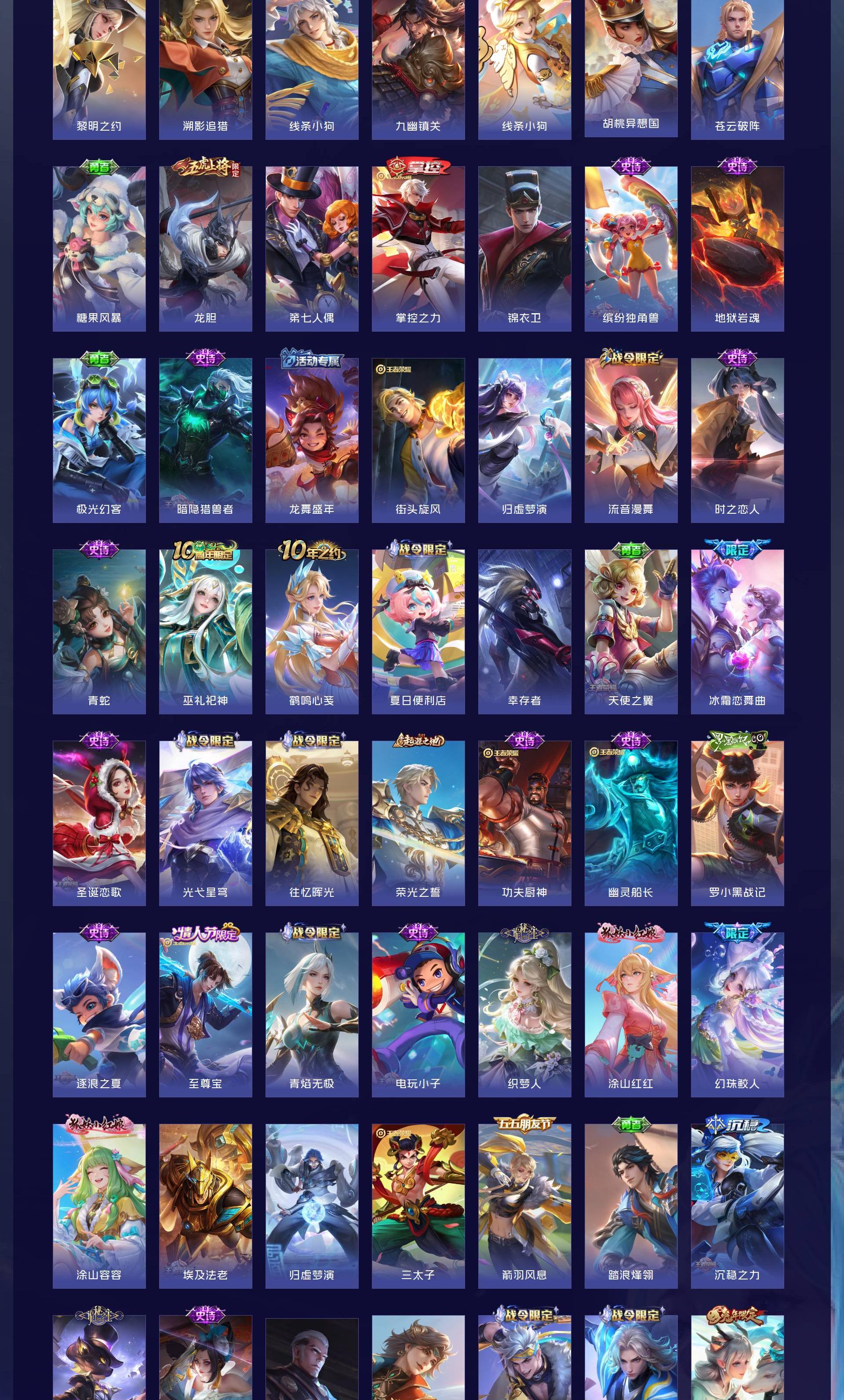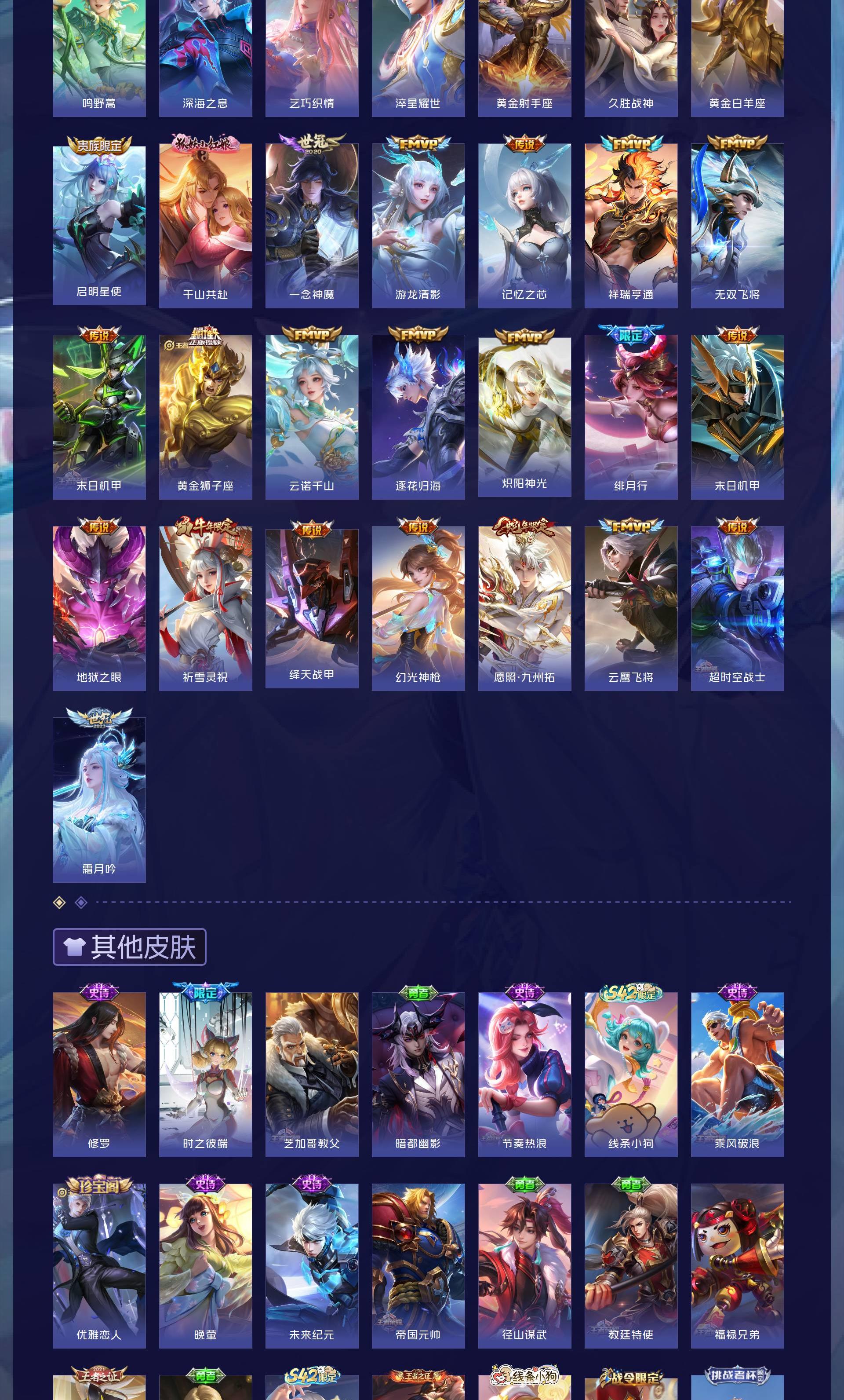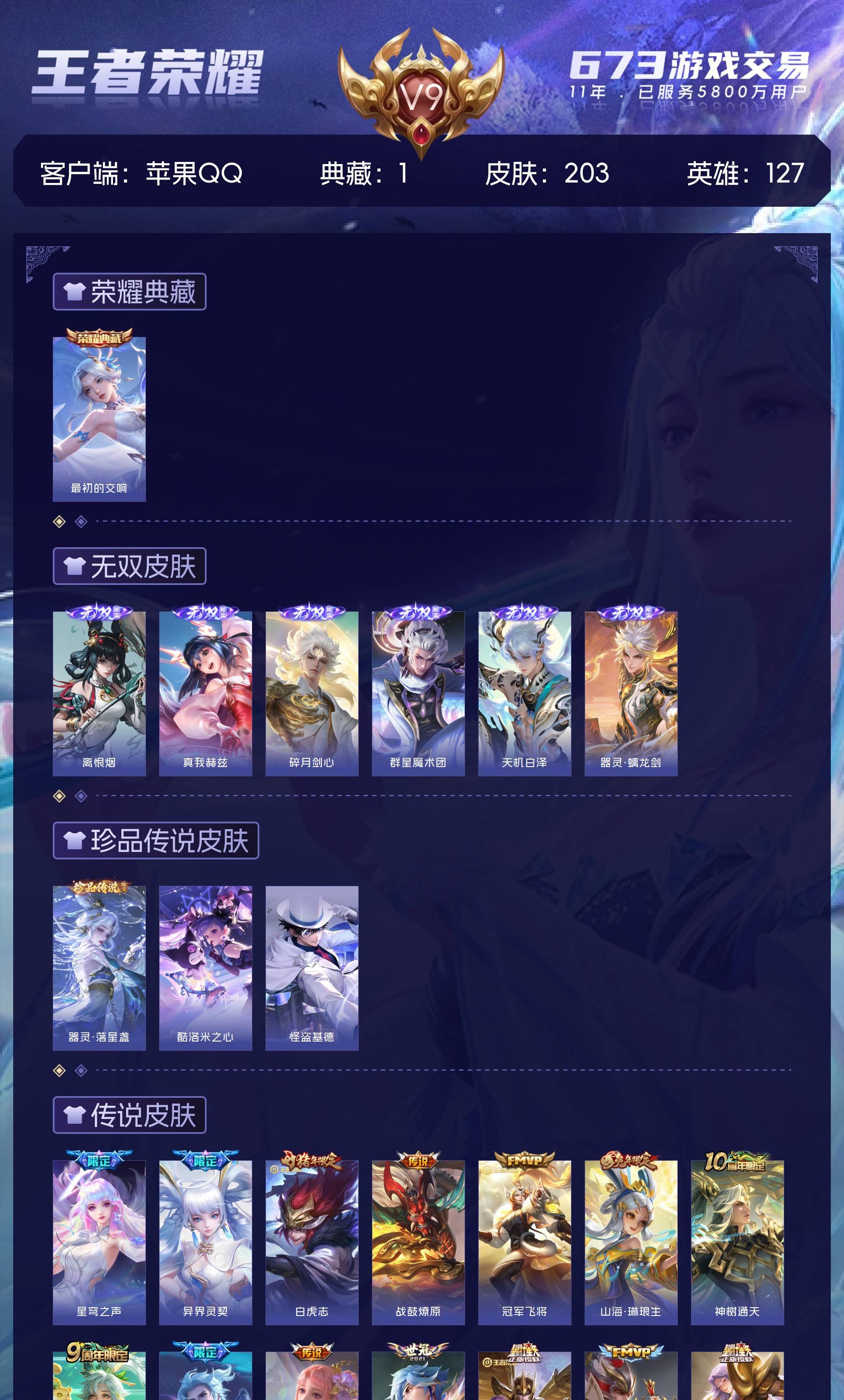 V9 皮肤203 英雄127 至圣王者 荣耀典藏1 无双皮肤6 珍品传说3 传说36 其他皮肤158