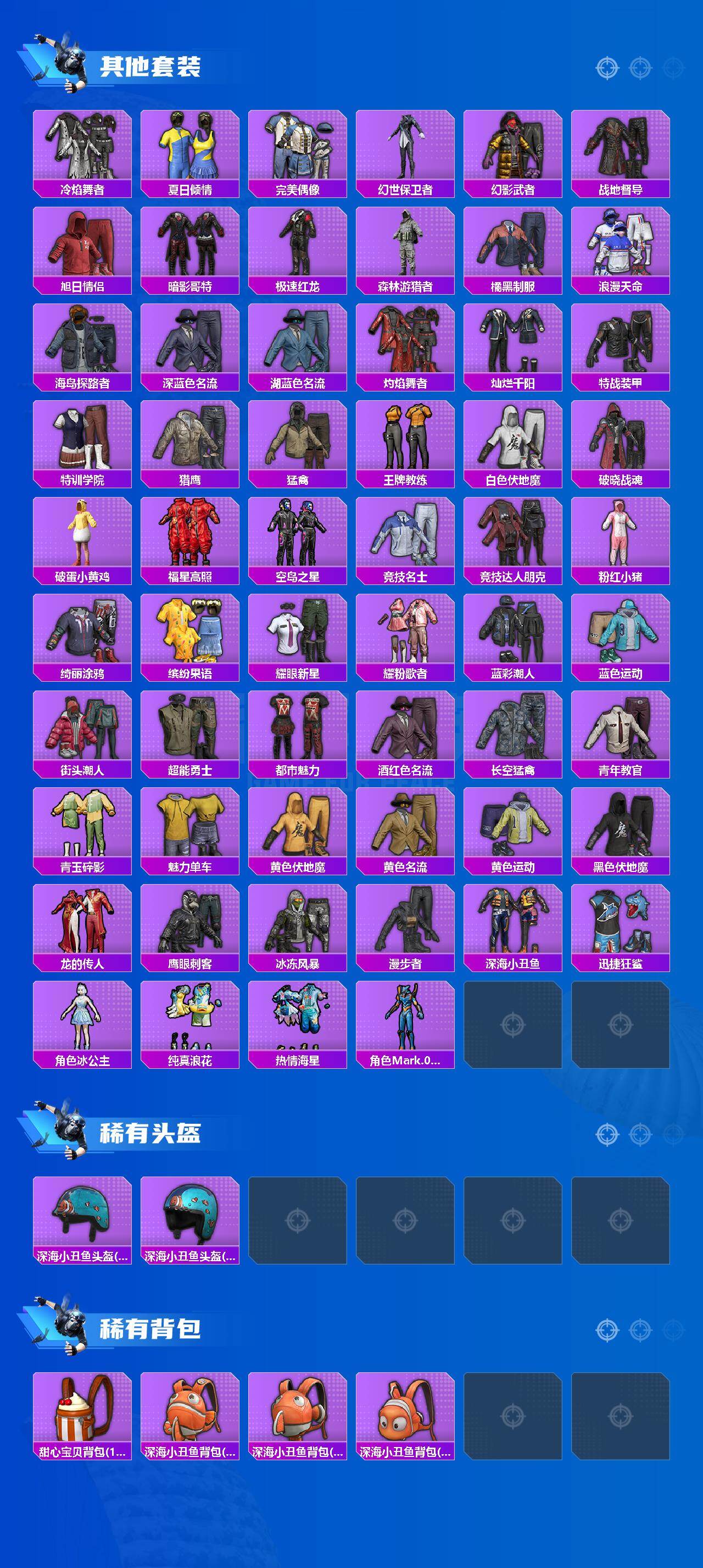 【热门品类】:套装-浪漫天命,套装-都市猎人,套装-深海小丑鱼,套装-小丑鱼,套装-暗影哥特,套装-粉红小猪,角色-Mark.06