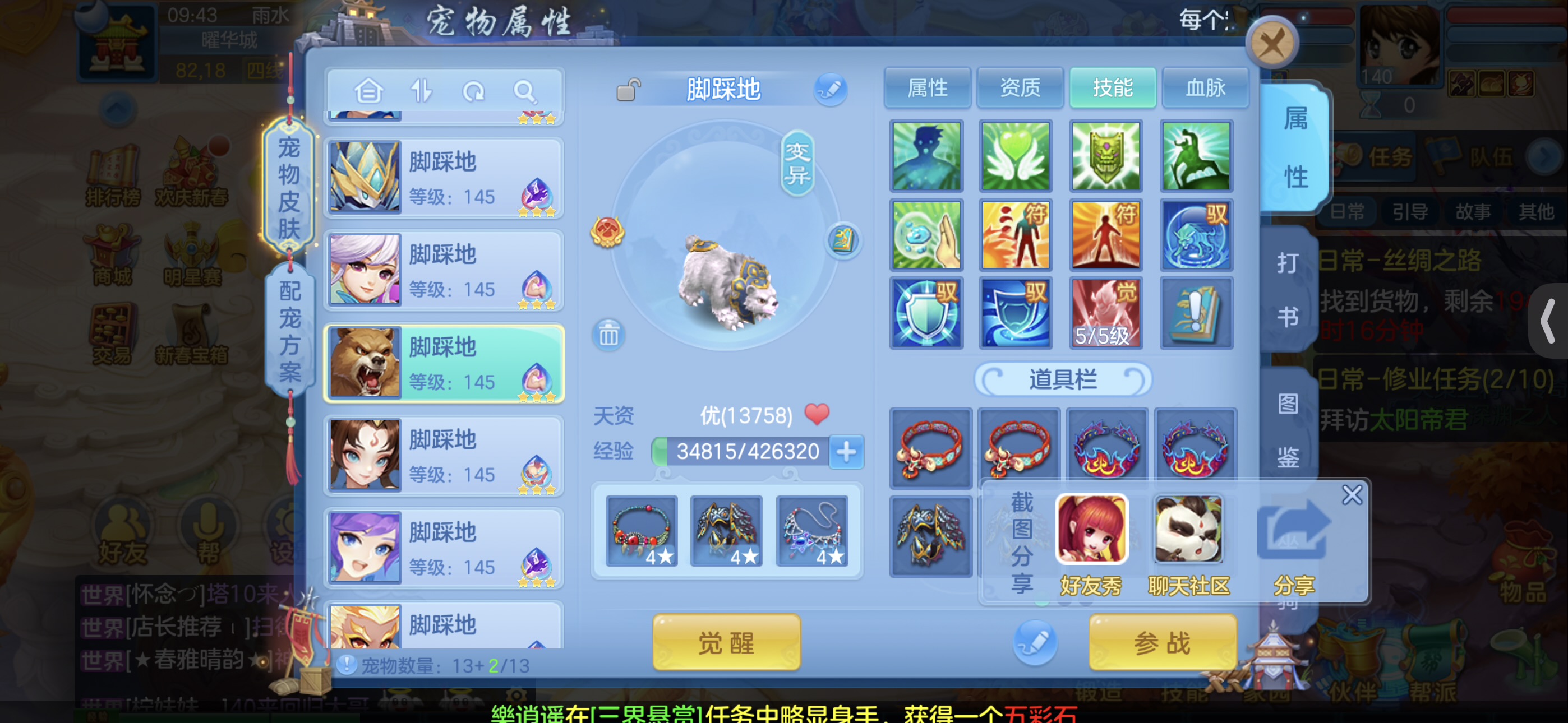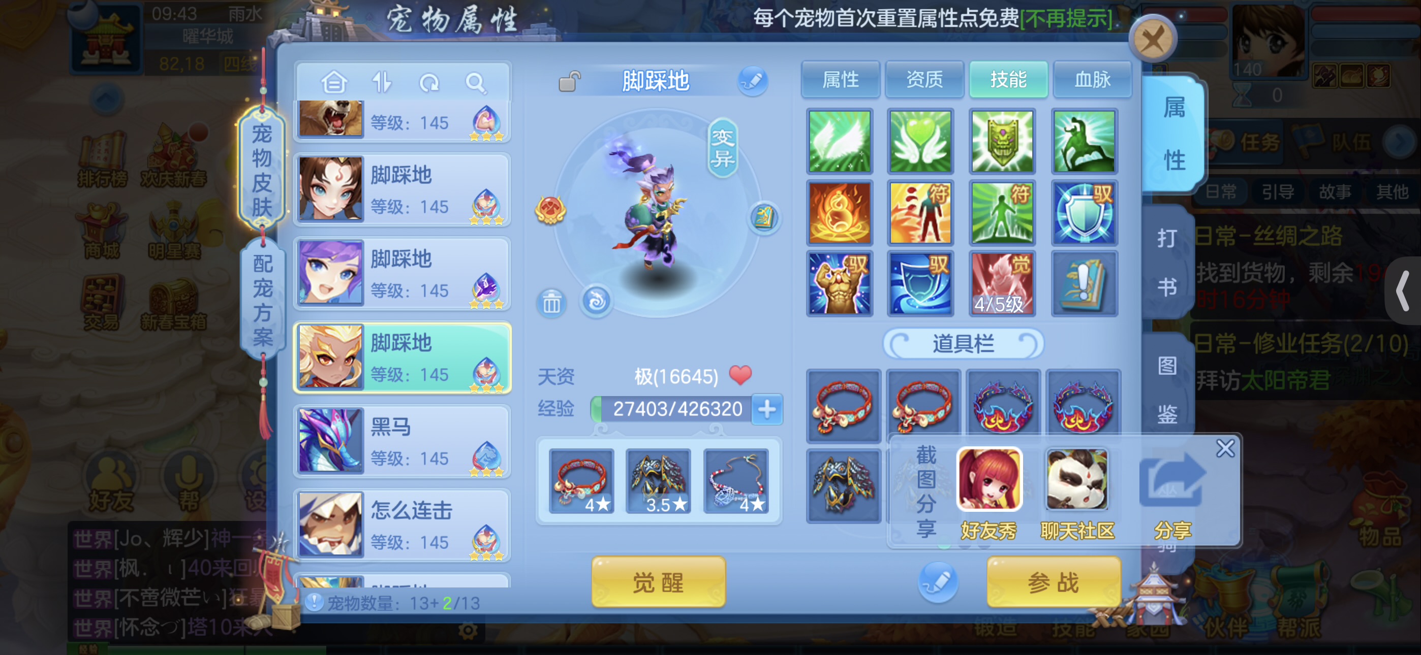 宠物日常都是满技能 不打架