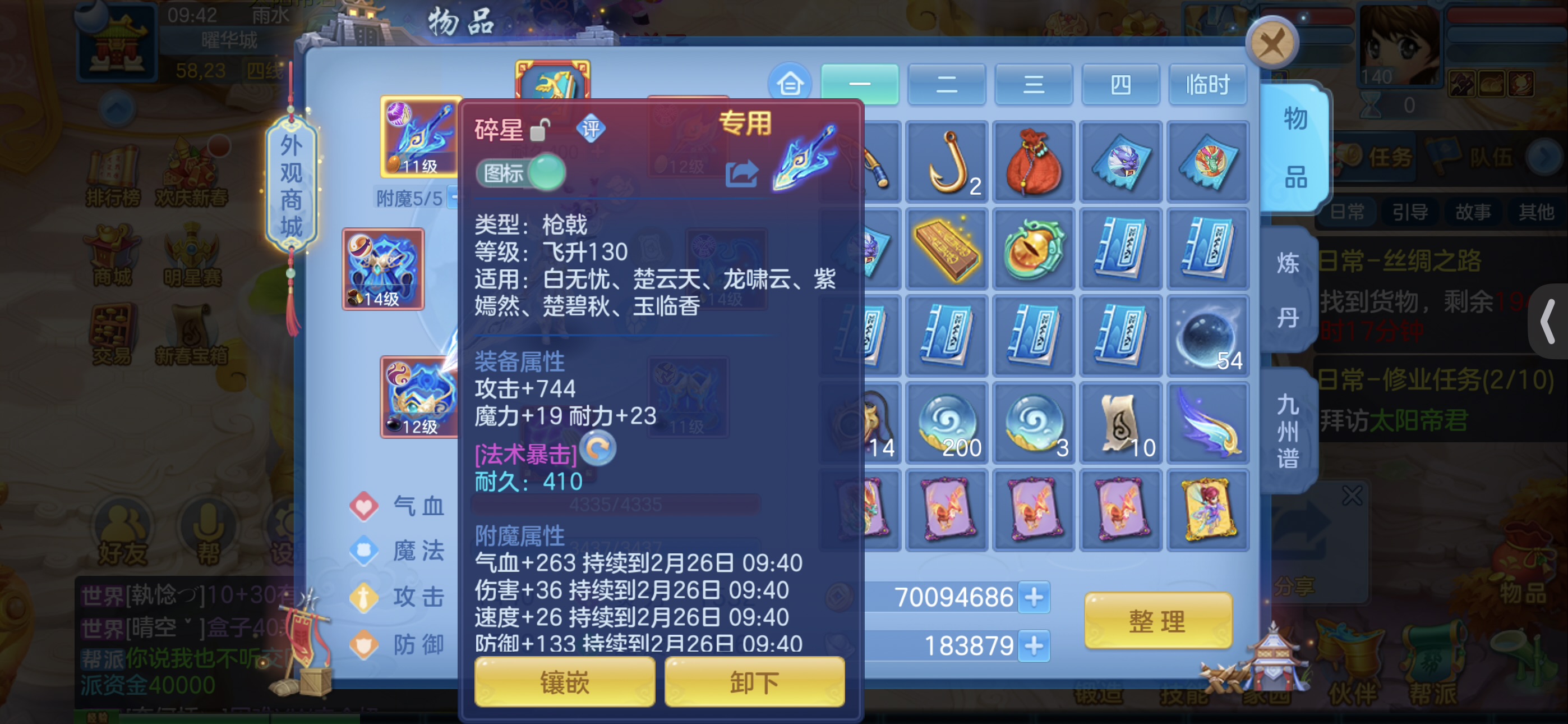 到手养老 上宝石就可以 装备不追求完美 现在装备比较好