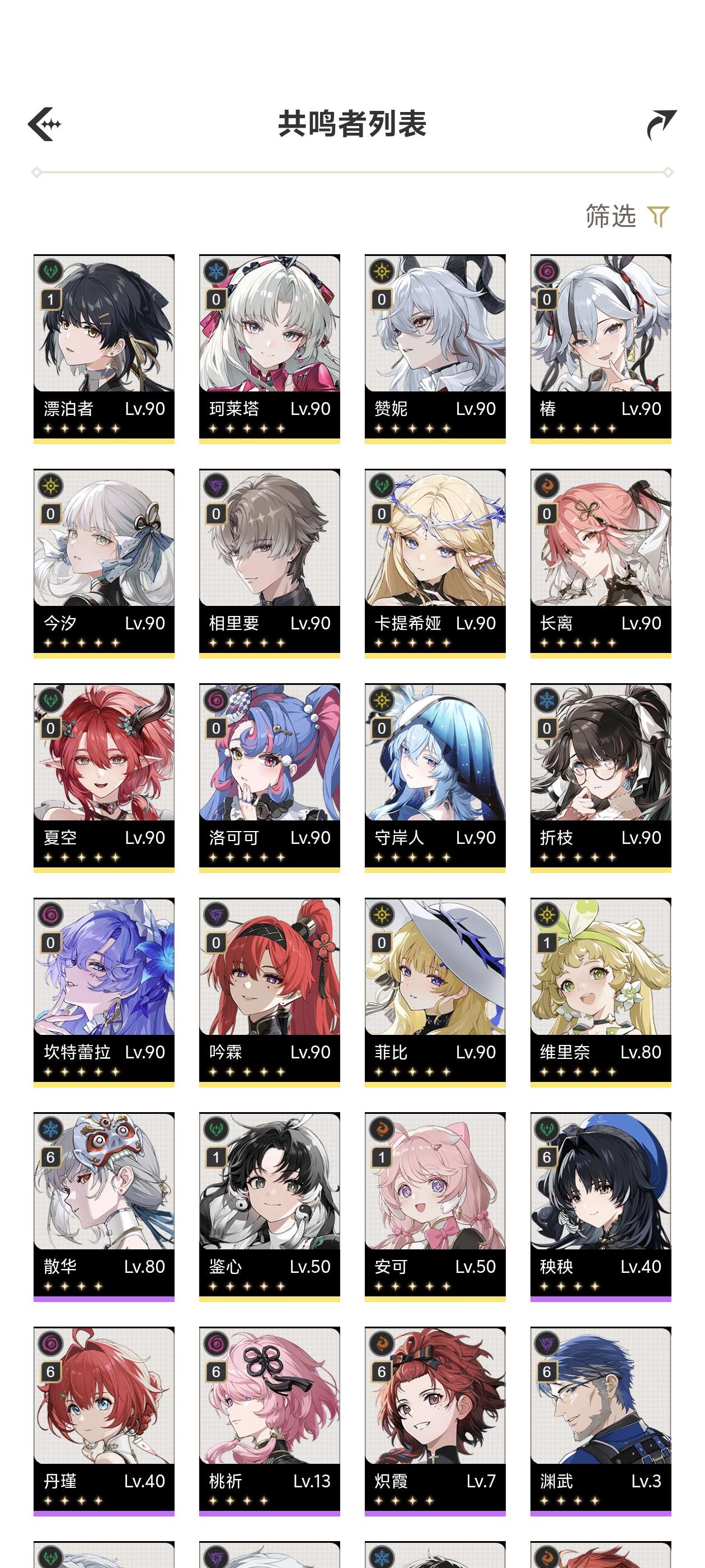 五星角色数: