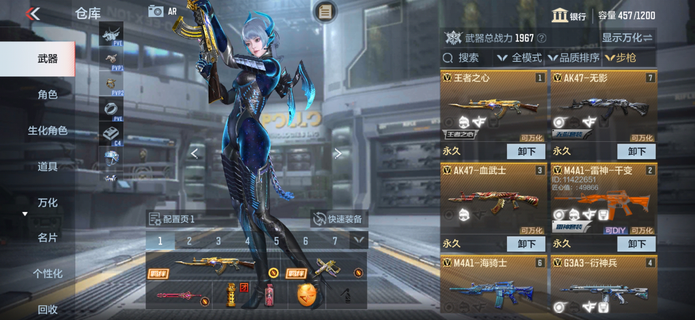 DSQZ614【V2/67V/53金V 王心 王魂带女团皮肤】王者之心 王者之魂-HeartShot AK47-无影 AK47-血武士 M4A1-雷神-千变 M4A1-海骑士 G3A3-衍神兵 AK47-燎天净火 AK47-华夏传说 AK47-黑鲨 AK47-木兰 AK47-破空冰刃 M4A1-死神-机甲核心 M4A1-龙血 SCAR-心动PICK 9A91-魔蜥觉醒 M14EBR-拂影 QBZ03-金色蔷薇 HK416-极光 98K-黑骑士 双持GL0CK18-本初 掠夺者P365-虹舞
