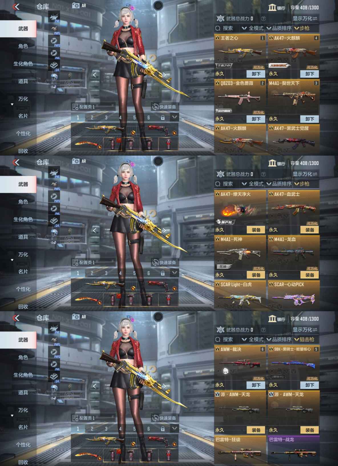 DSQZ593【店家推荐捡漏❤V1/60V/39金V】 王者之心 AK47-火麒麟 QBZ03-金色蔷薇 M4A1-獒世天下 AK47-黑武士觉醒 AK47-燎天净火 AK47-血武士 M4A1-死神 M4A1-龙血 SCAR Light-白虎 SCAR一心动PICK AWM-裁决 98K一黑骑士-能量核心 加特林-堡垒 蟒蛇-妙才 左轮-卧龙觉醒 双持斯泰尔-天使 CBJ-MS-毒蜂